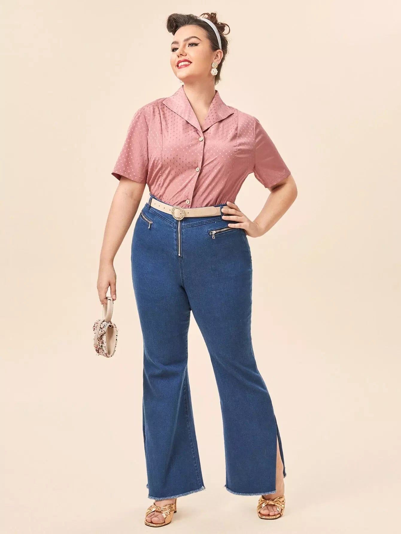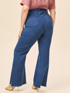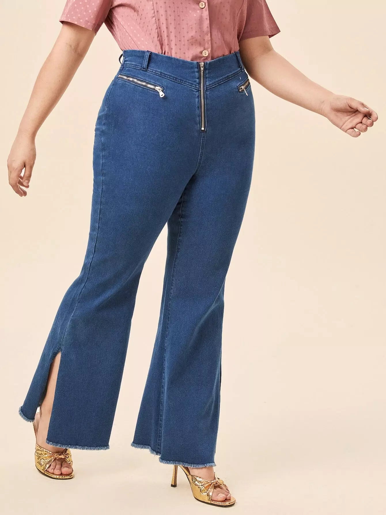 Women - Plus Zipper Fly Split Raw Hem Flare Leg Jeans