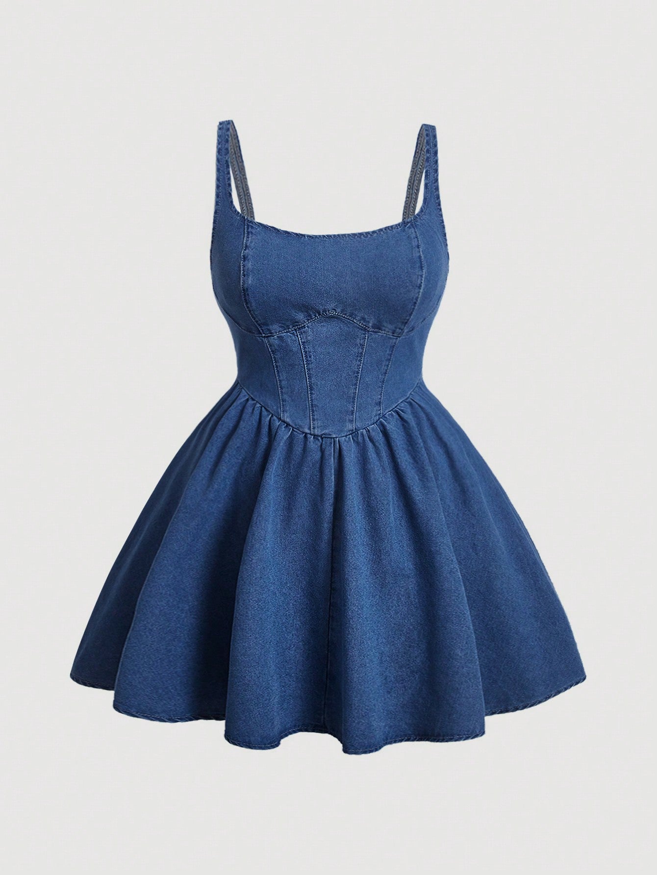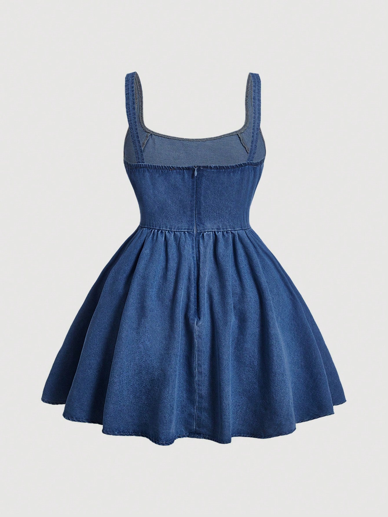 MOD Plus Size Round Neck Sleeveless Denim Dress With Ruffles Hem Backless Chic And Elegant