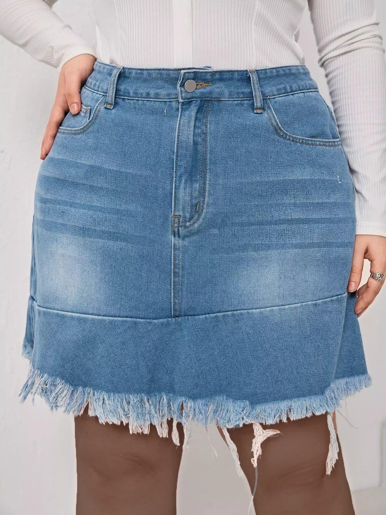 Plus High Waist Raw Hem Denim Skirt