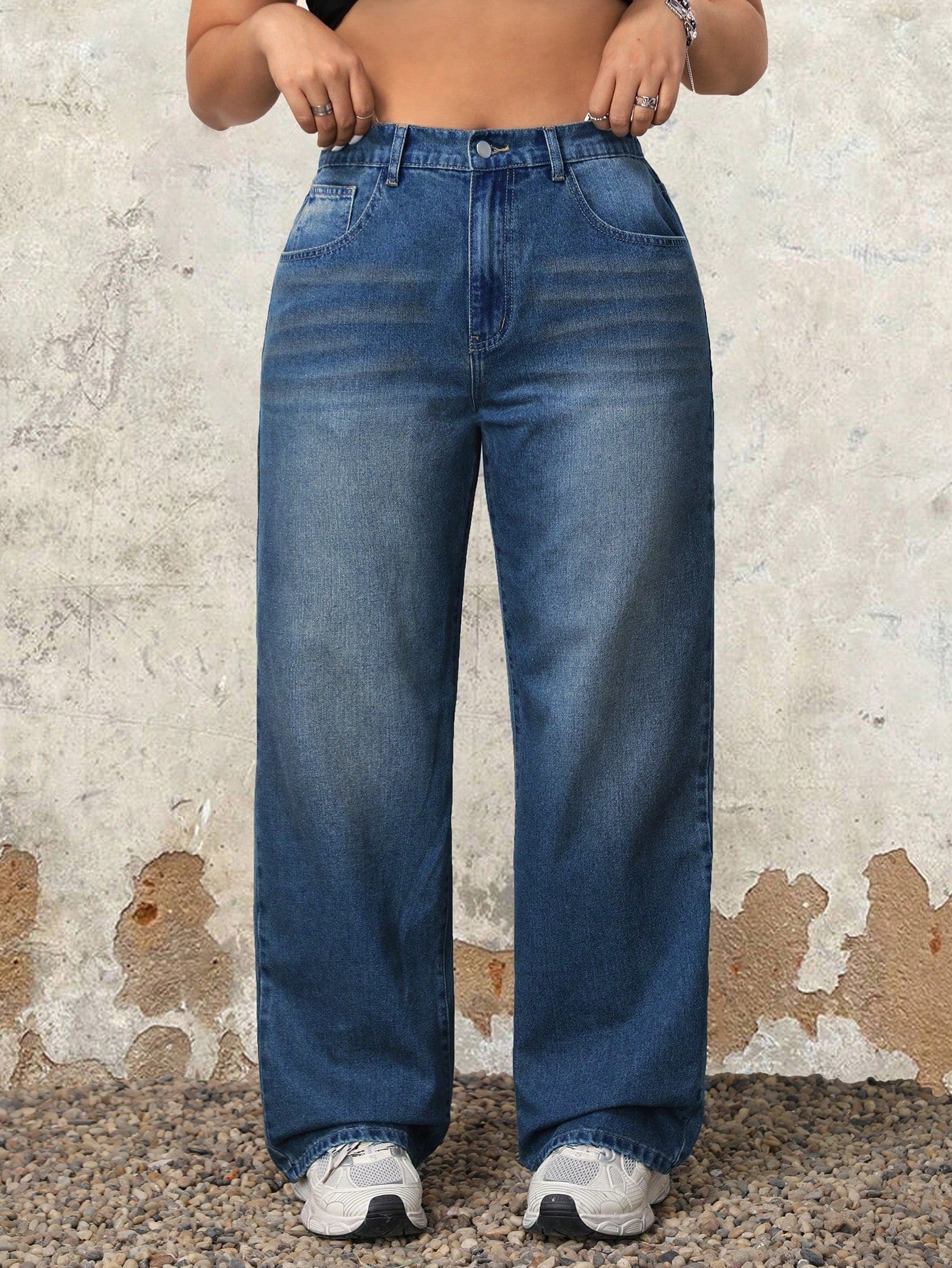 ICON Plus Size Women Casual Pocketed Wide Leg Jeans