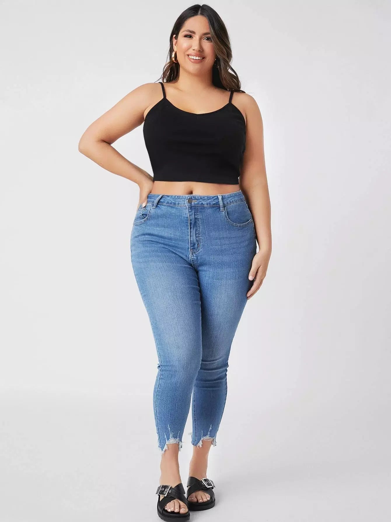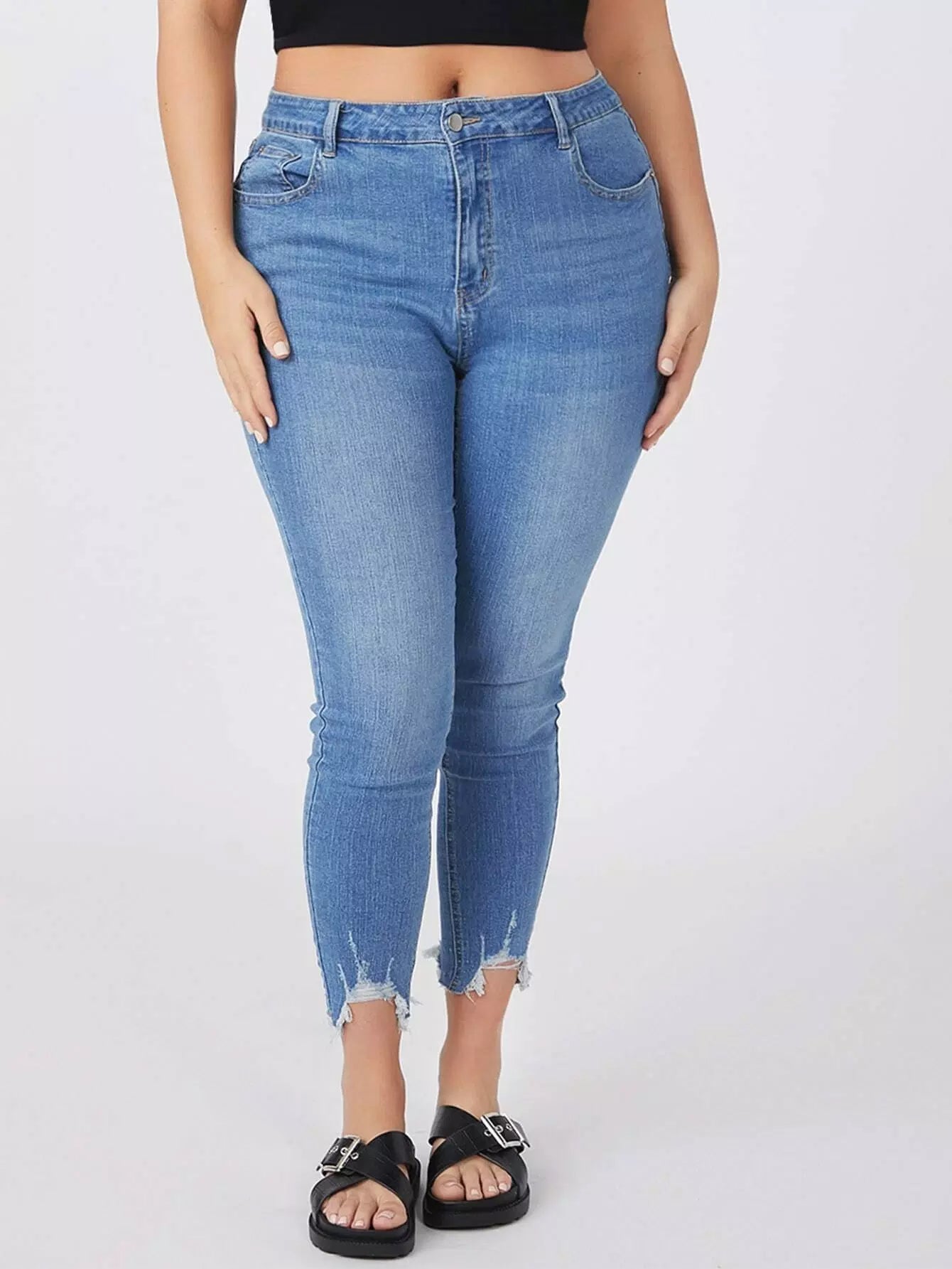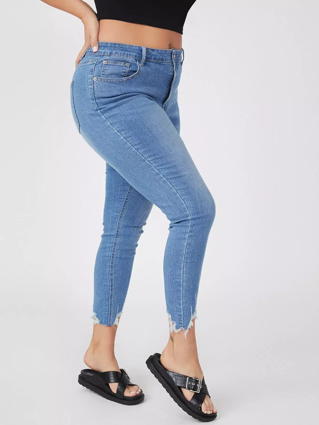 Plus Asymmetrical Raw Hem Skinny Cropped Jeans