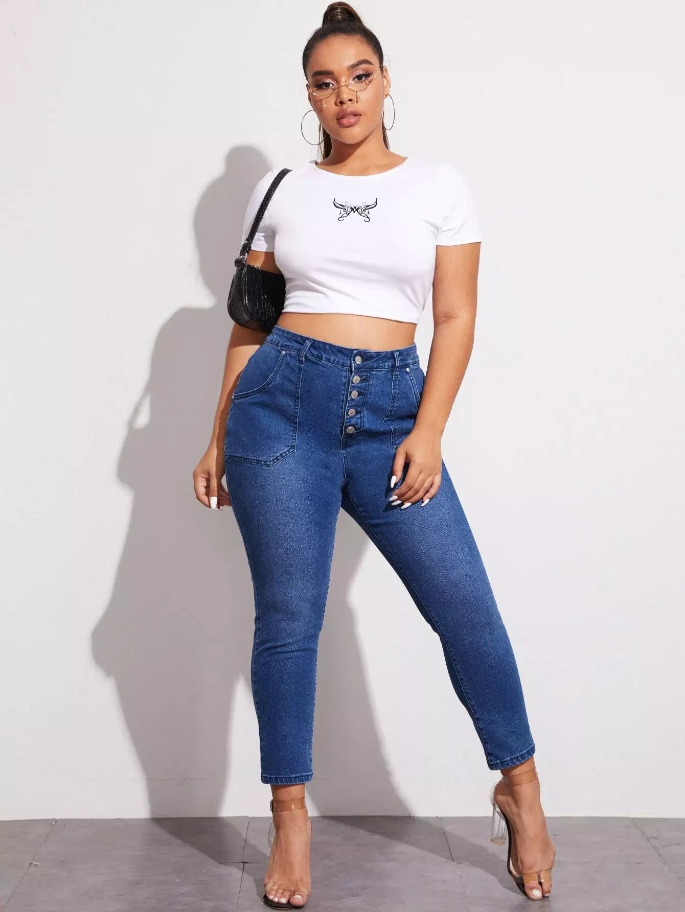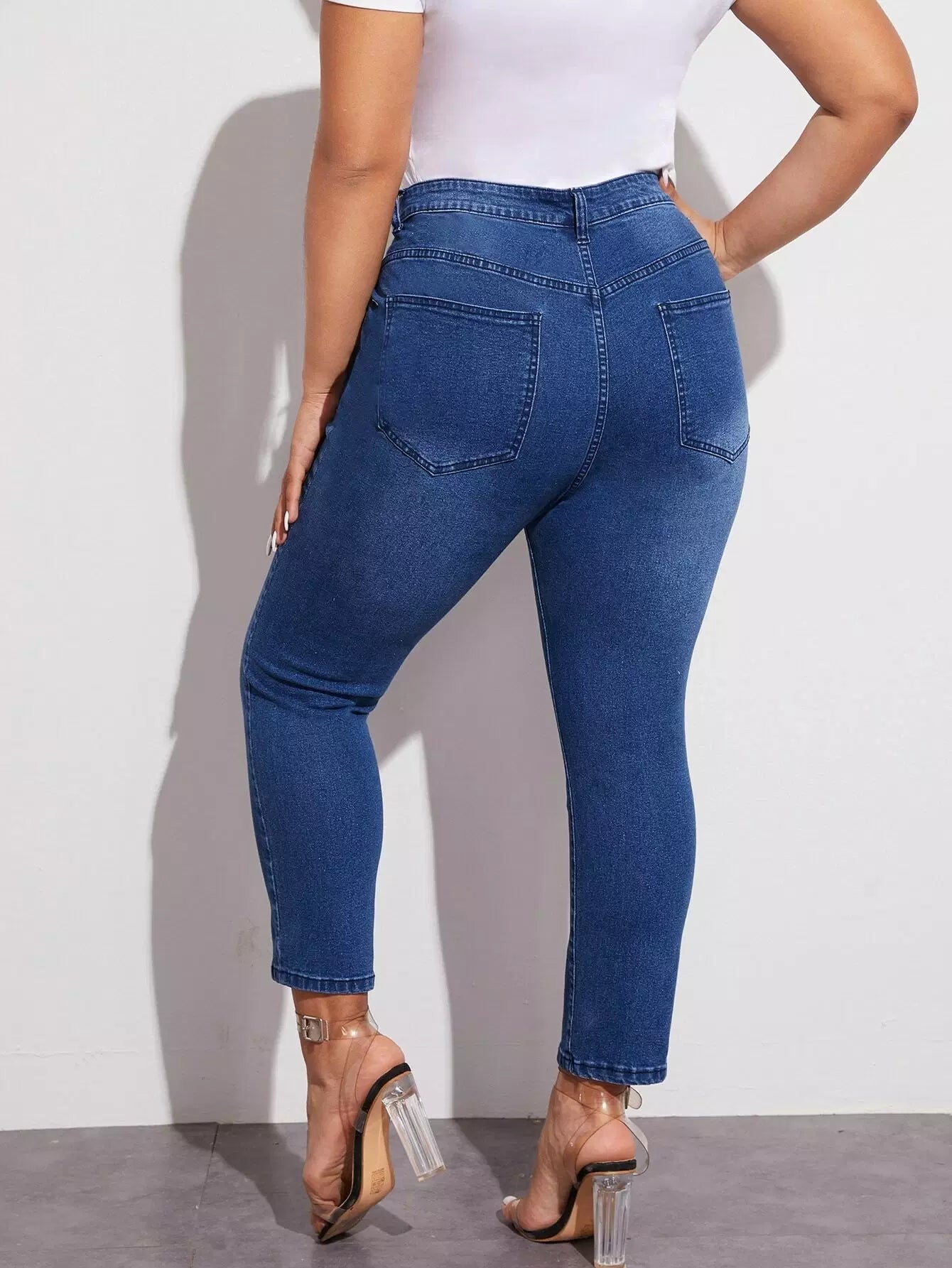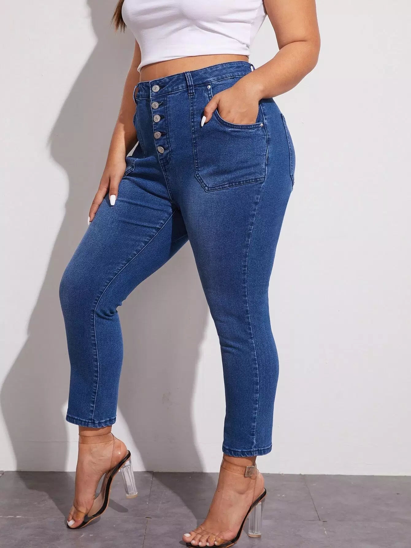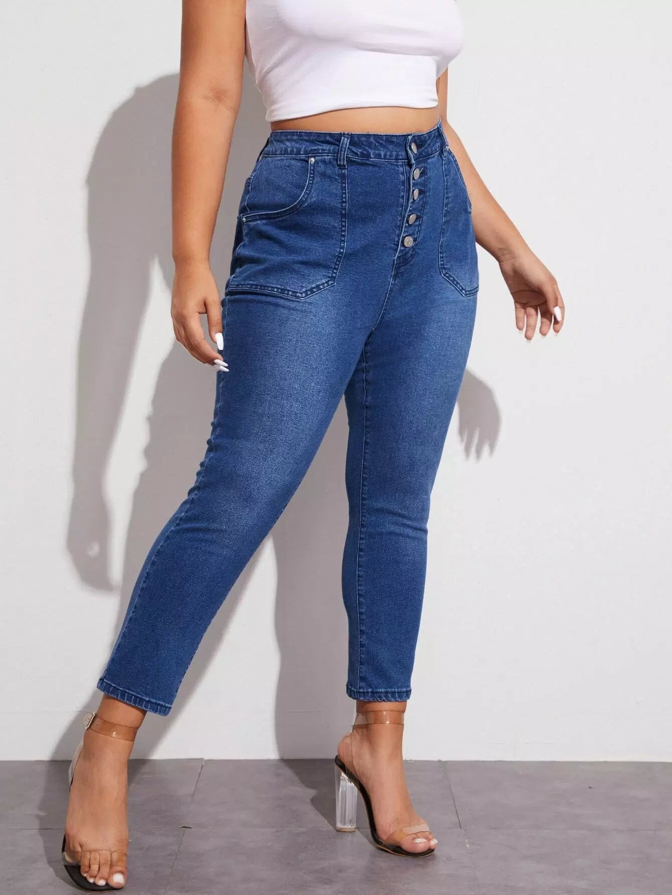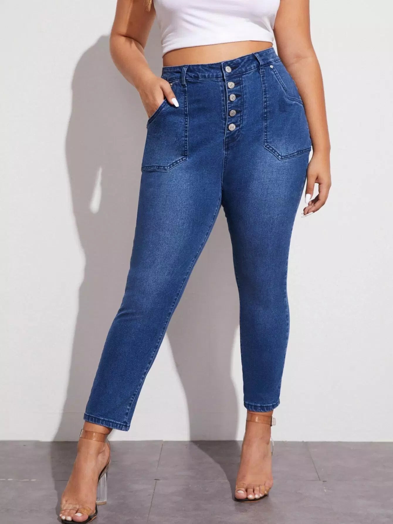 Plus Buttoned Fly Slant Pocket Skinny Jeans