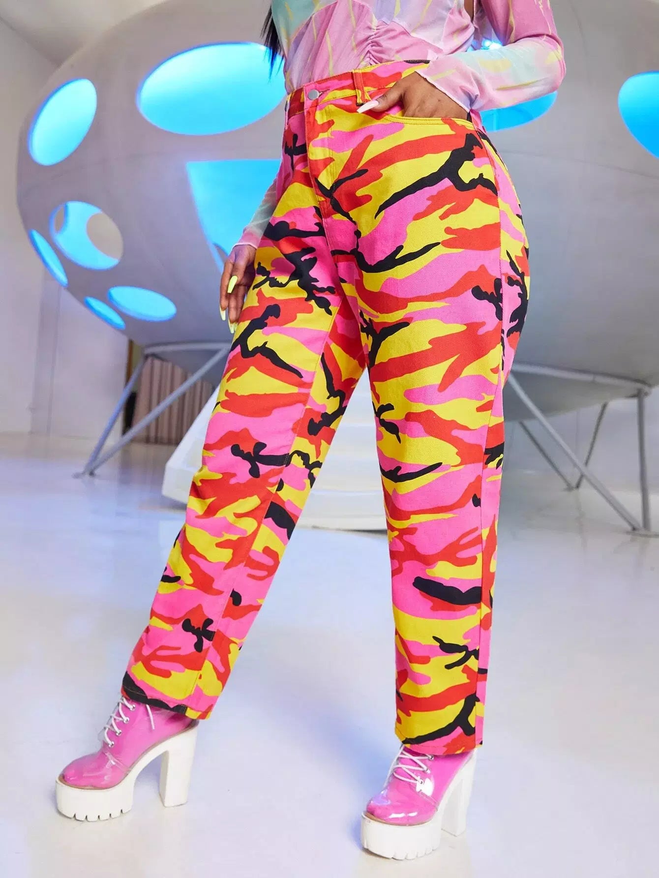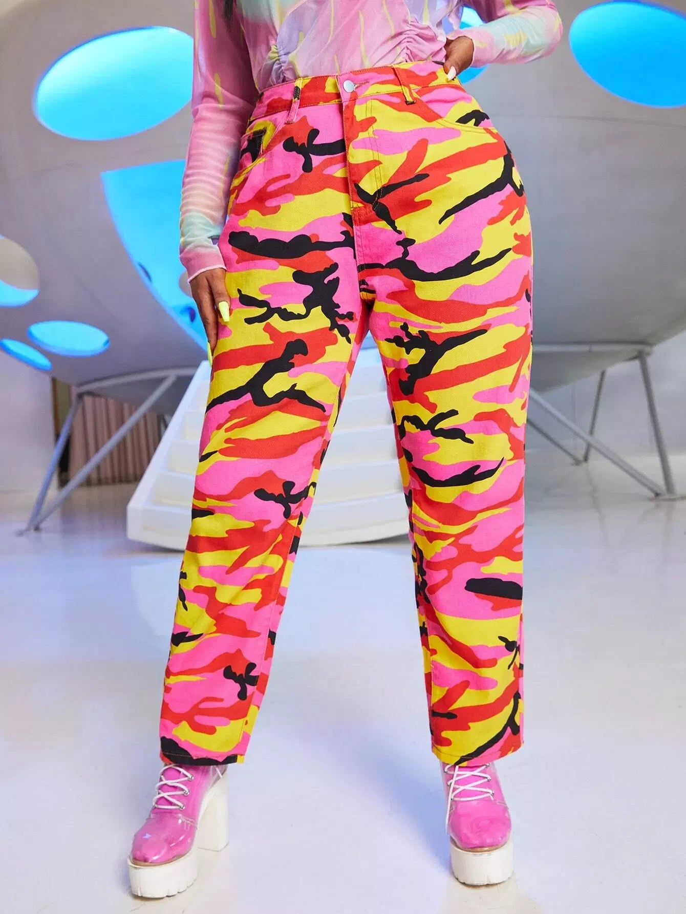 Plus Camo Print Mom Jeans