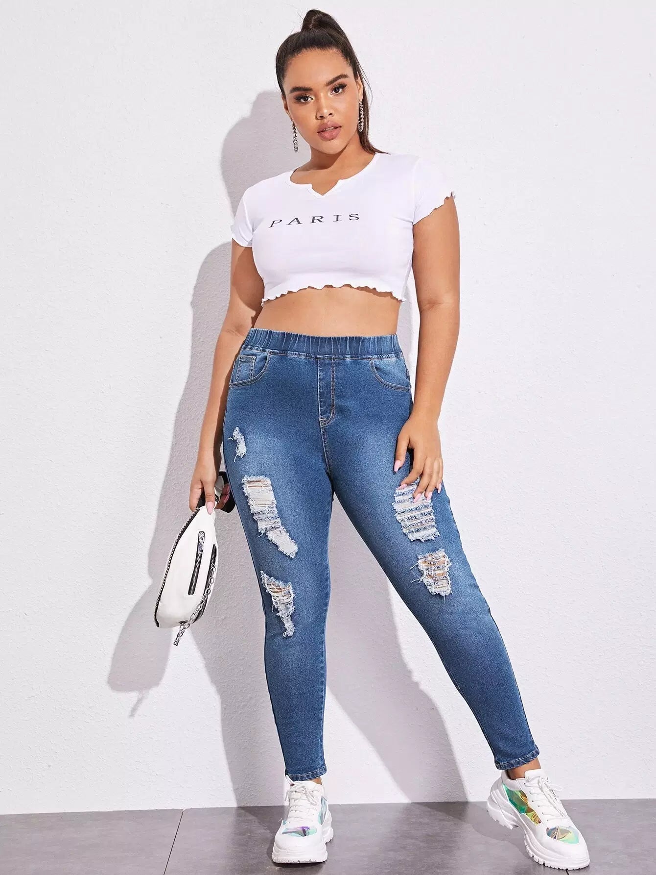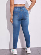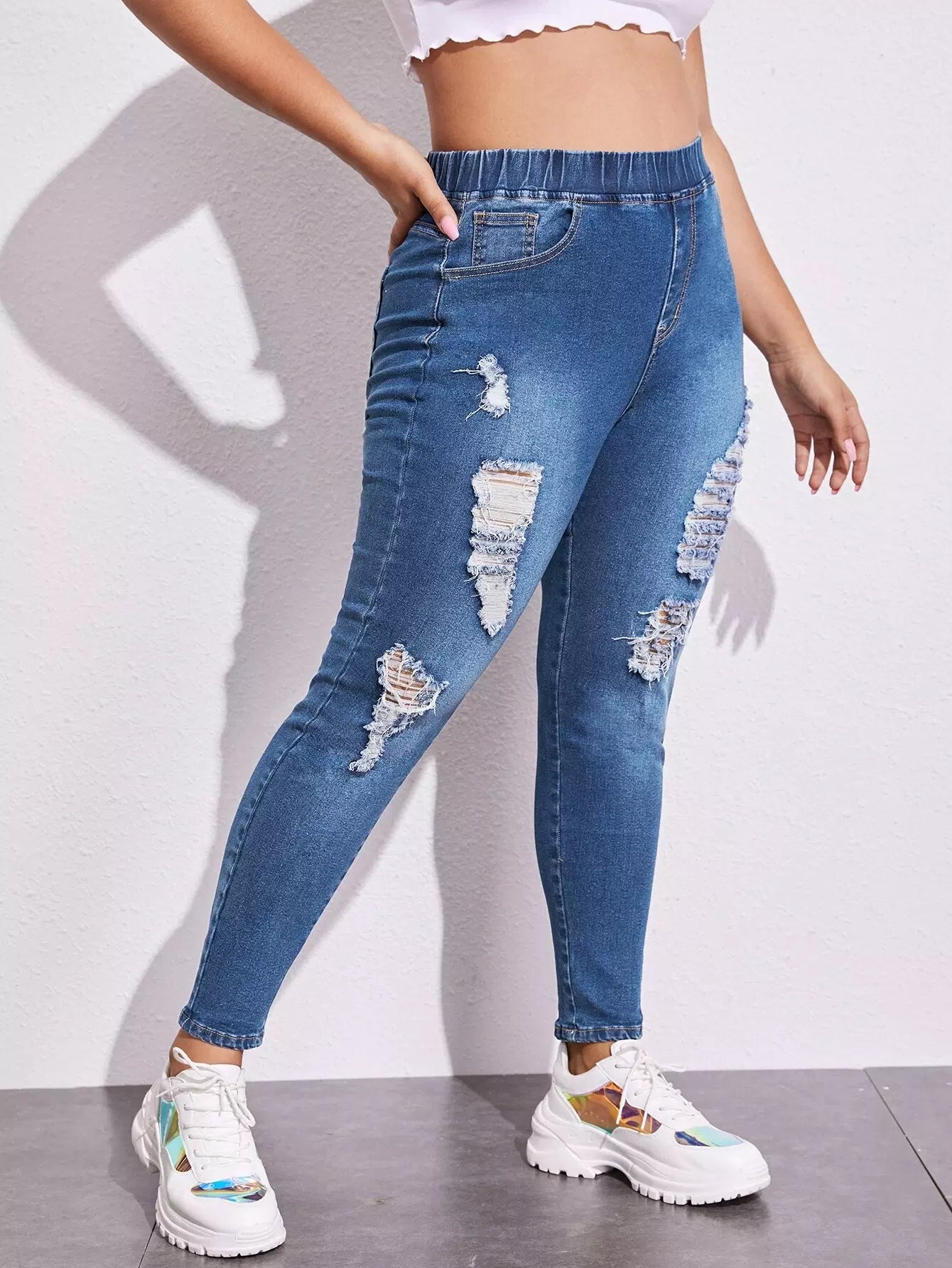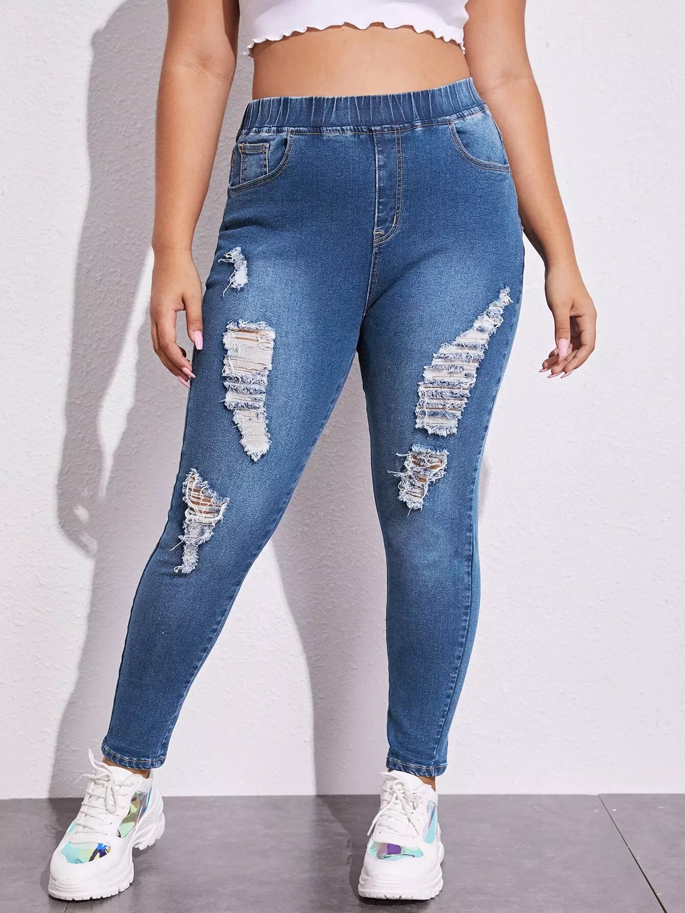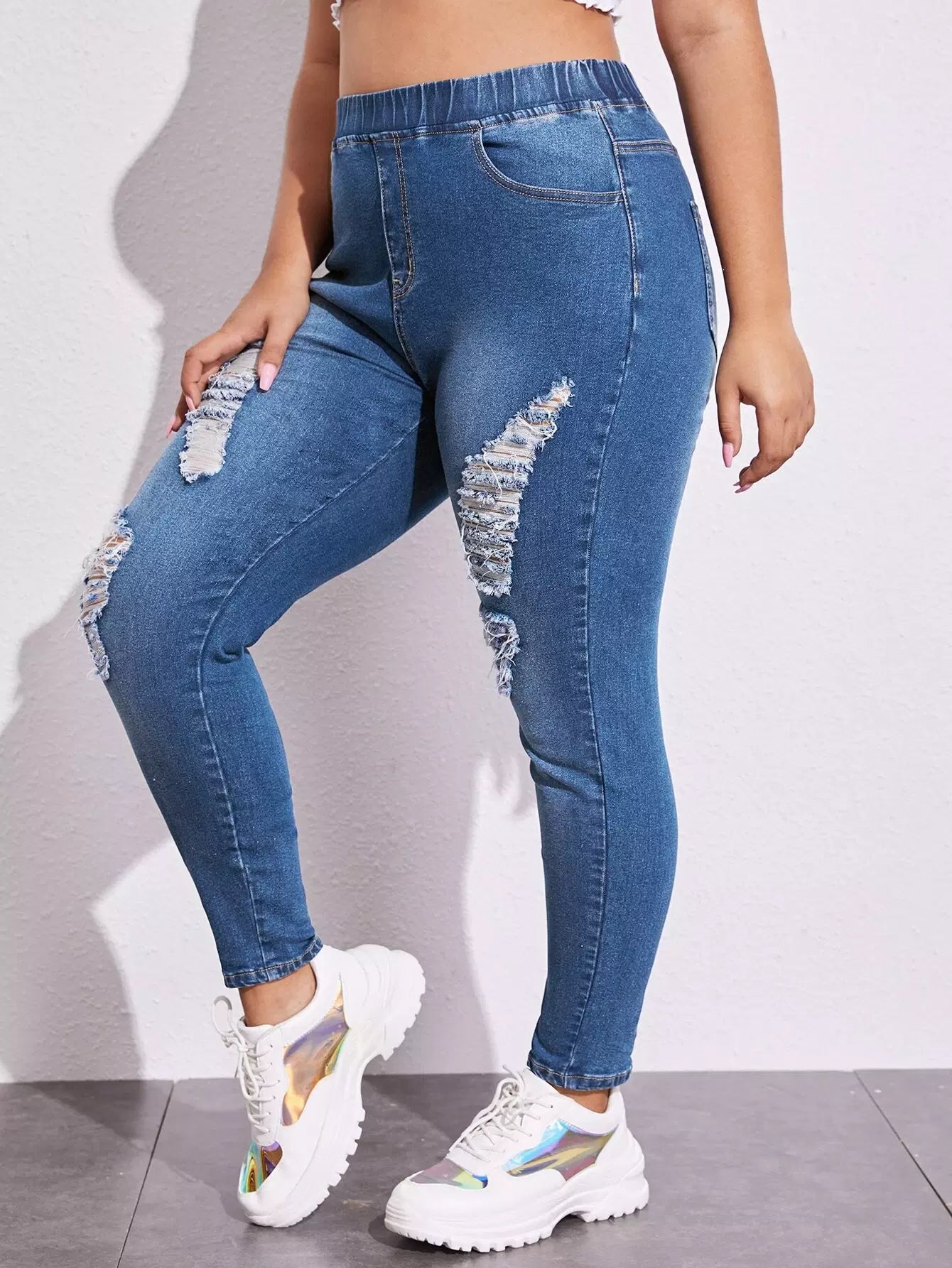 Plus Elastic Waist Ripped Skinny Jeans
