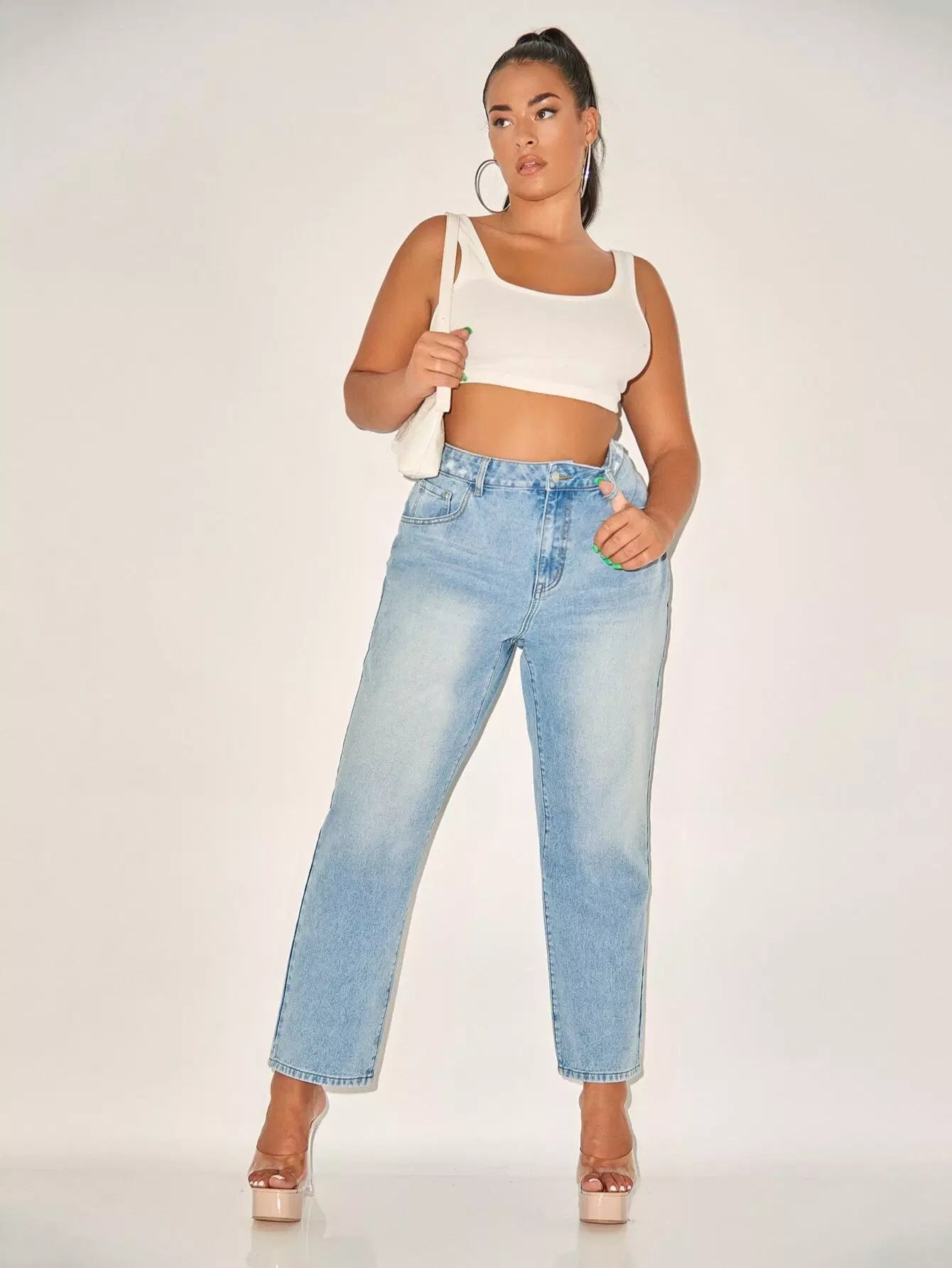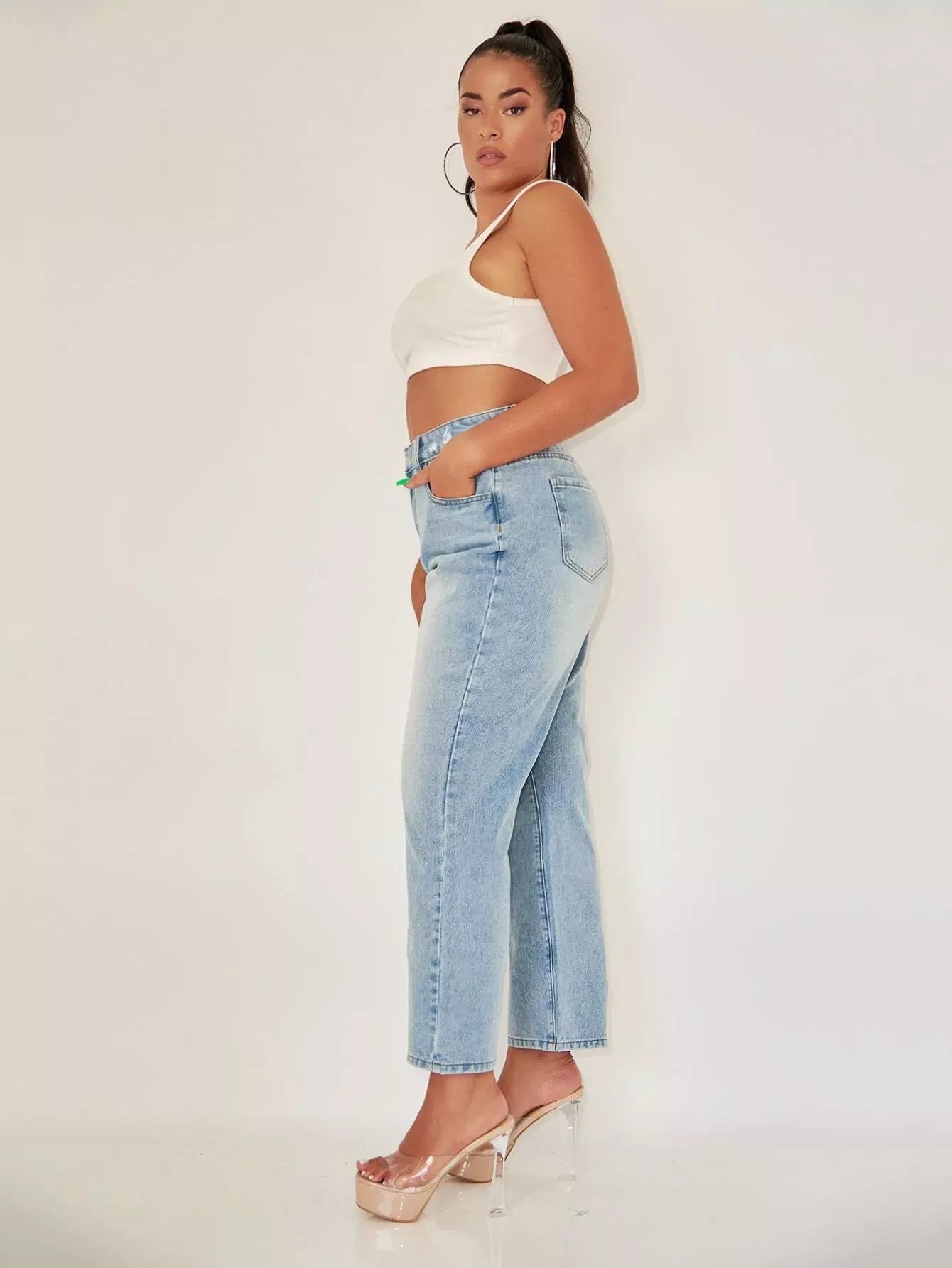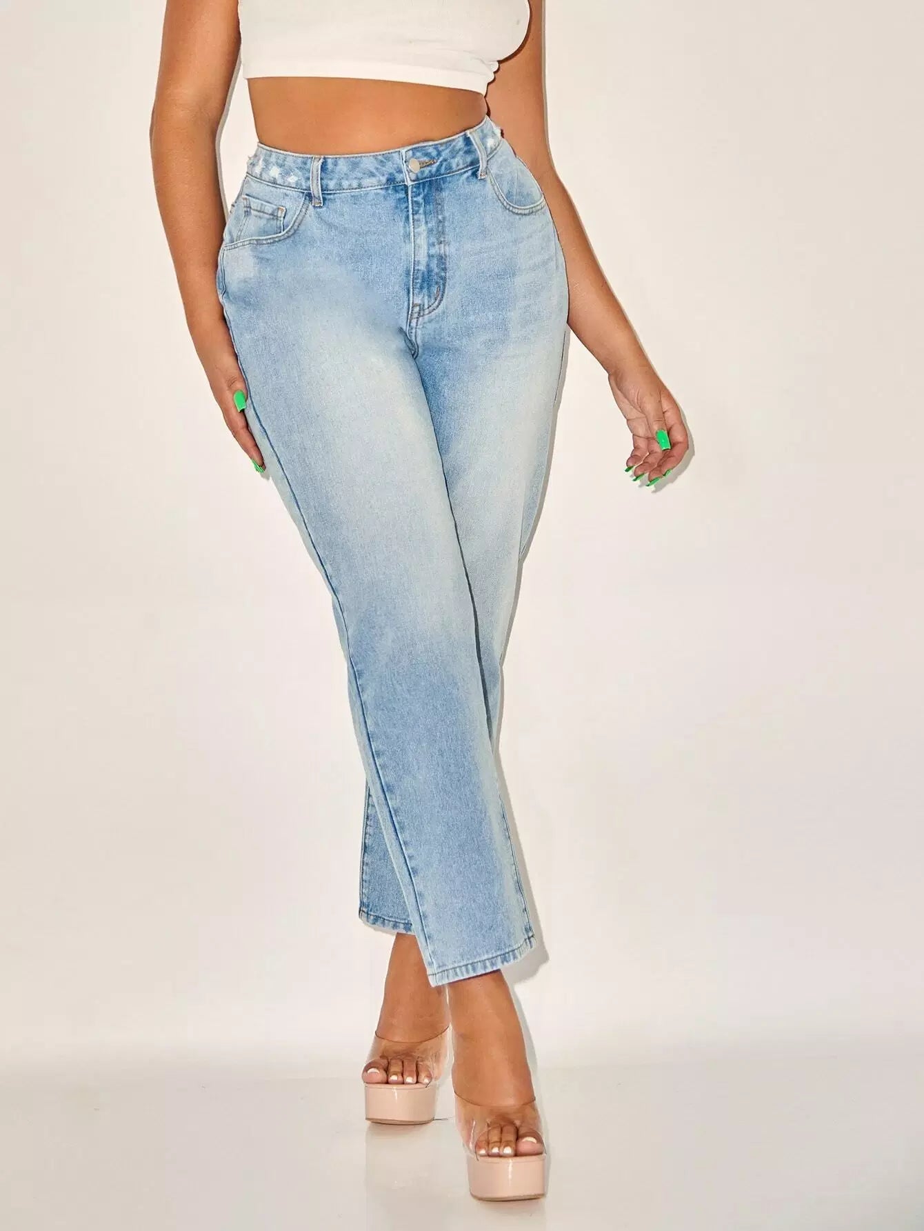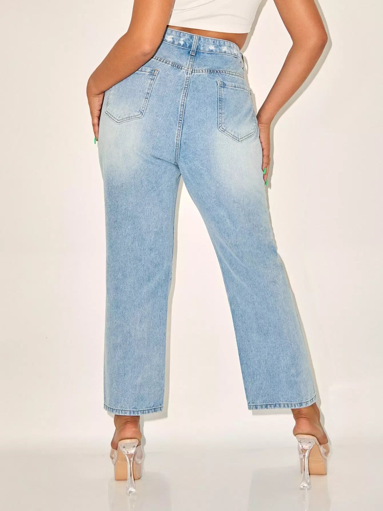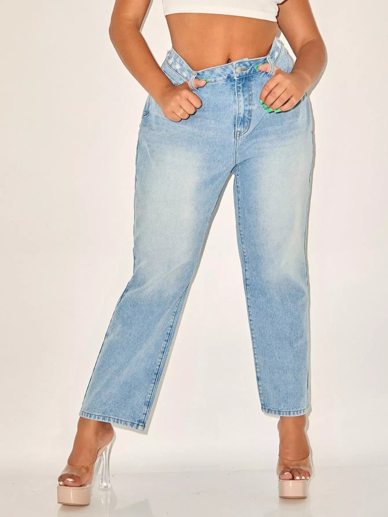 Plus High Waist Bleach Wash Jeans