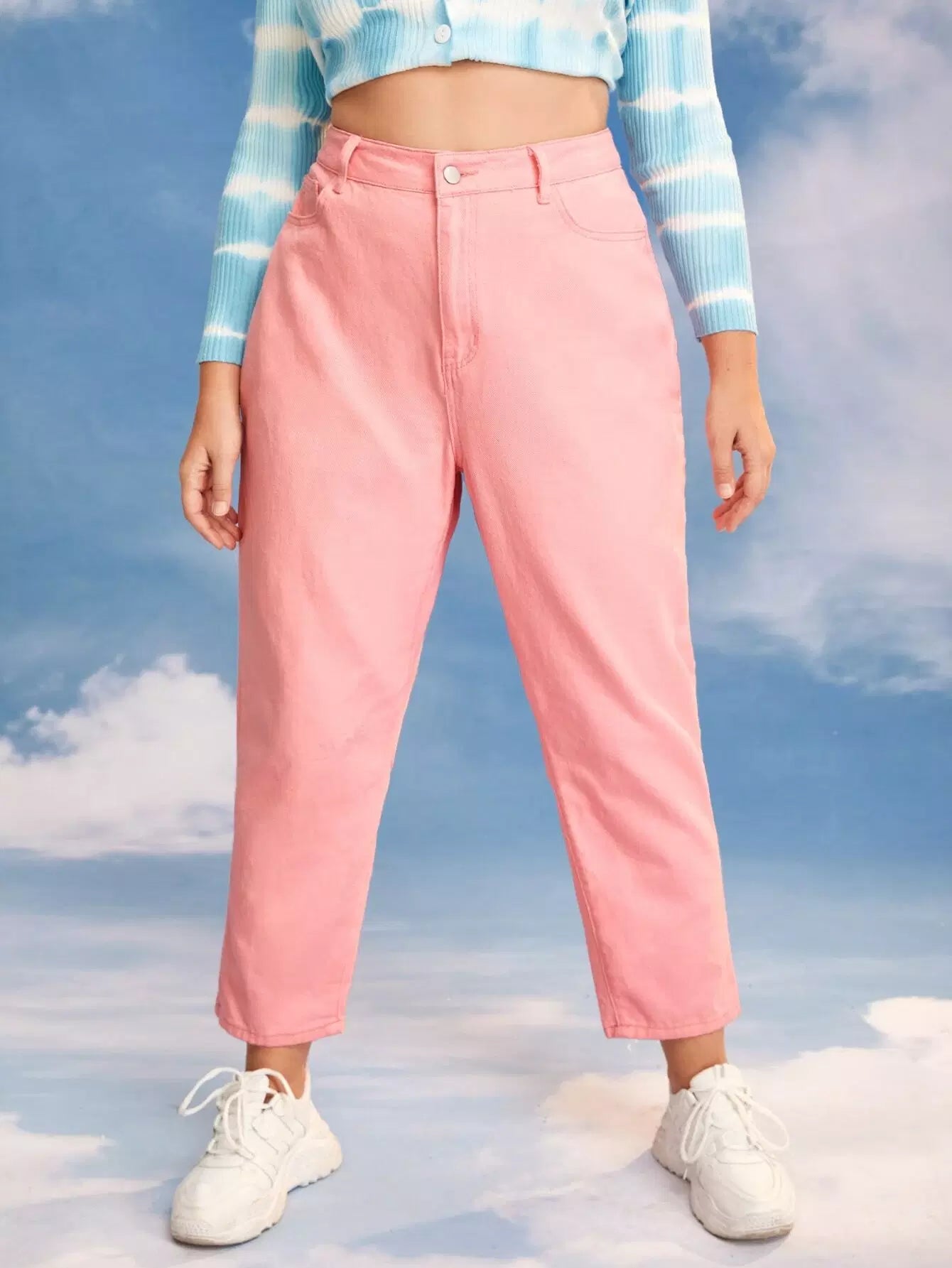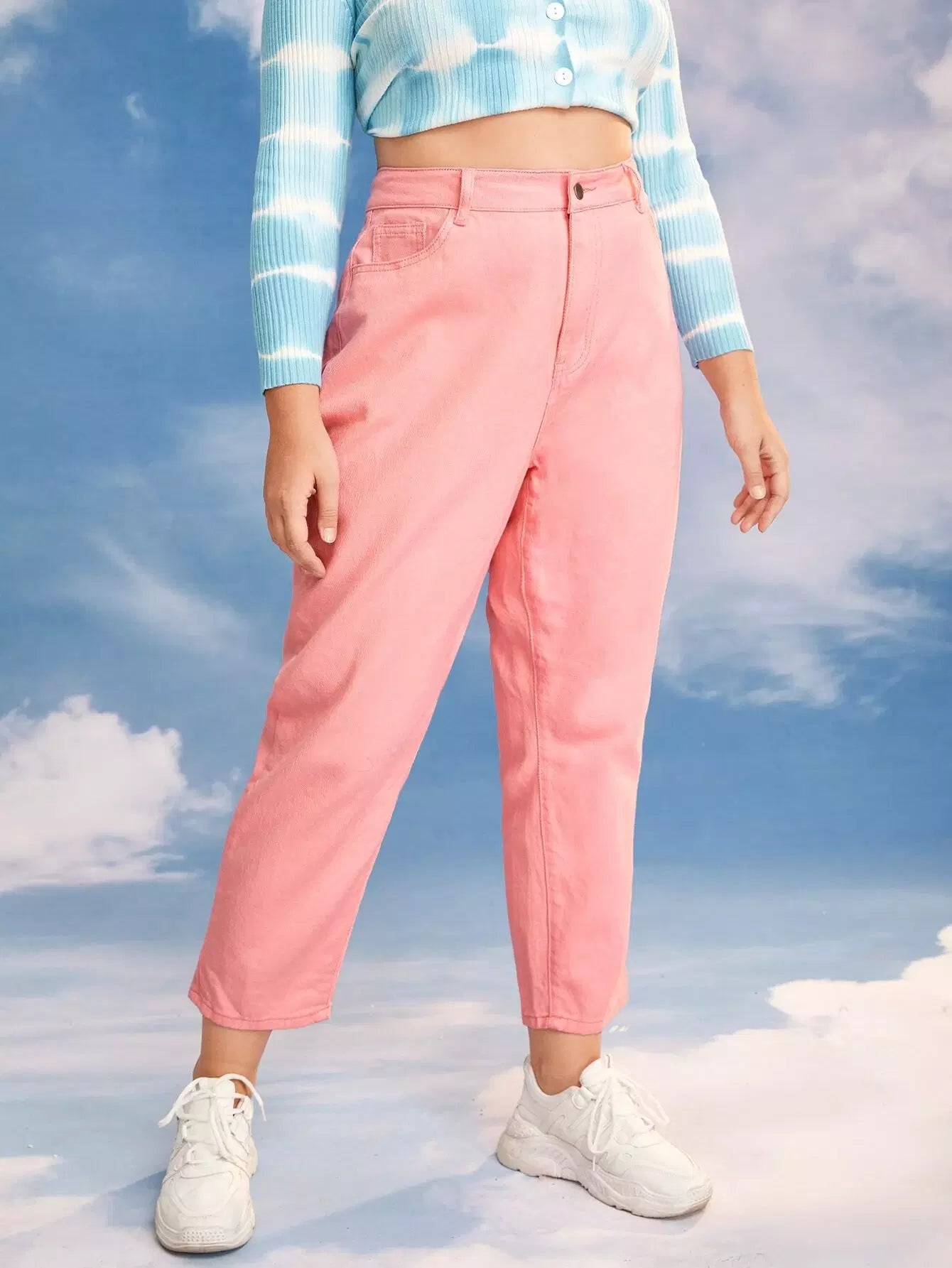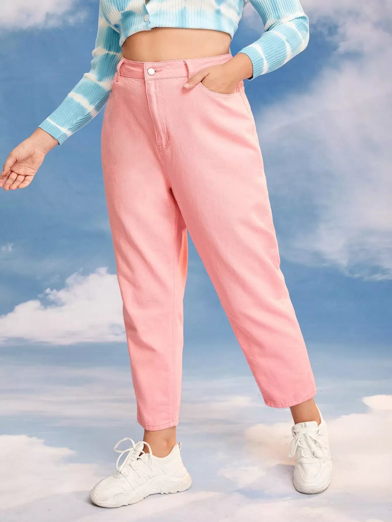 Women - Plus High Waist Mom Cropped Jeans