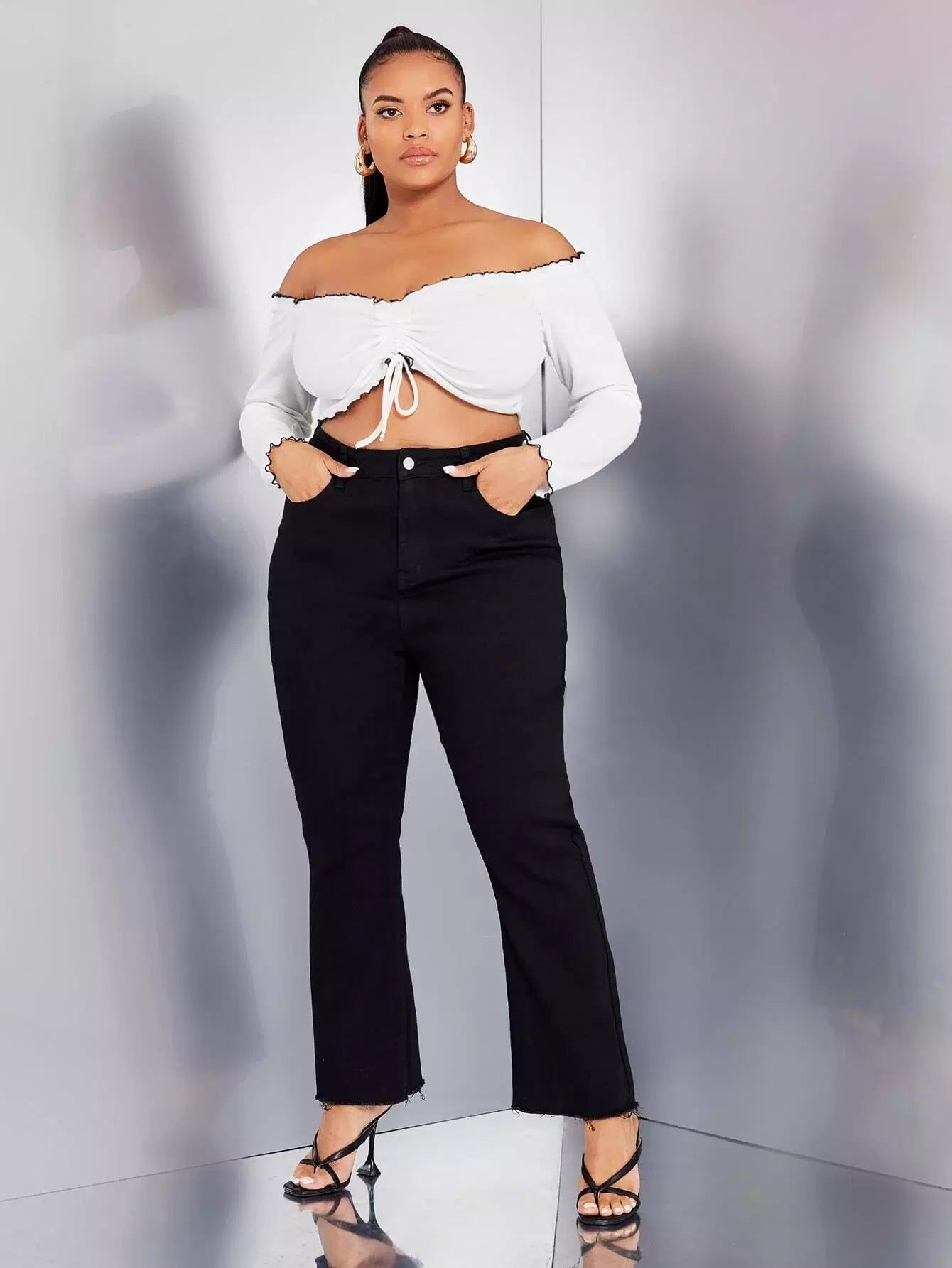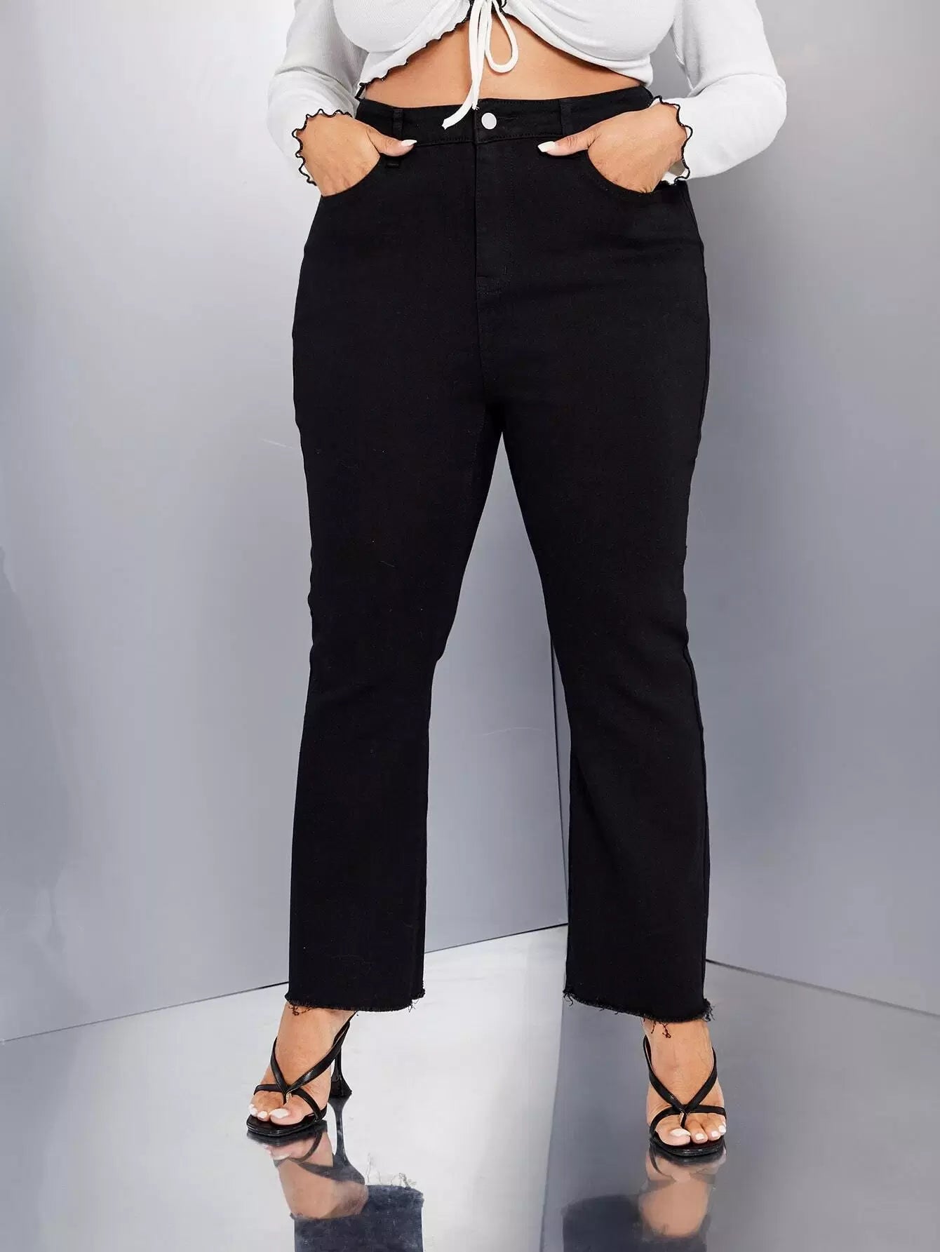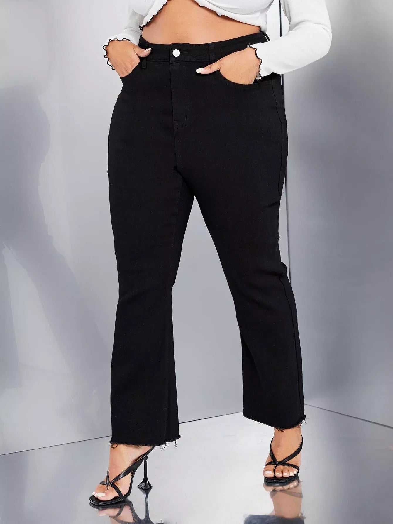 Plus High Waist Raw Cut Flare Leg Jeans