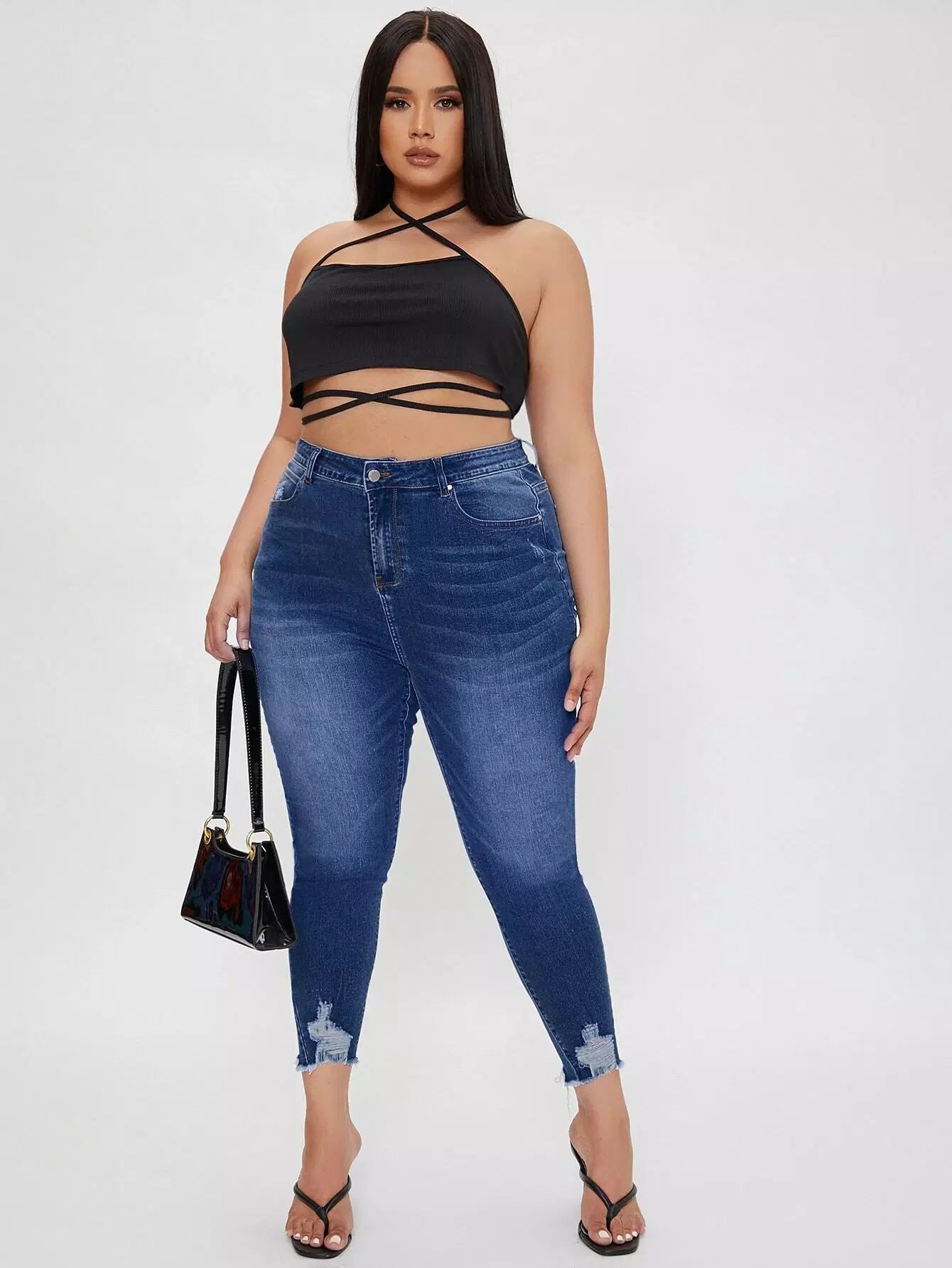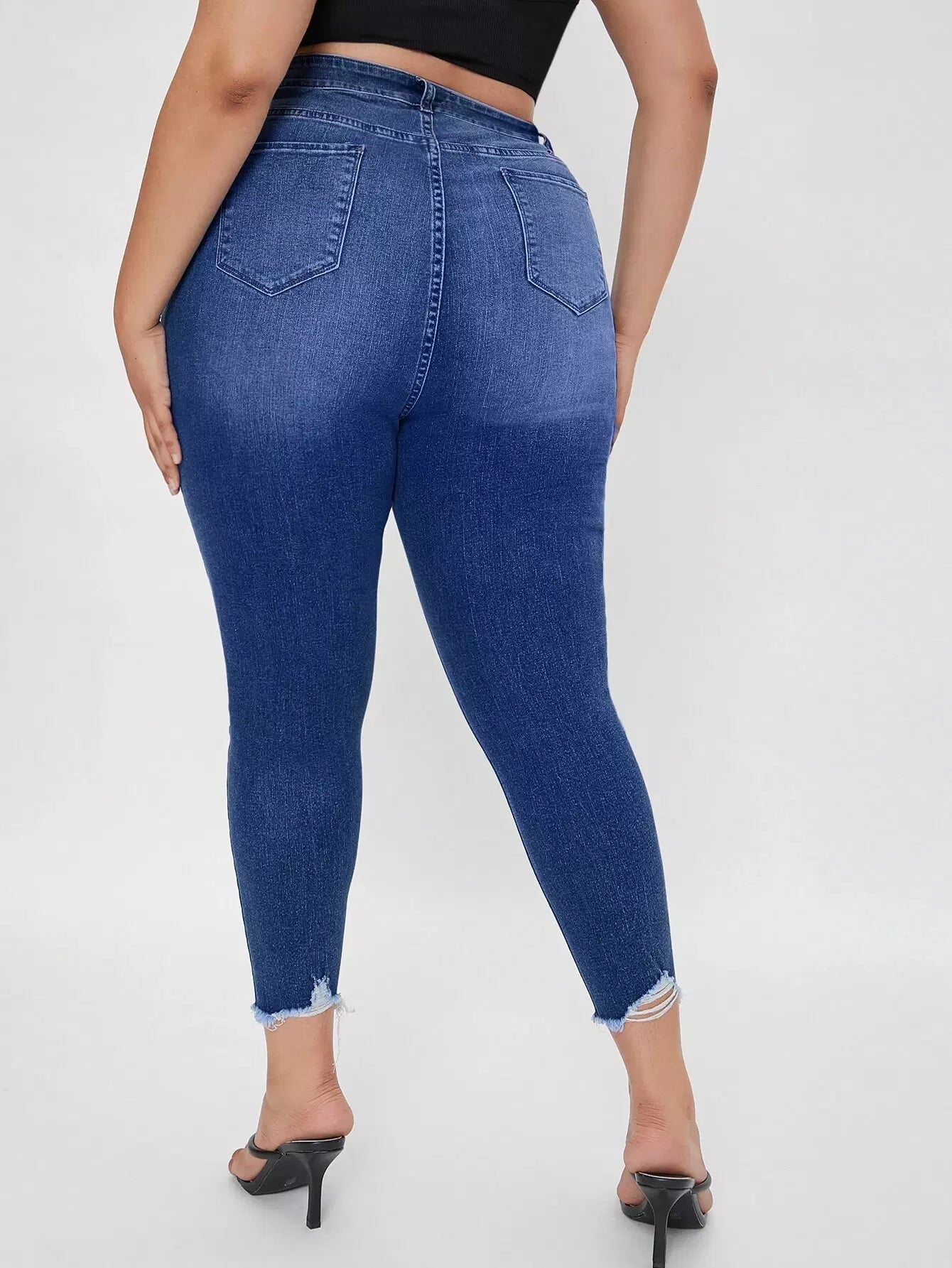 Plus High Waist Raw Hem Jeans