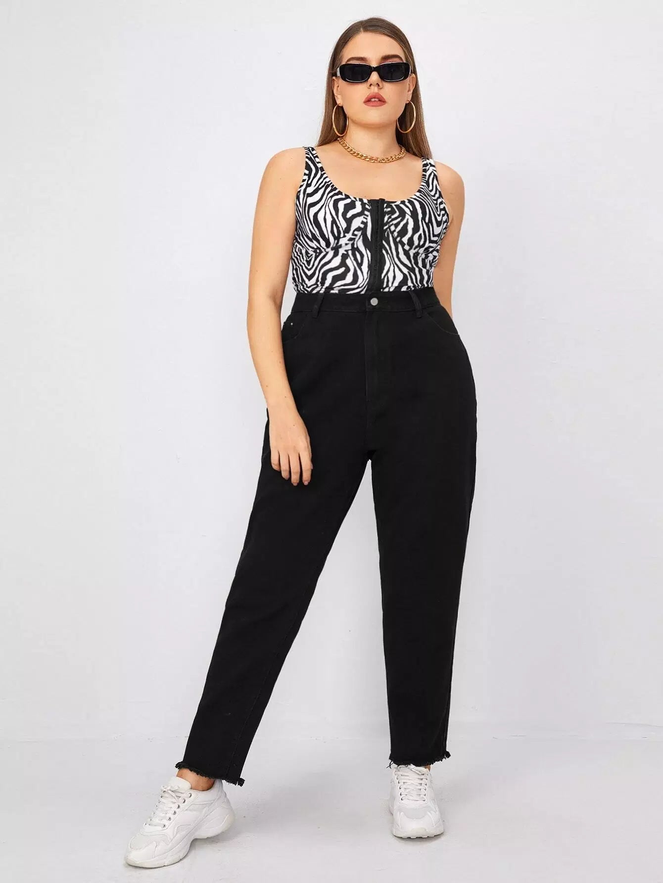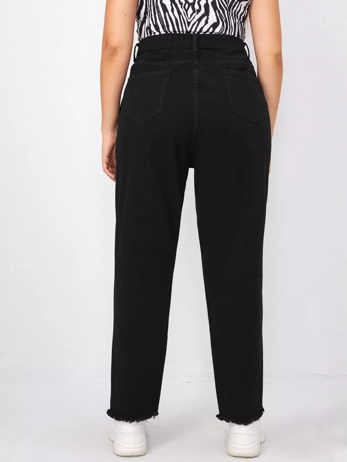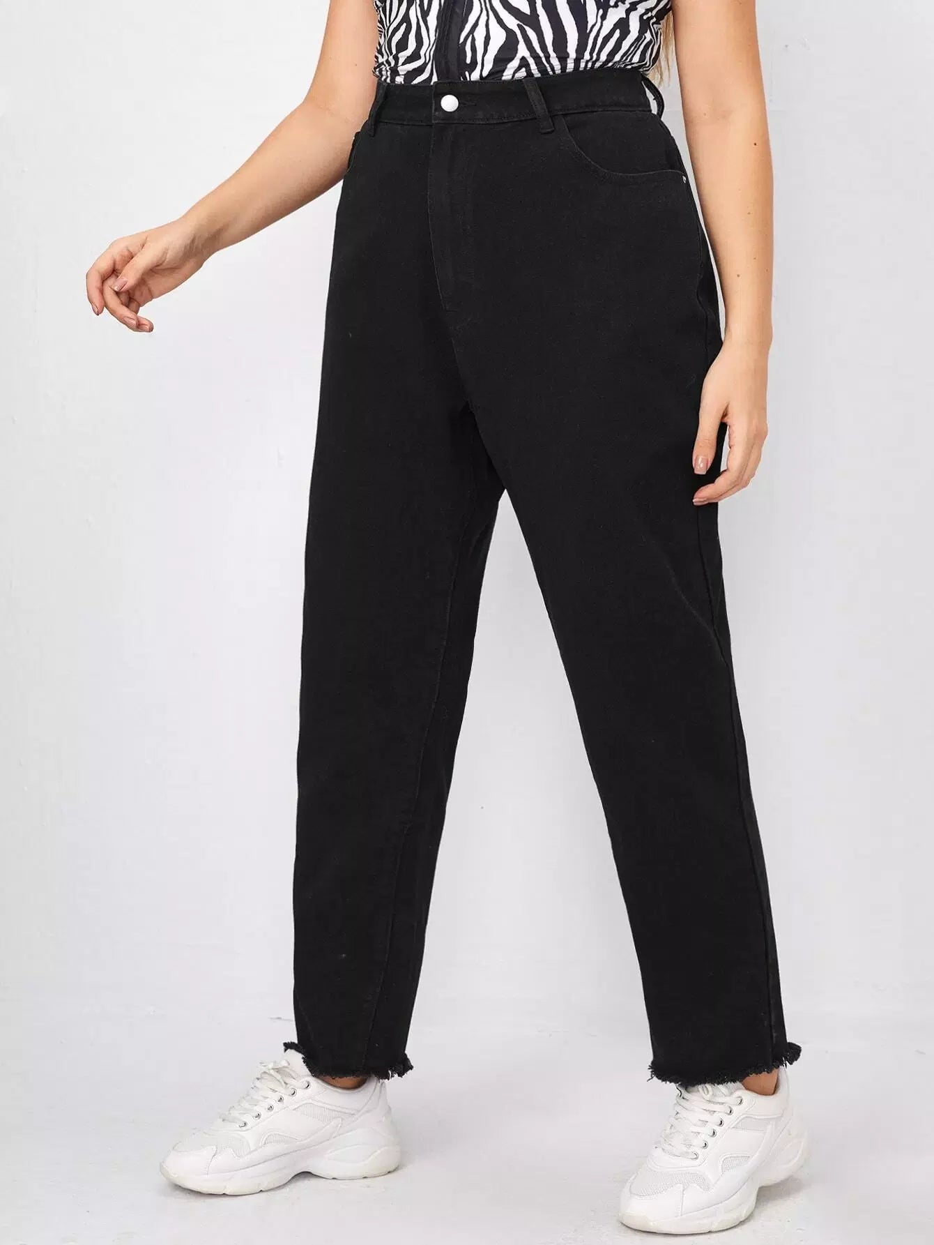 Plus High Waist Raw Hem Mom Jeans