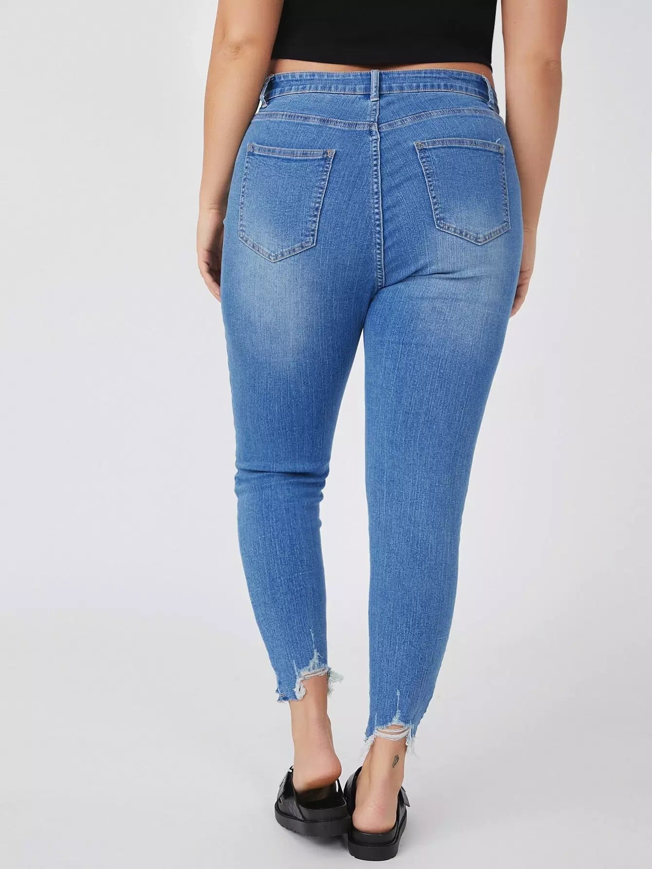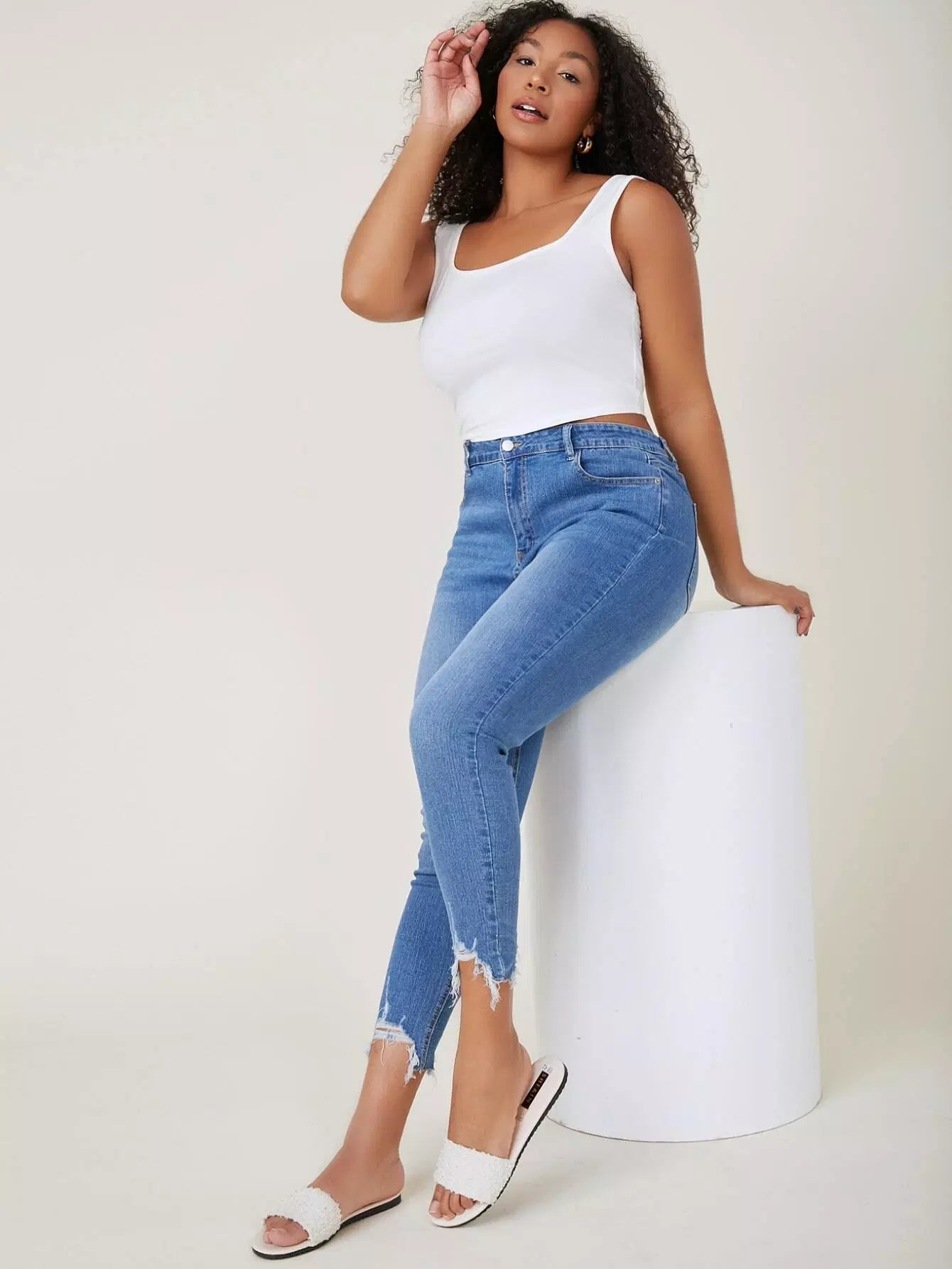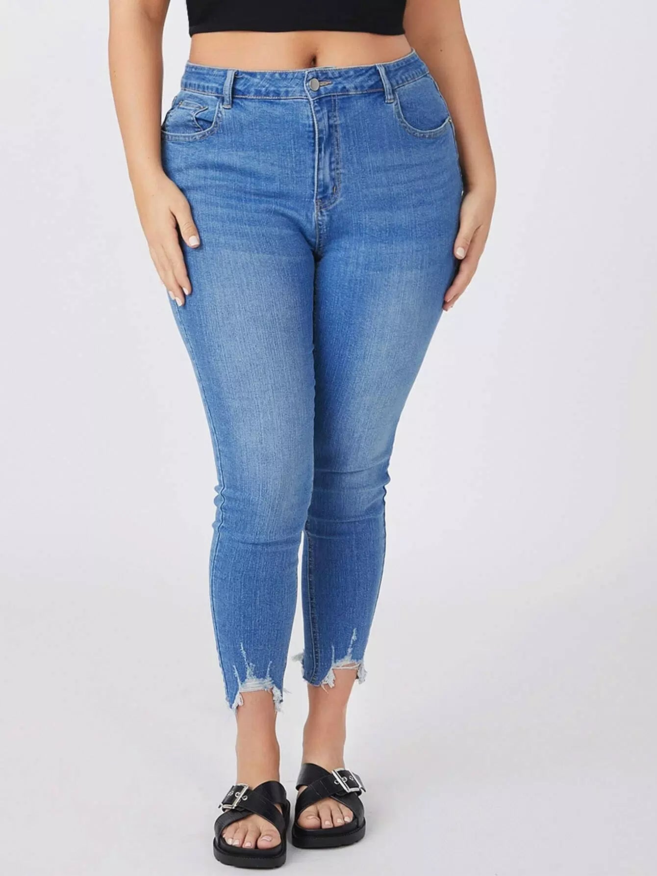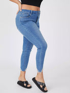 Plus High Waist Raw Hem Skinny Jeans