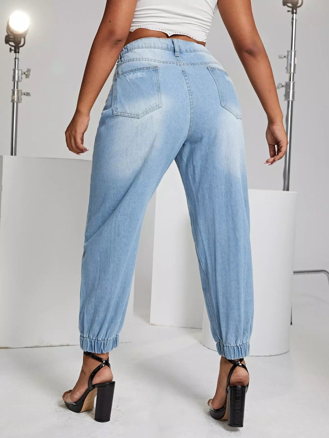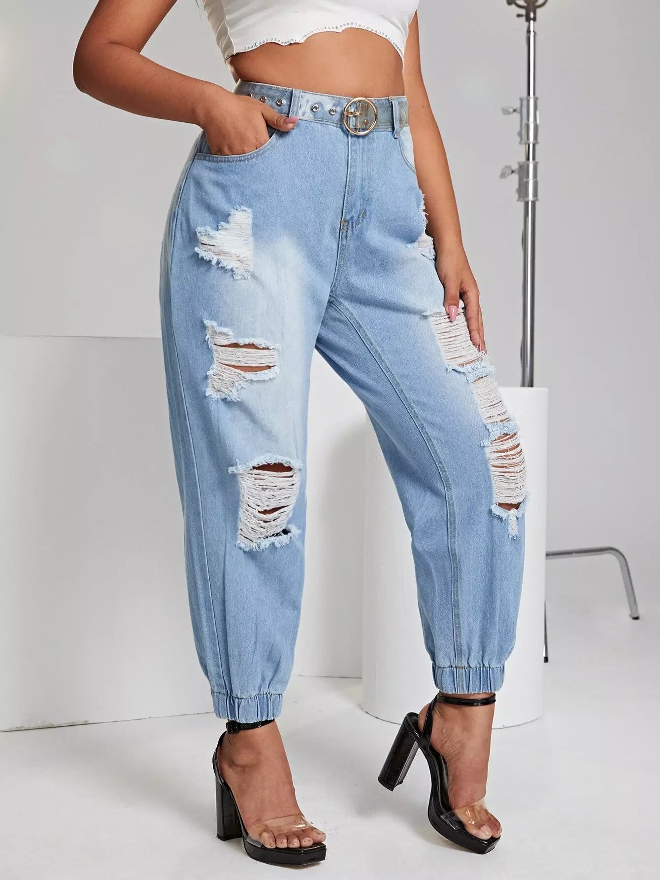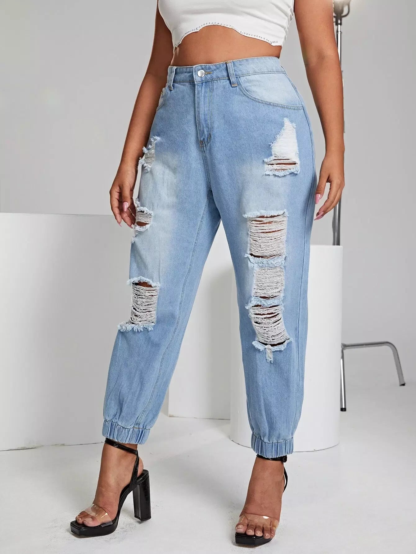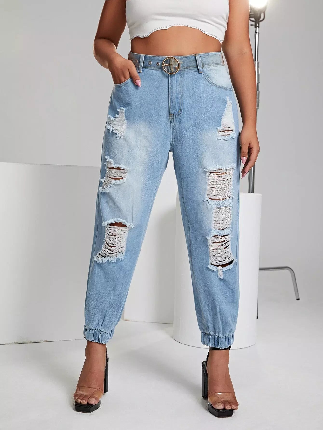 Plus High Waist Ripped Jogger Jeans Without Belt