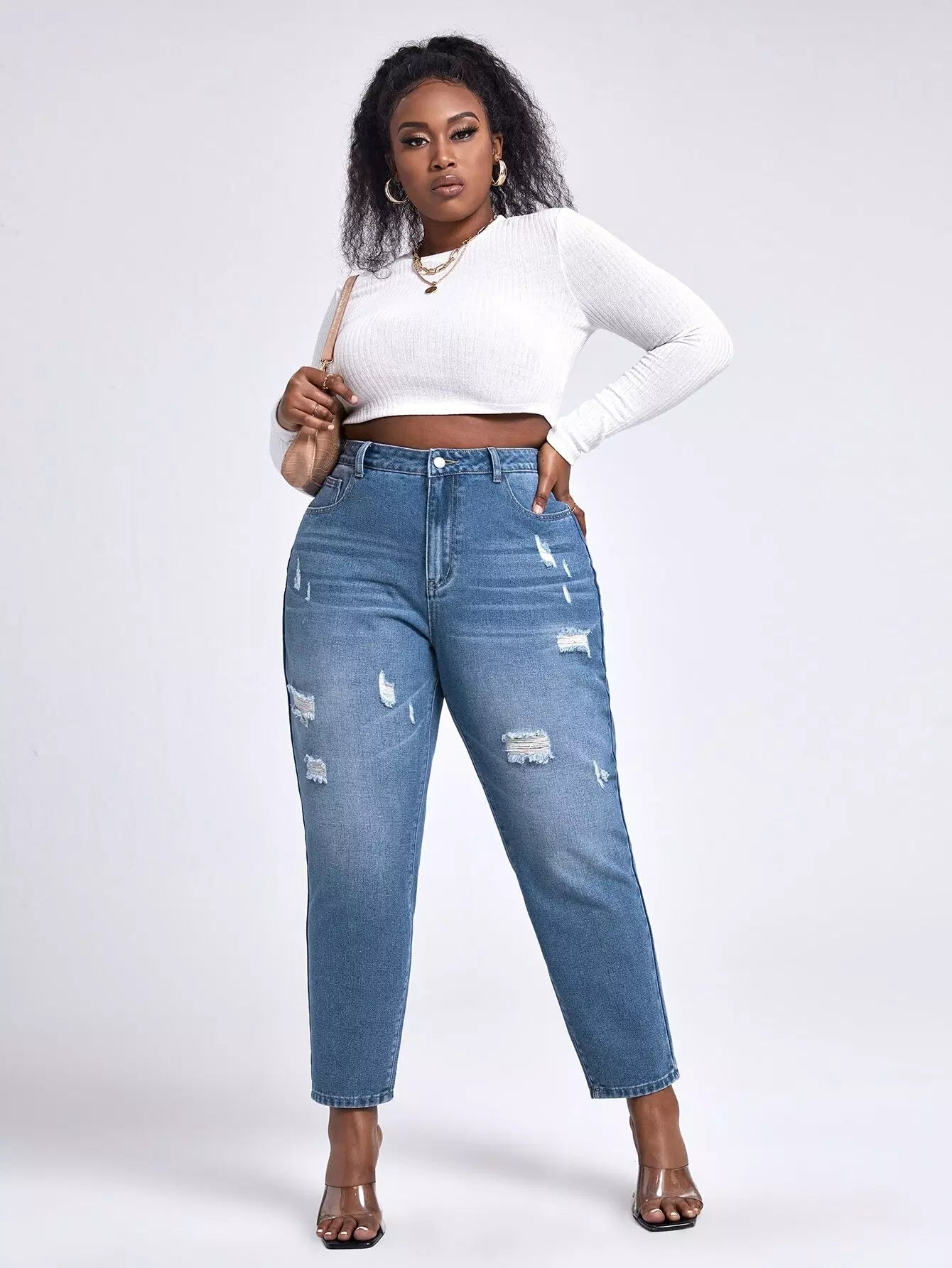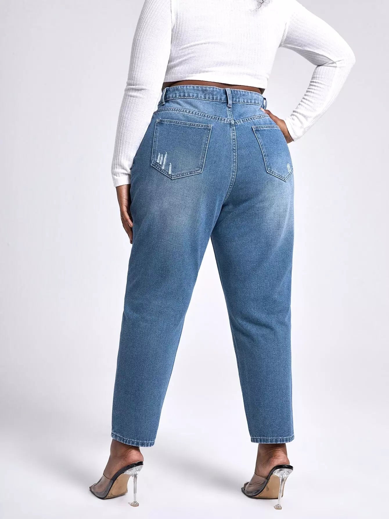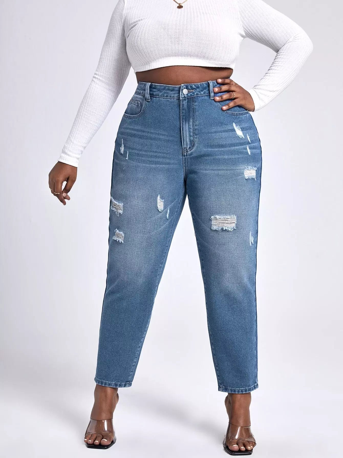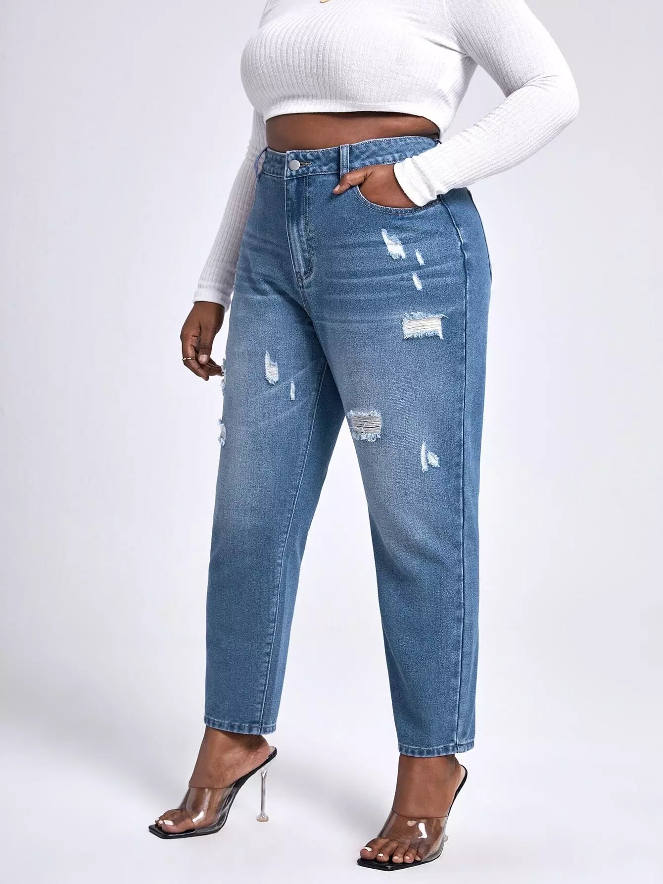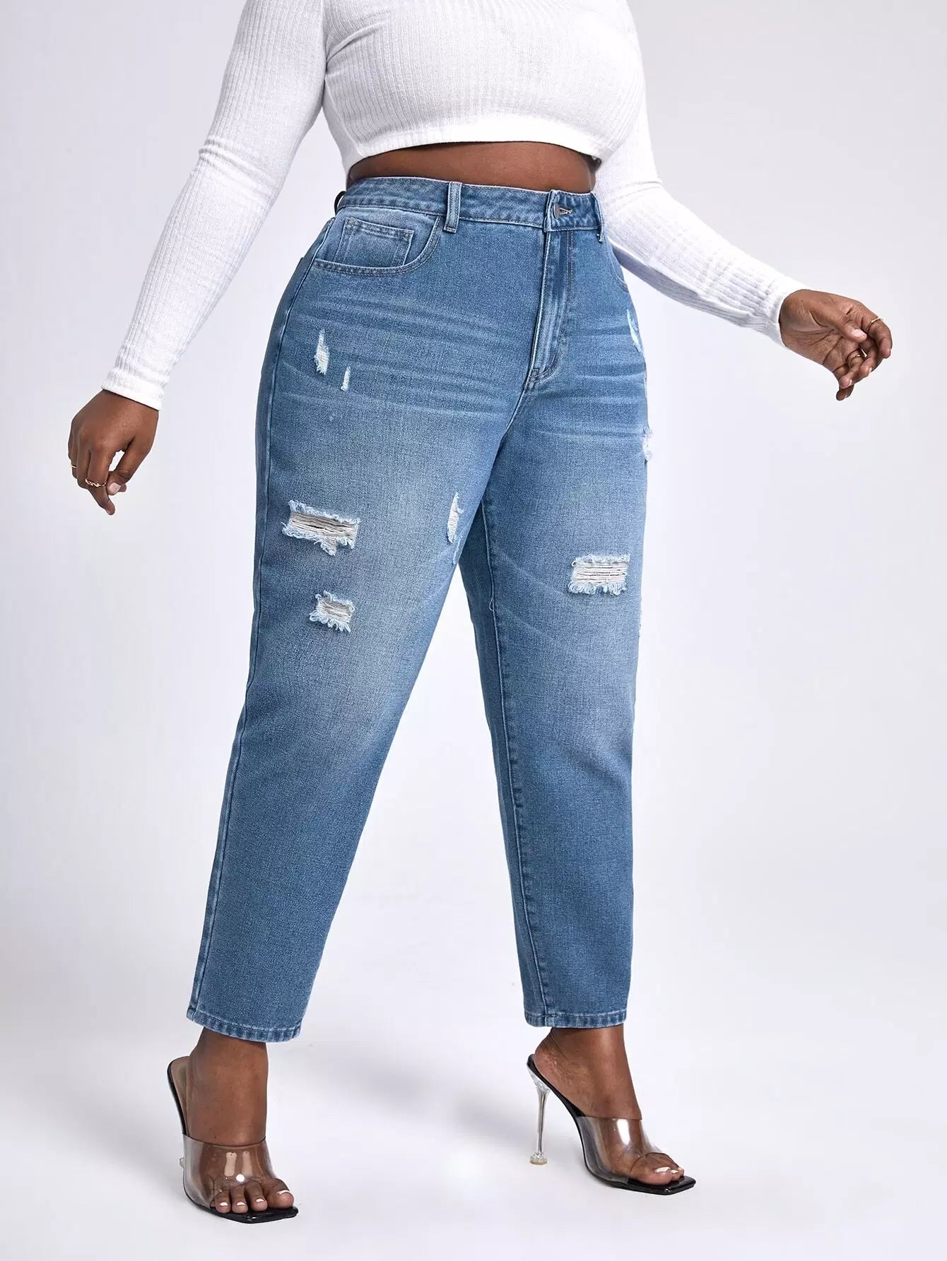 Plus High Waist Ripped Mom Fit Jeans