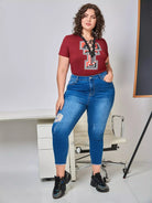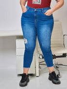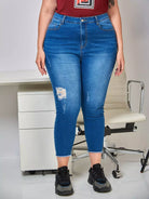 Women - Plus High Waist Ripped Raw Trim Skinny Jeans