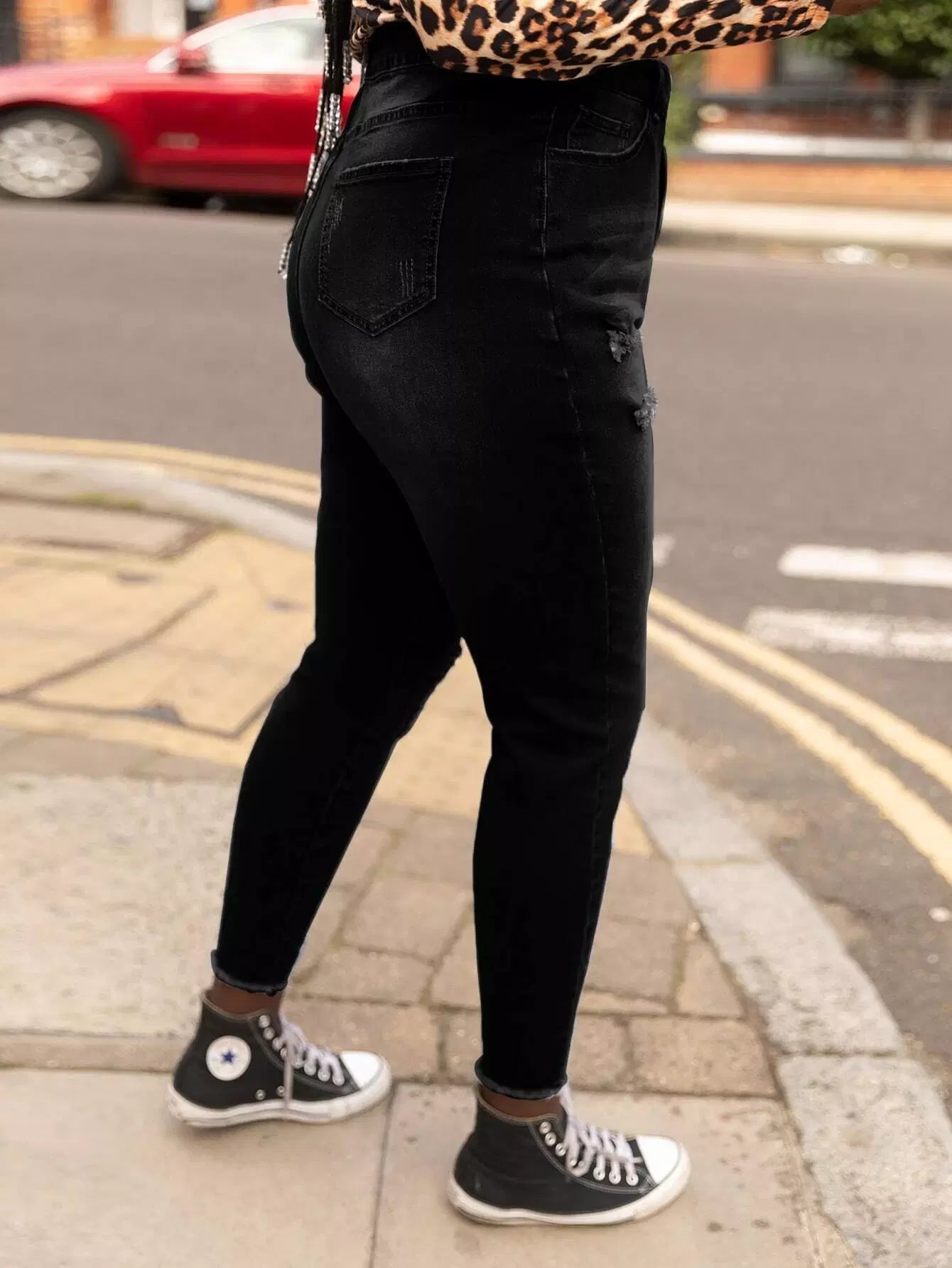 Women - Plus High Waist Ripped Skinny Jeans