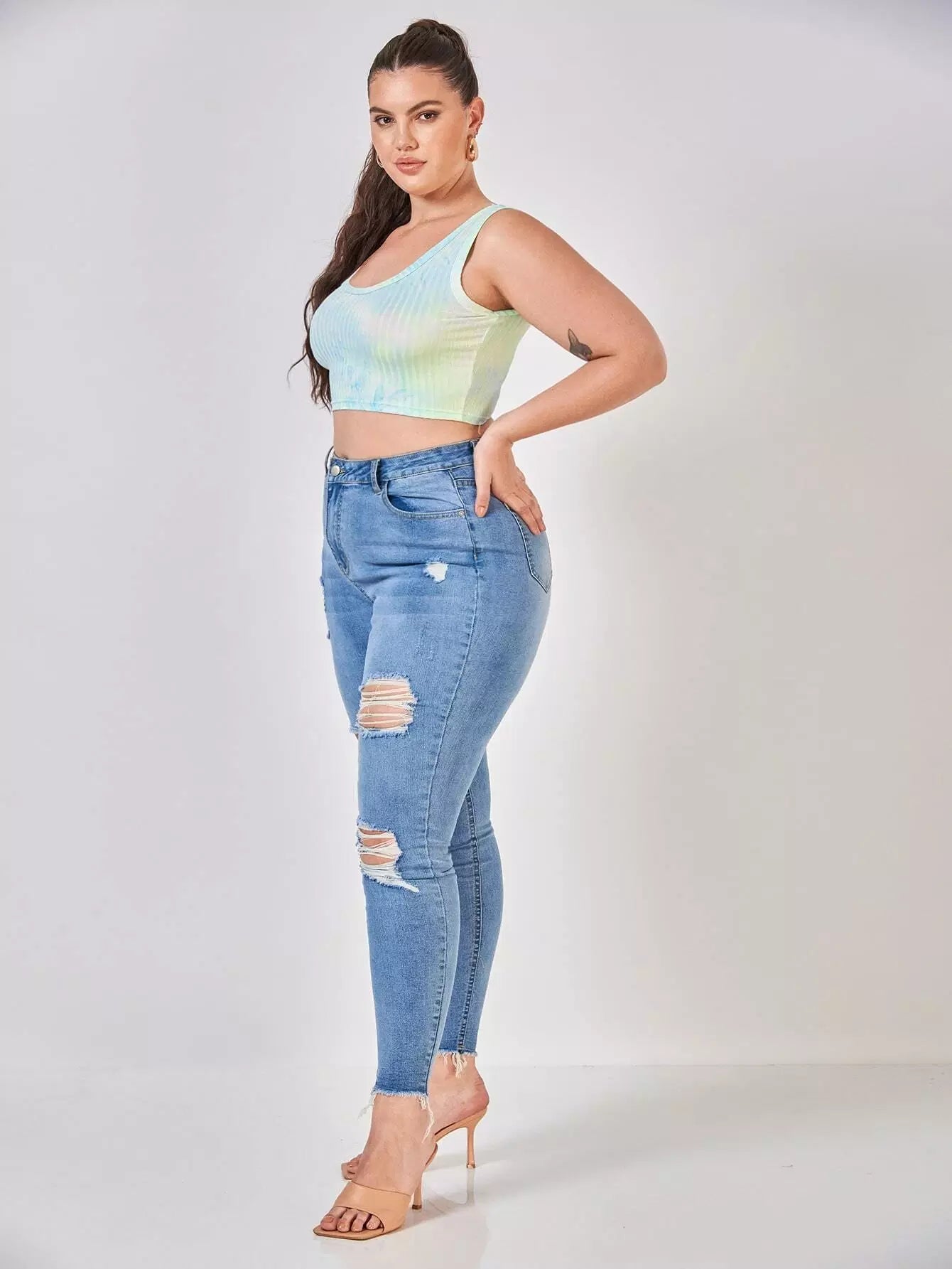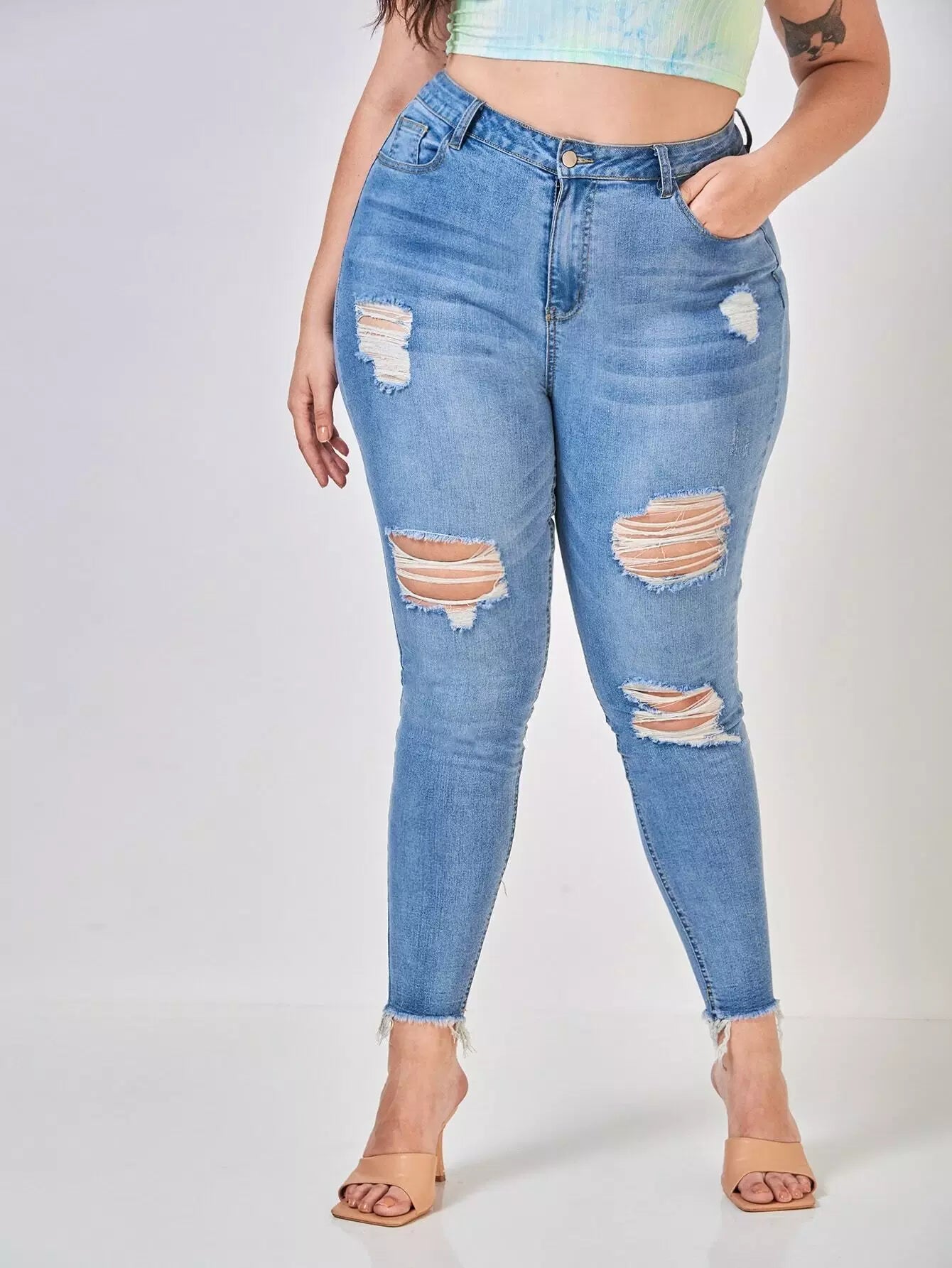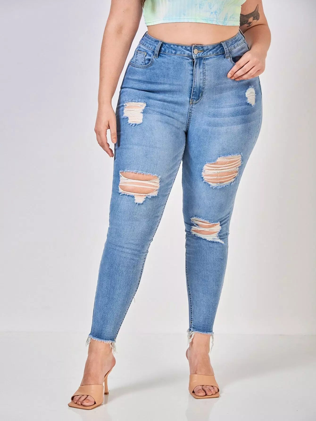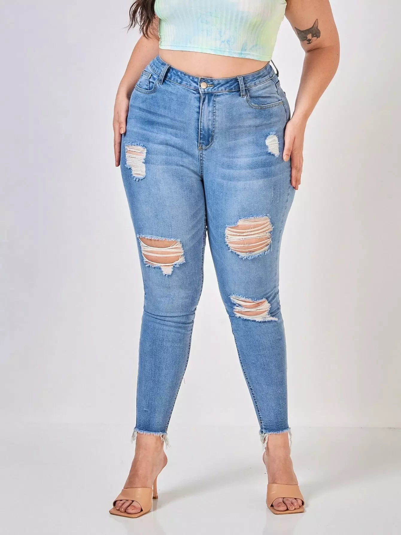 Plus High Waist Ripped Skinny Jeans