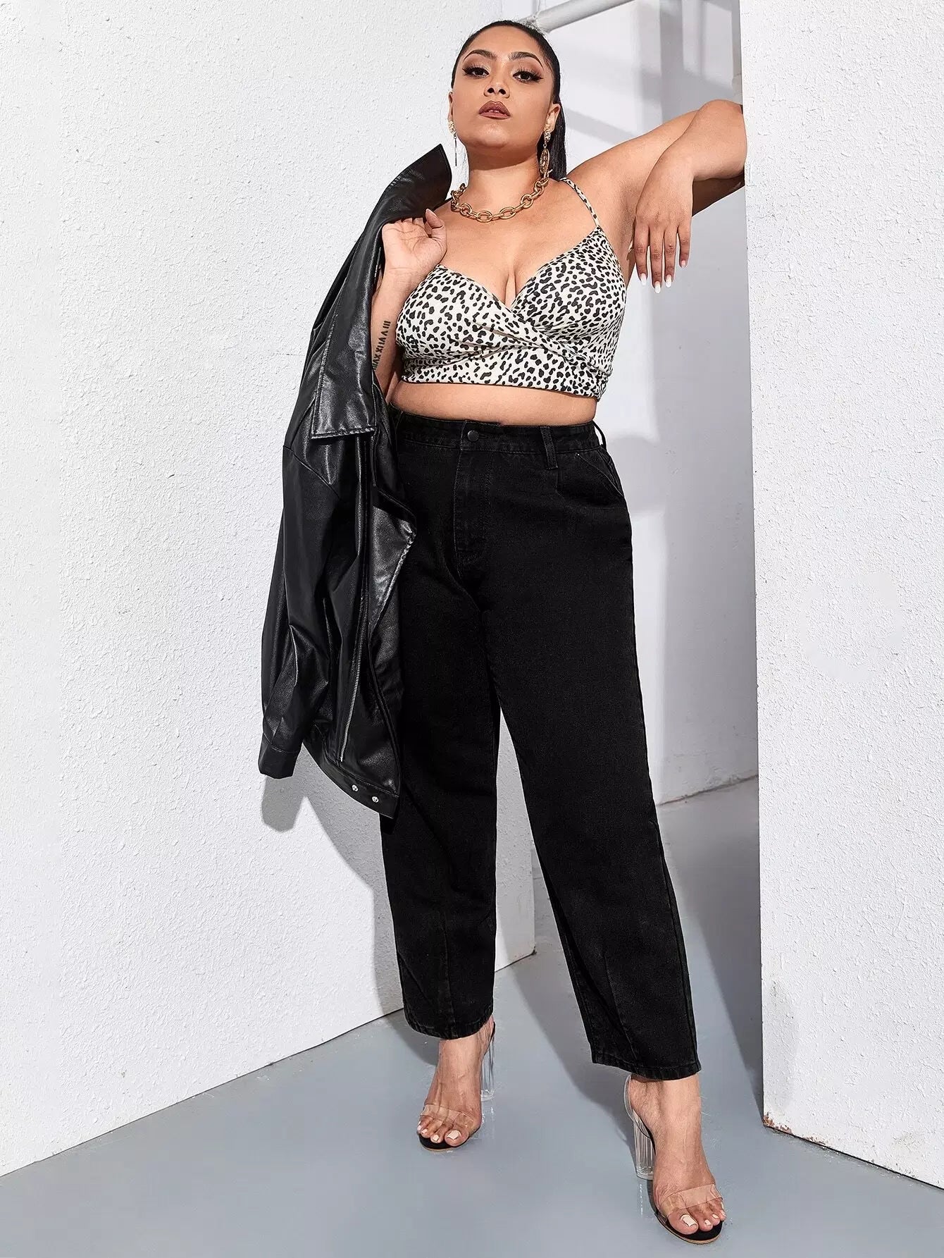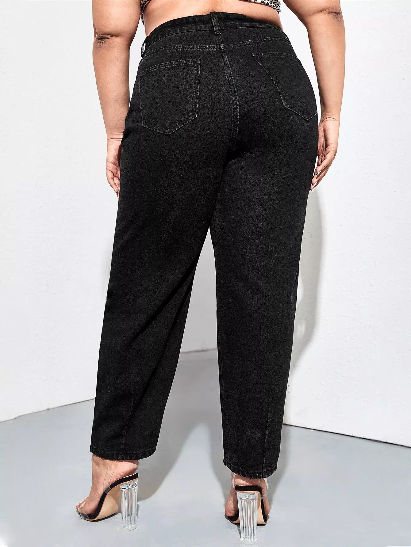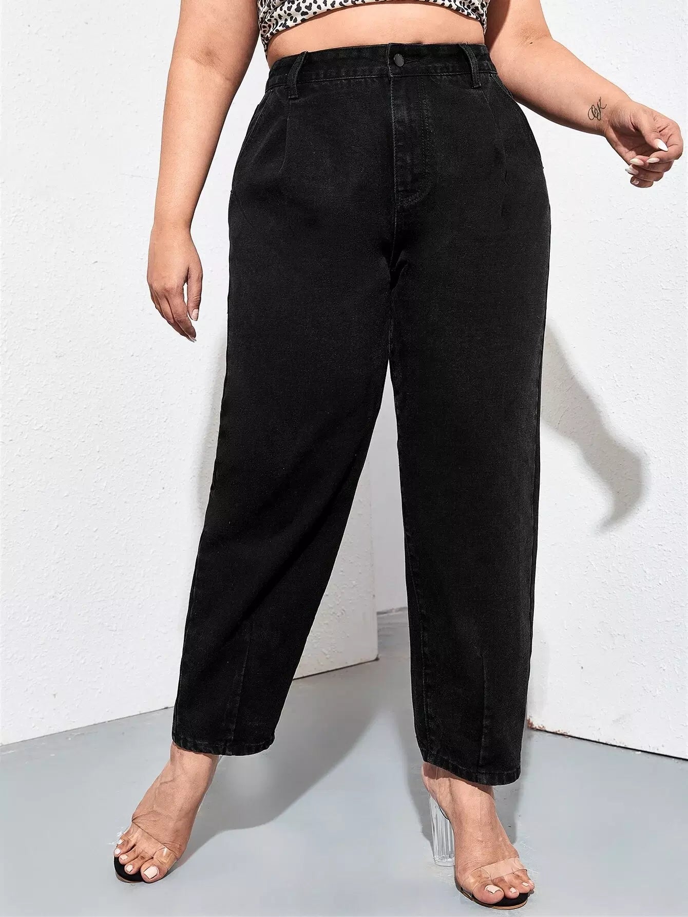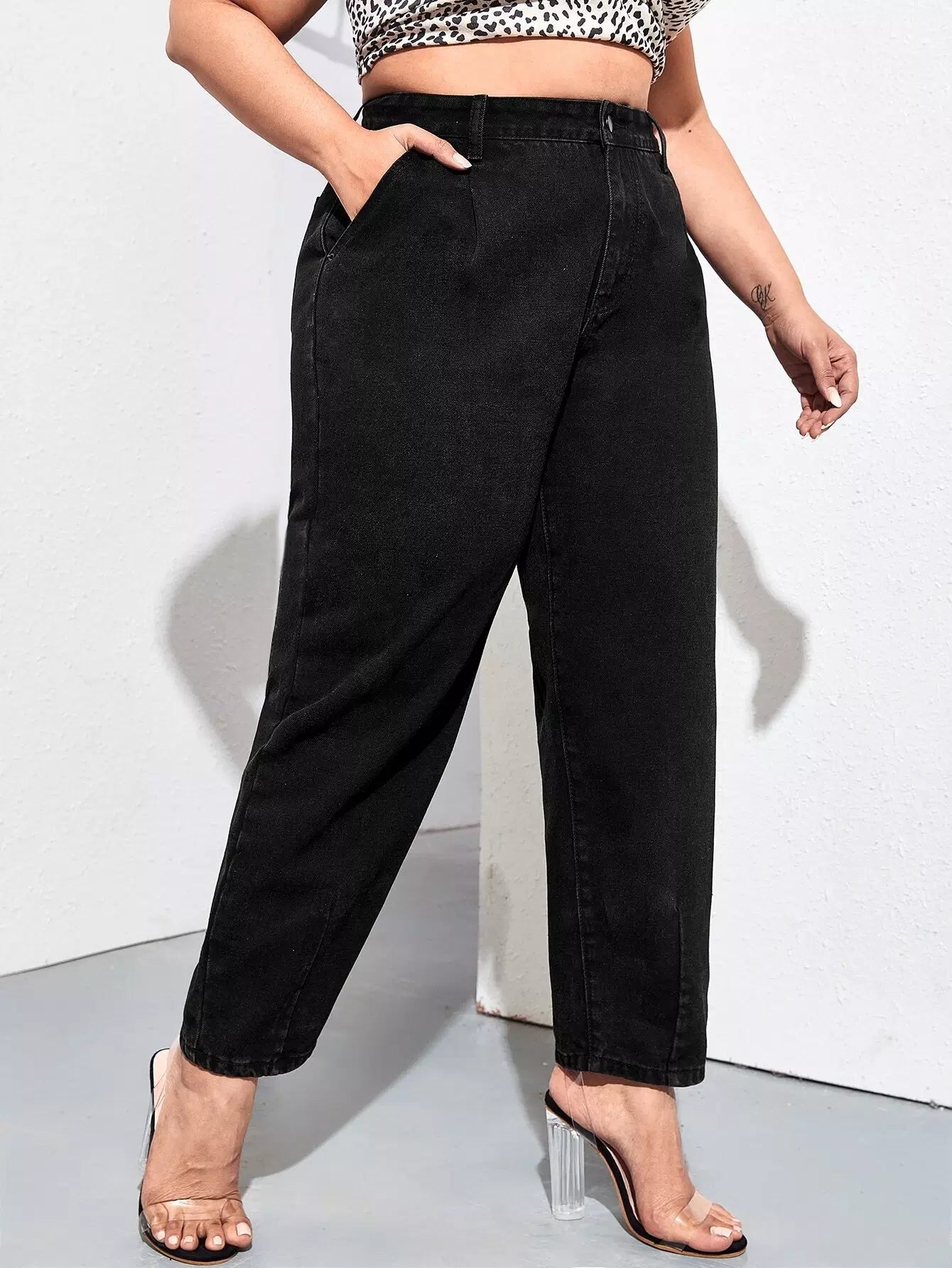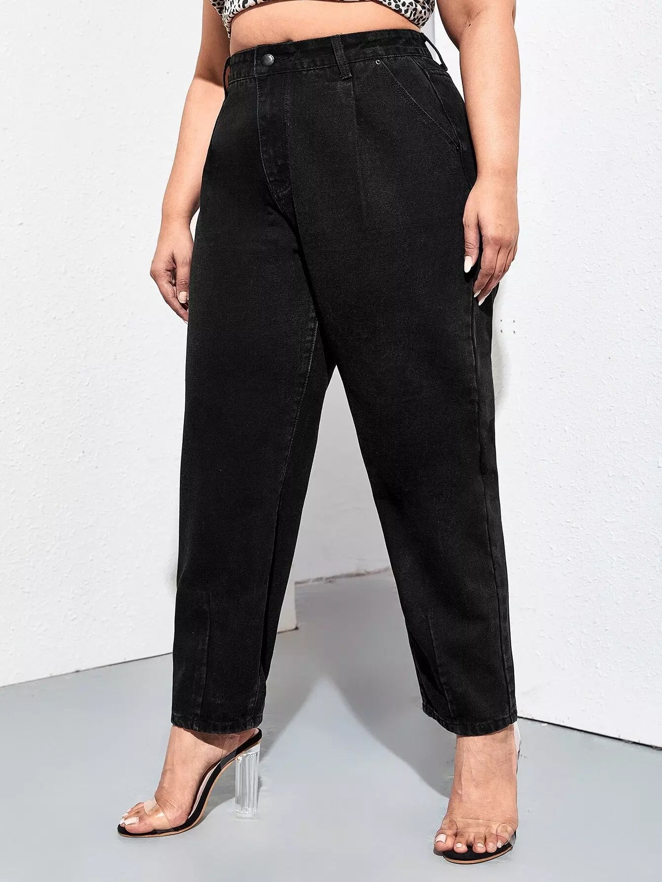 Plus High Waist Slant Pocket Mom Jeans