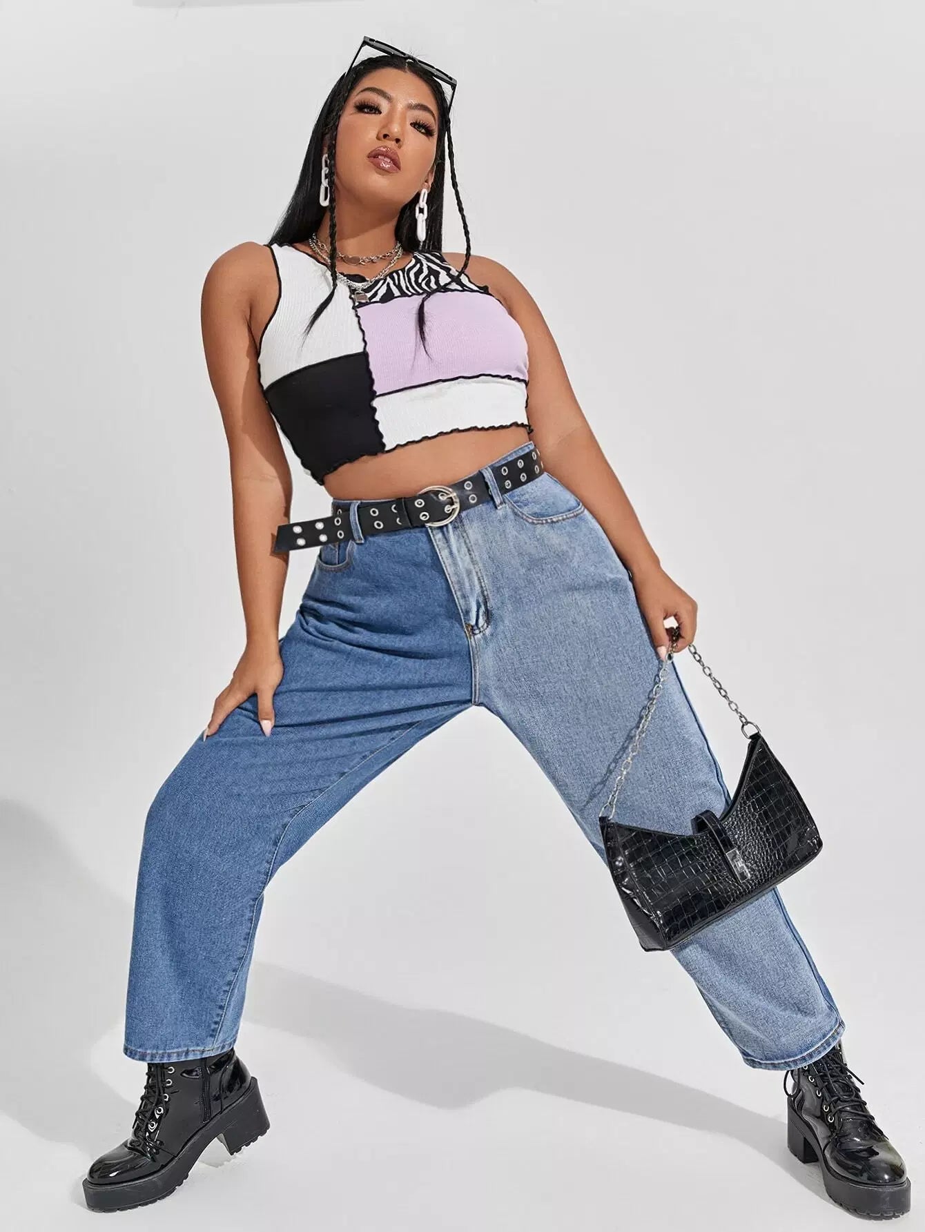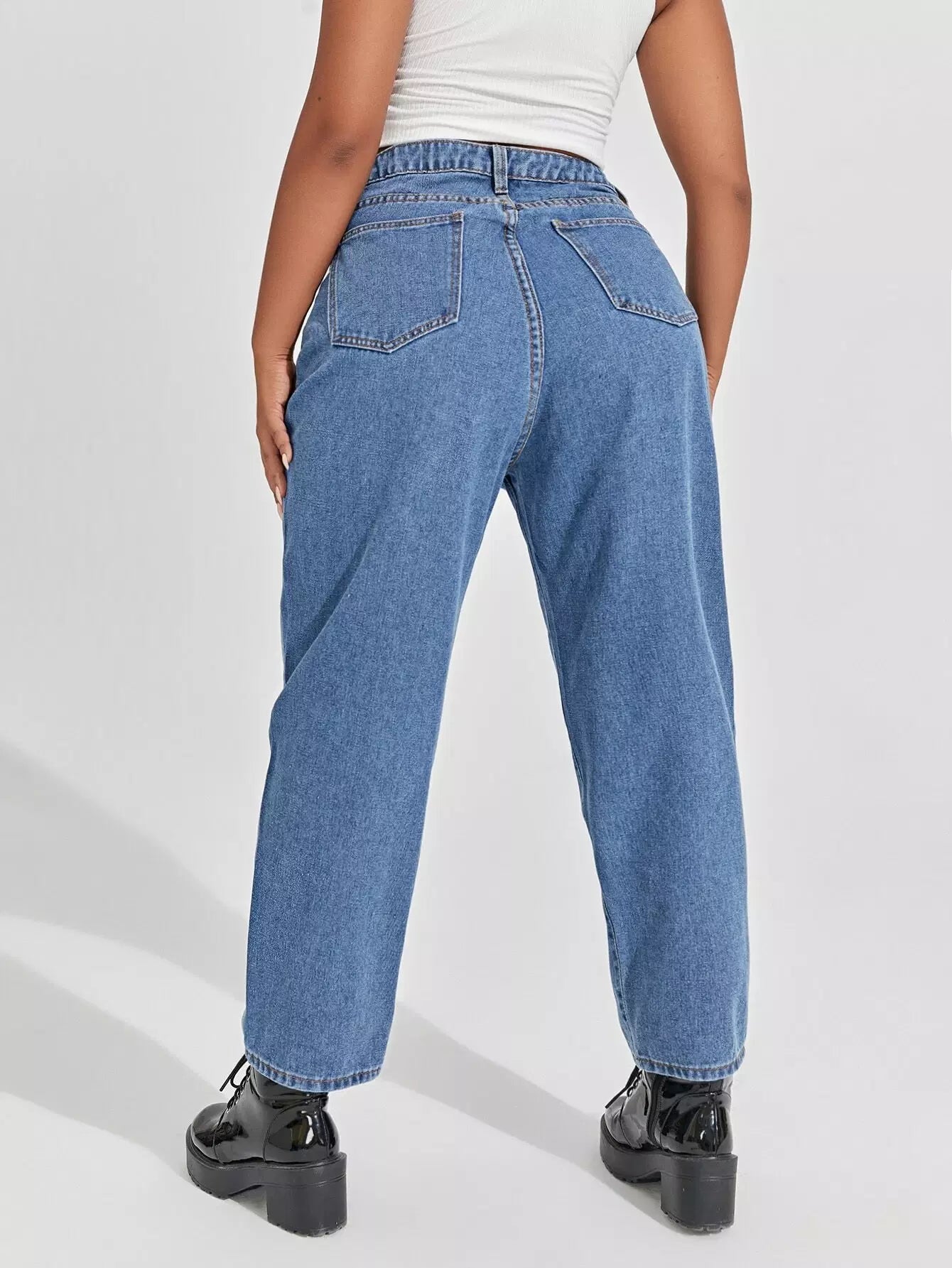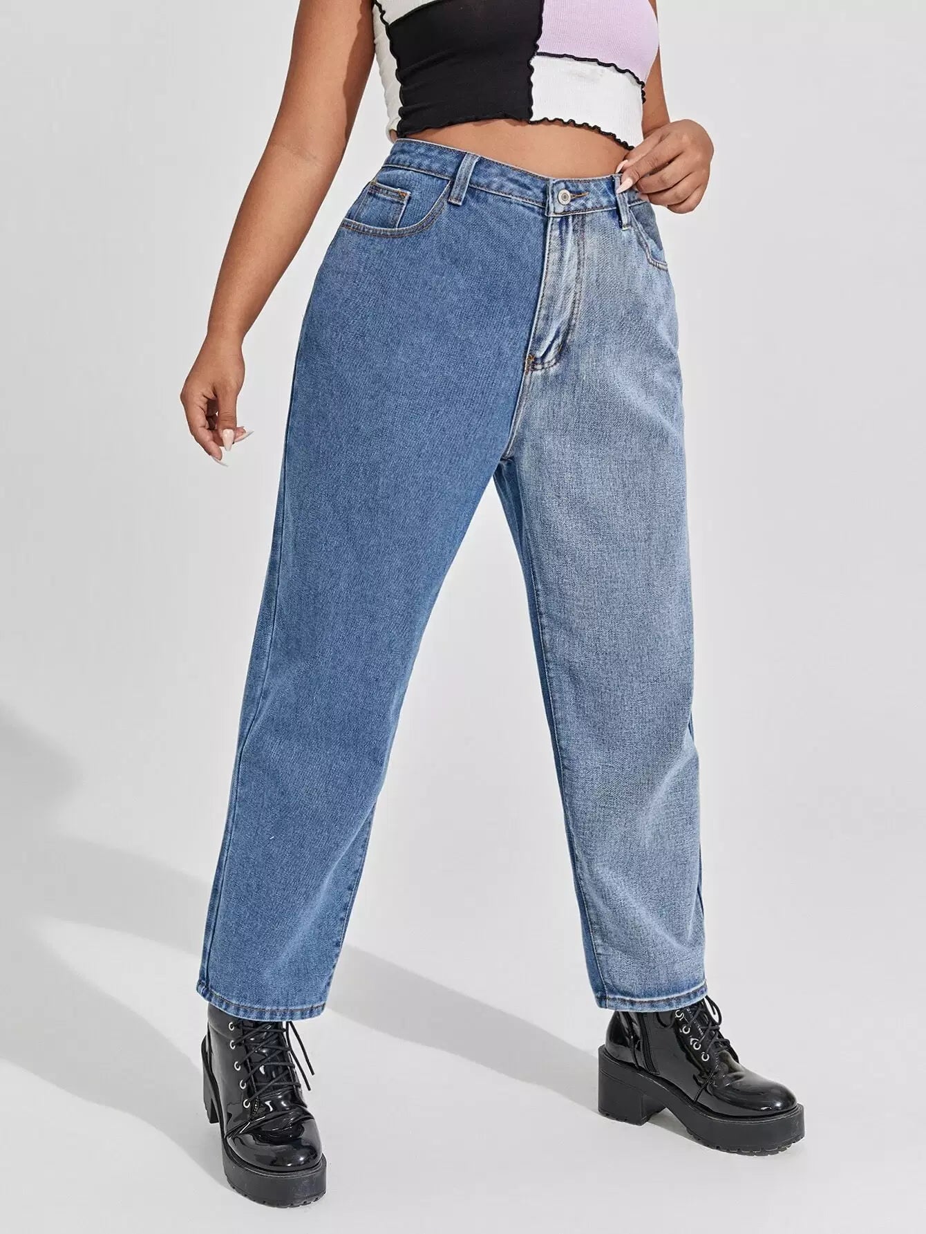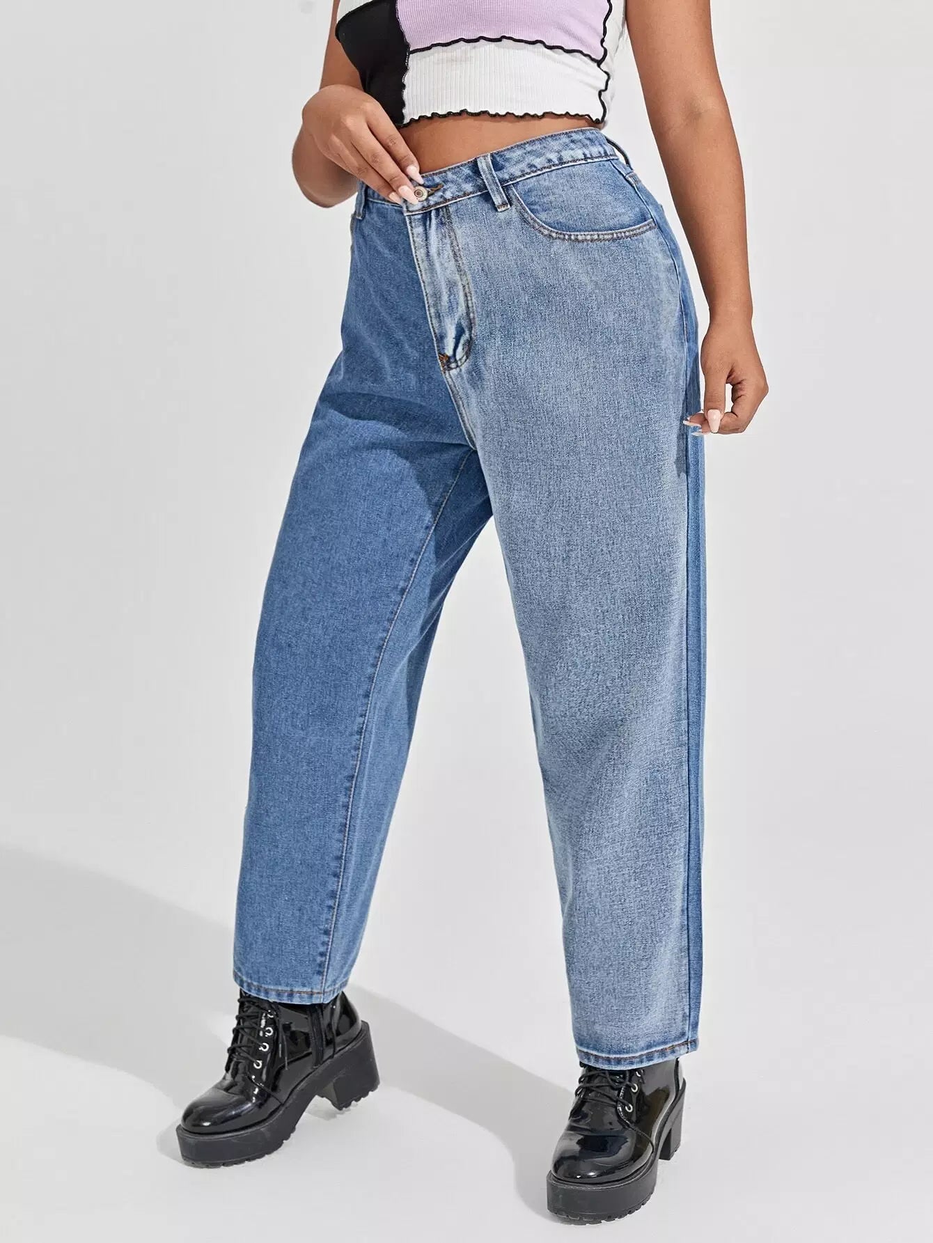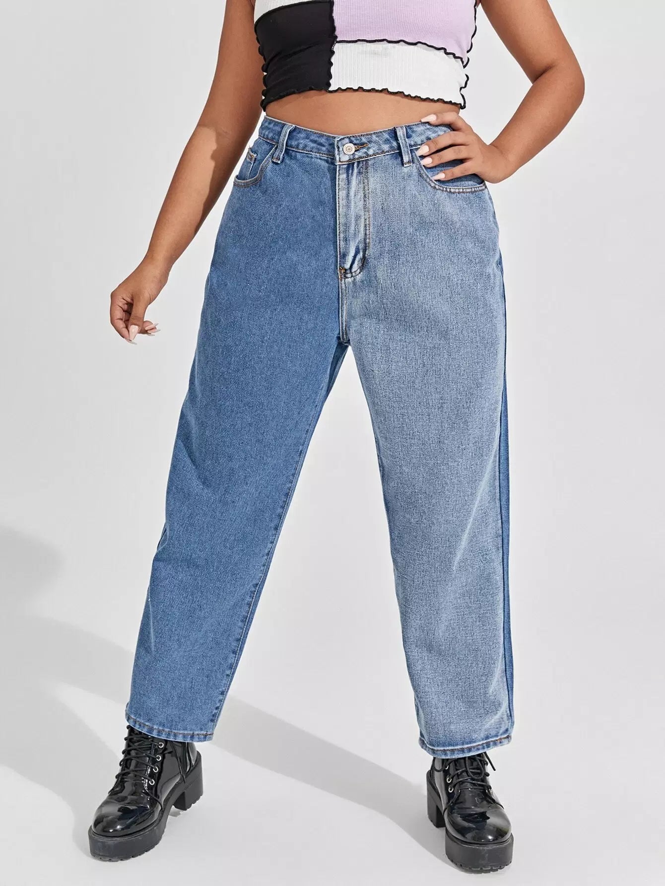Plus High Waist Spliced Mom Jeans