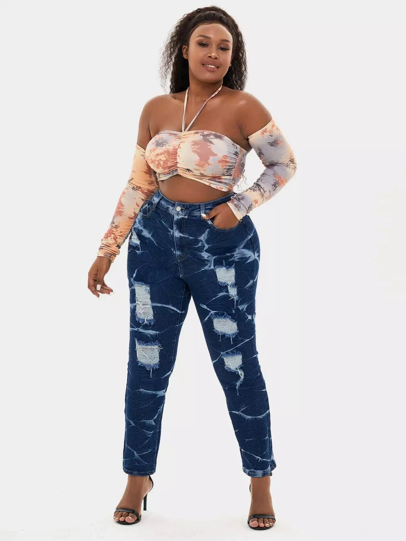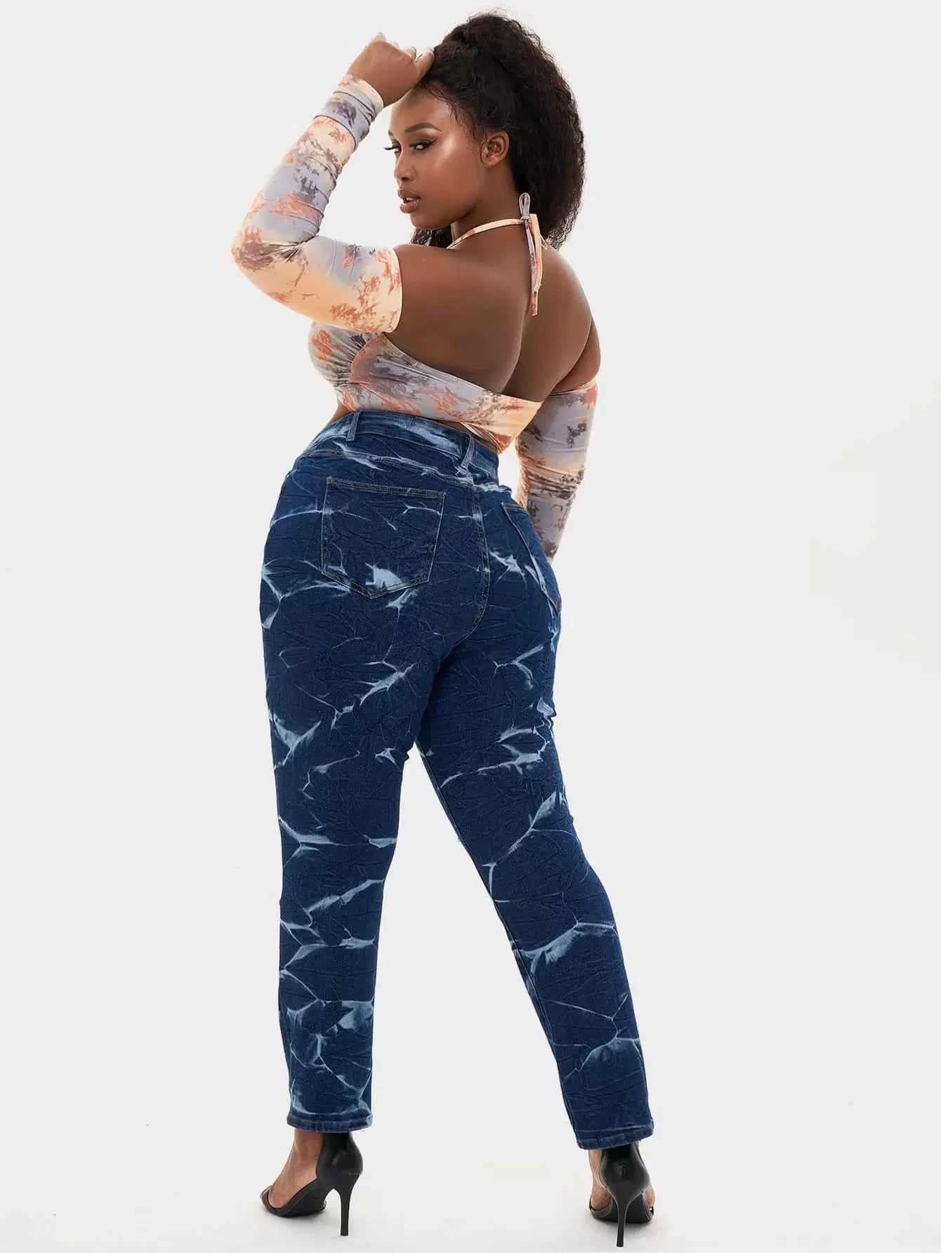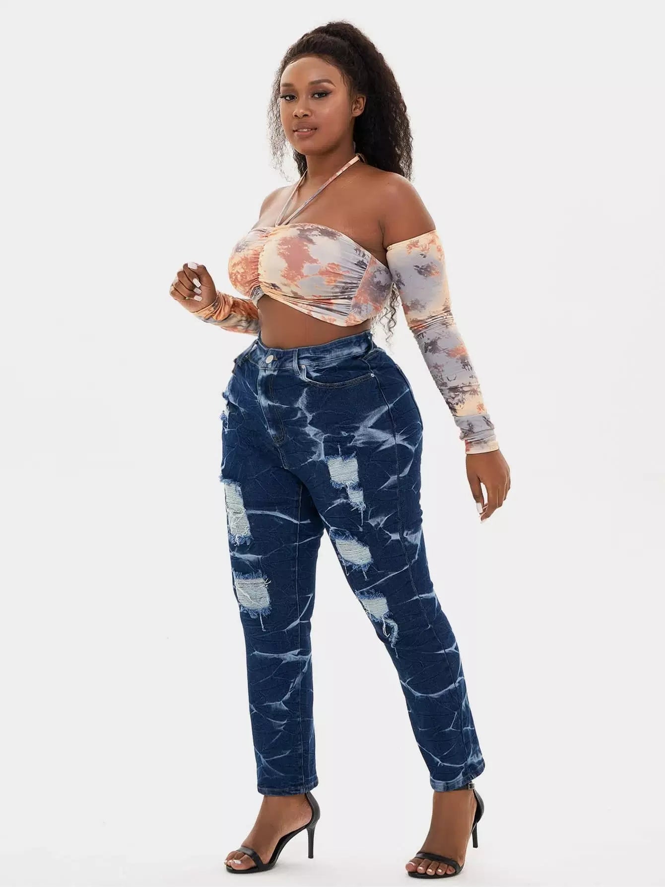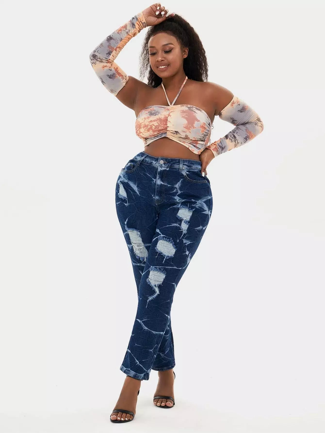 Plus High Waist Tie Dye Ripped Frayed Jeans