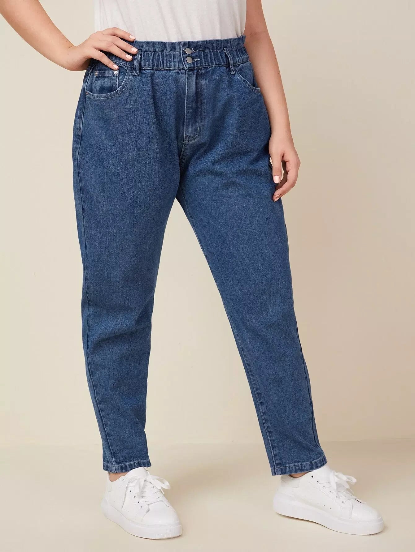 Plus Paperbag Waist Button Fly Jeans