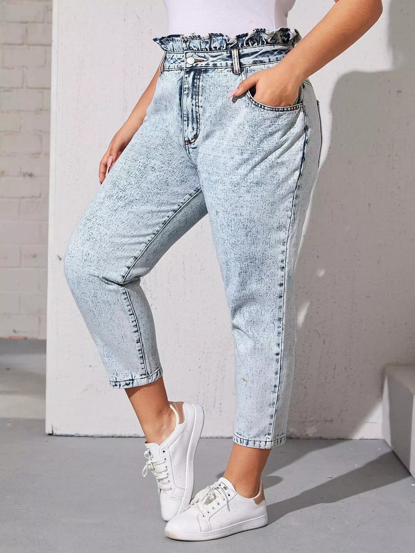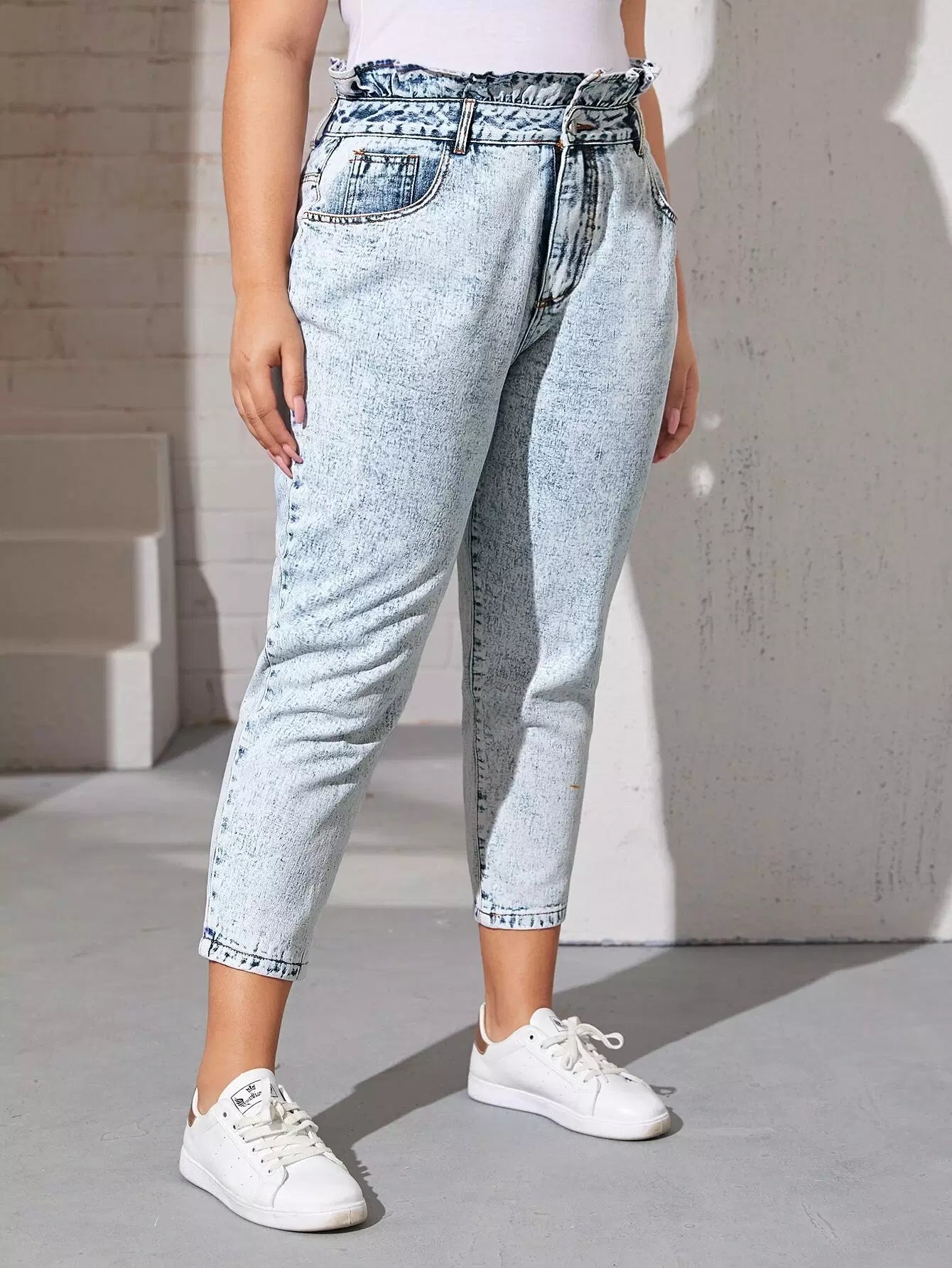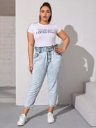 Plus Paperbag Waist Cropped Flakes Jeans