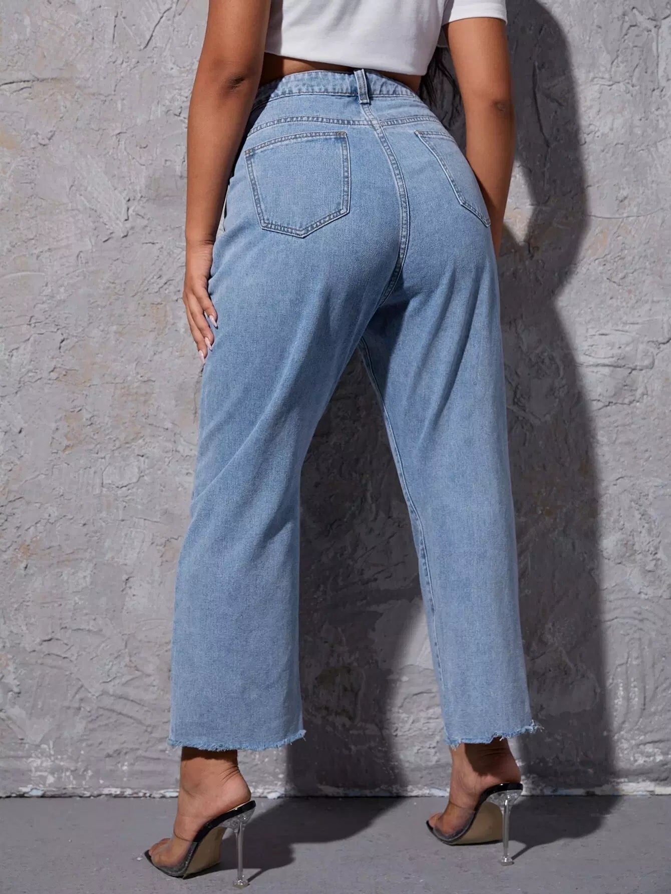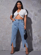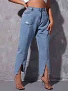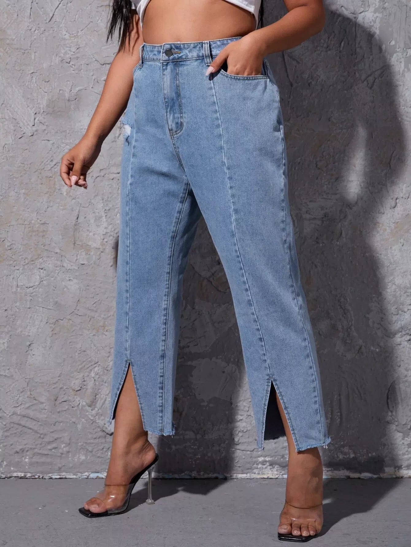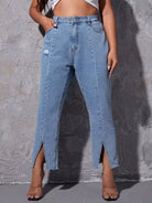 Plus Ripped Split Hem Jeans