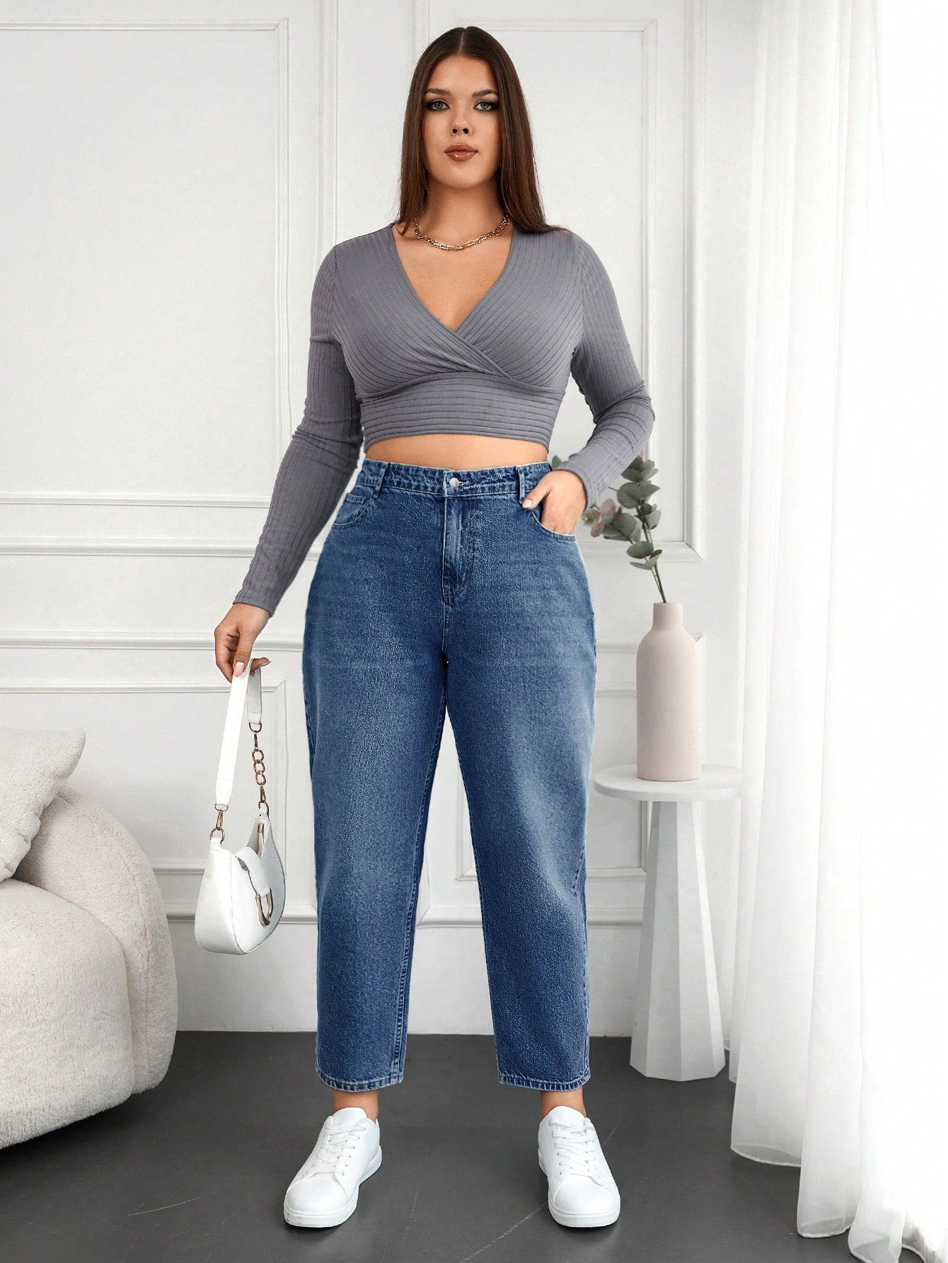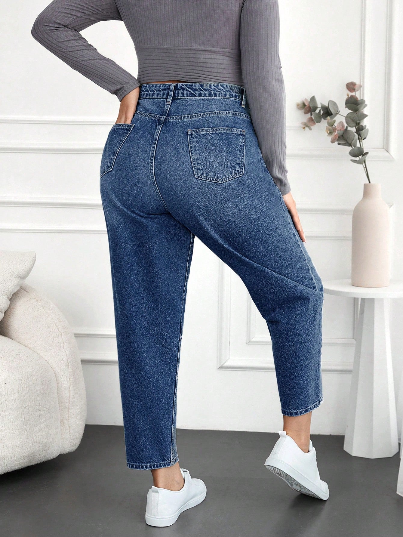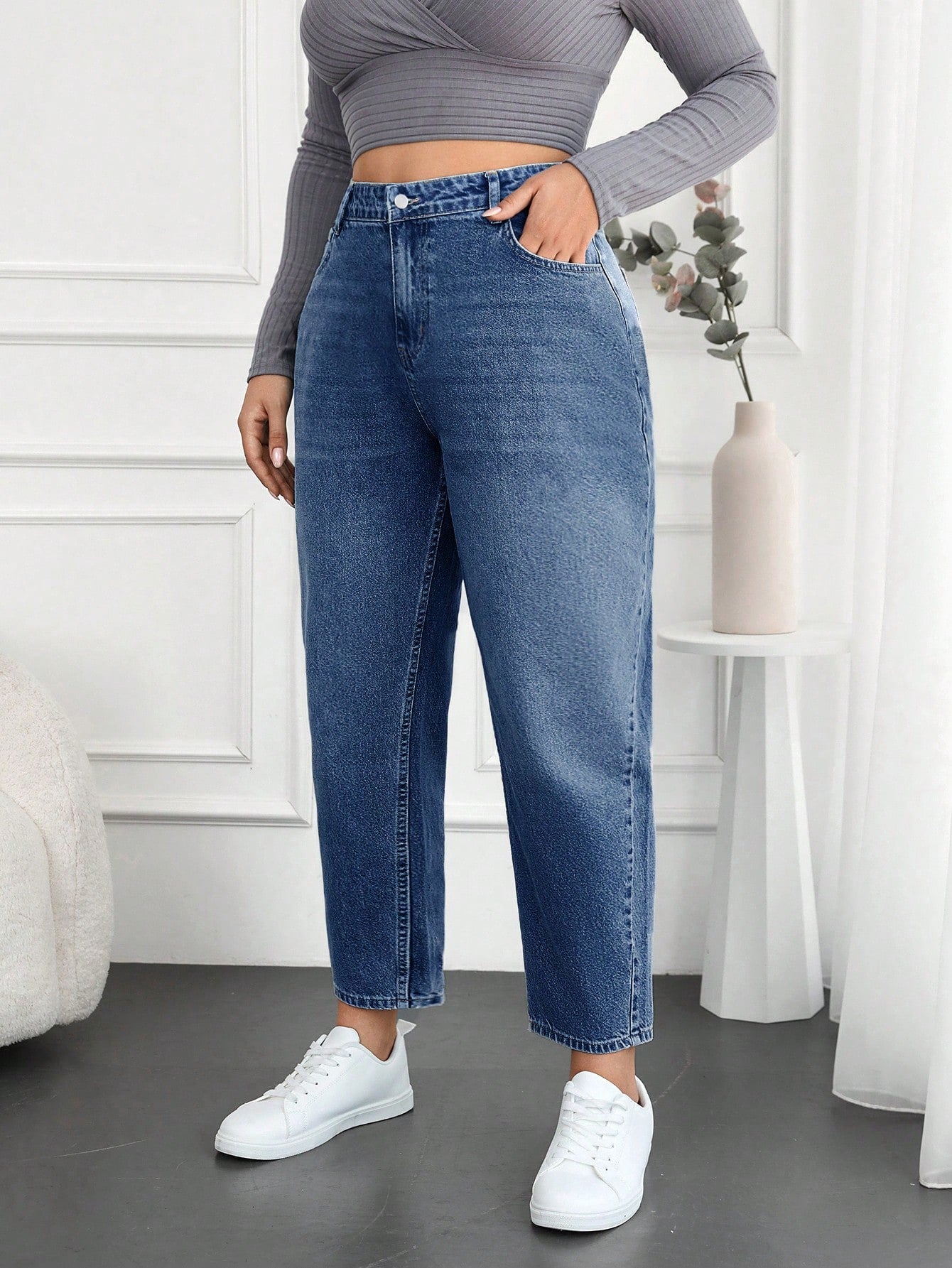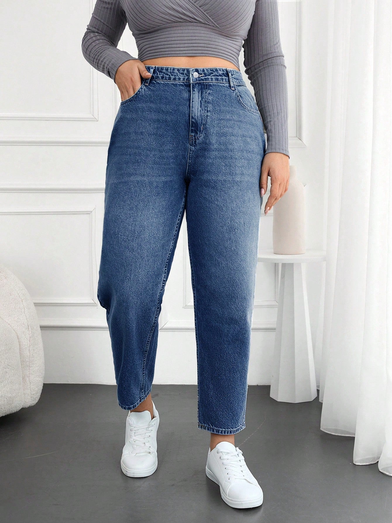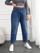 Plus Size Water Washed Mom Style Jeans
