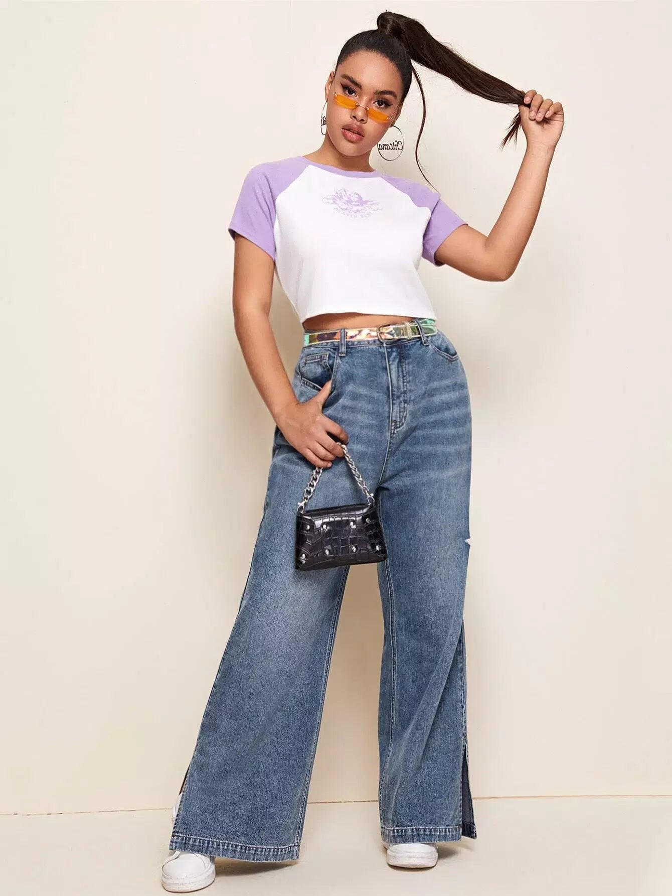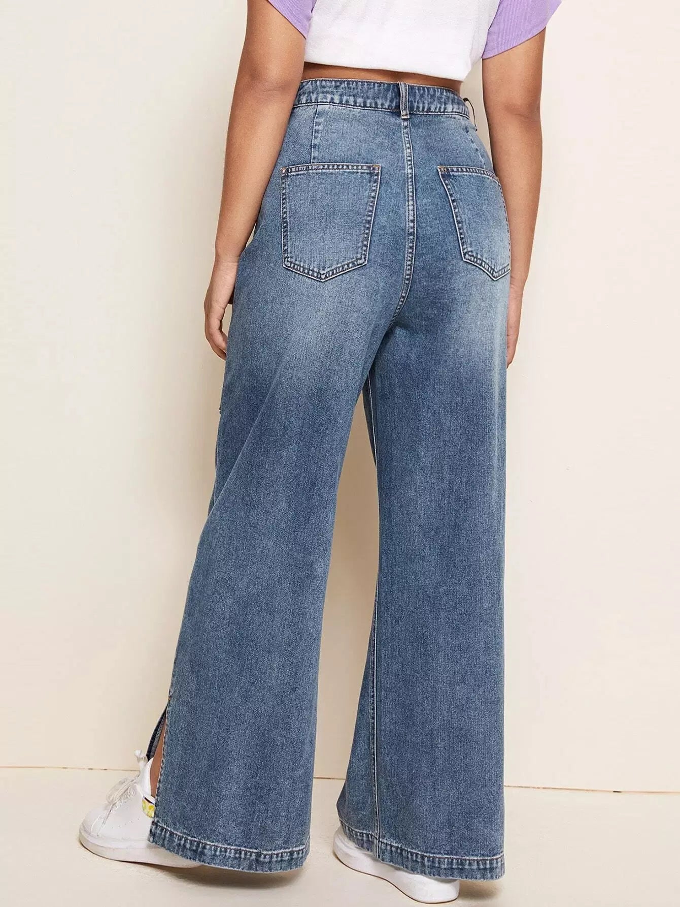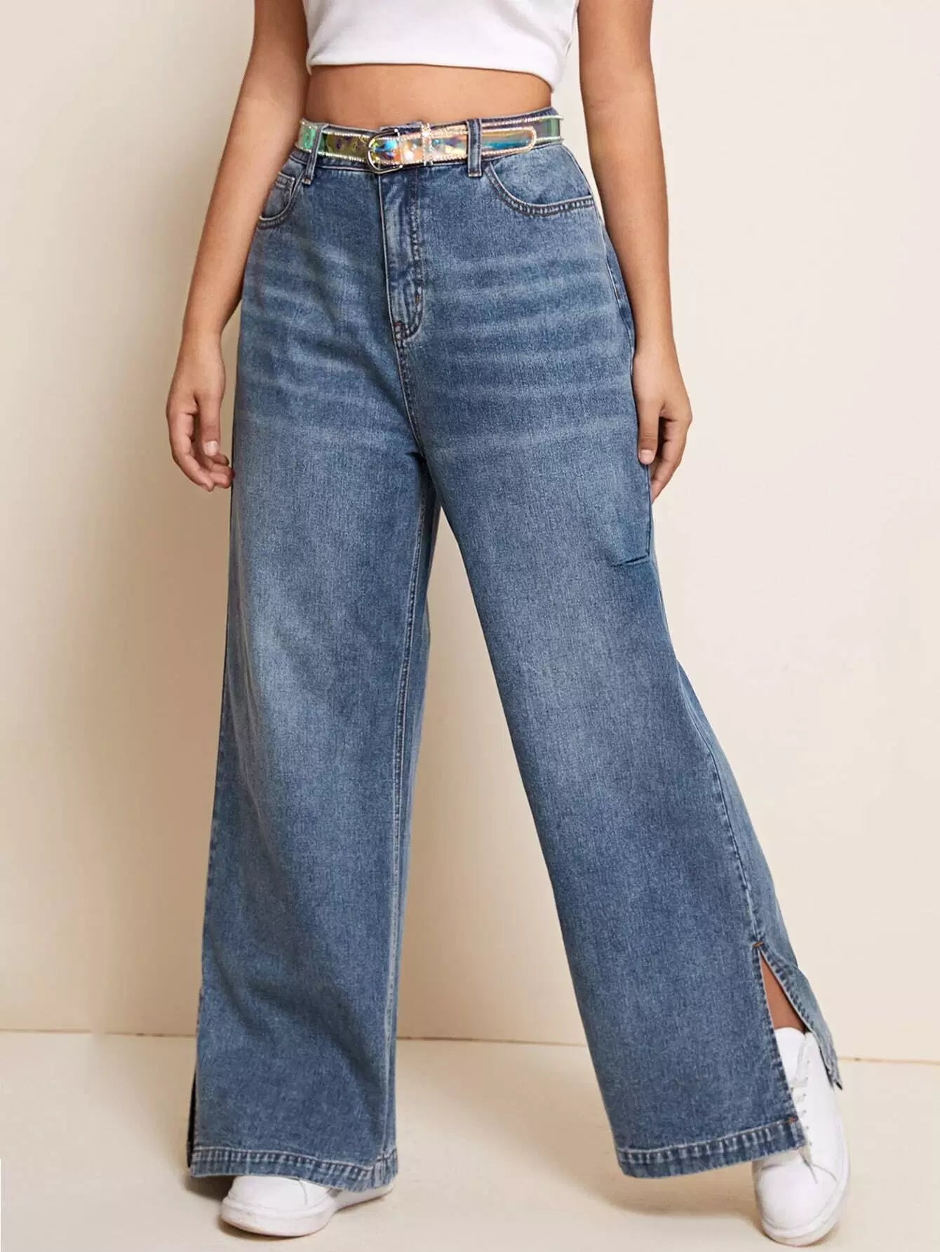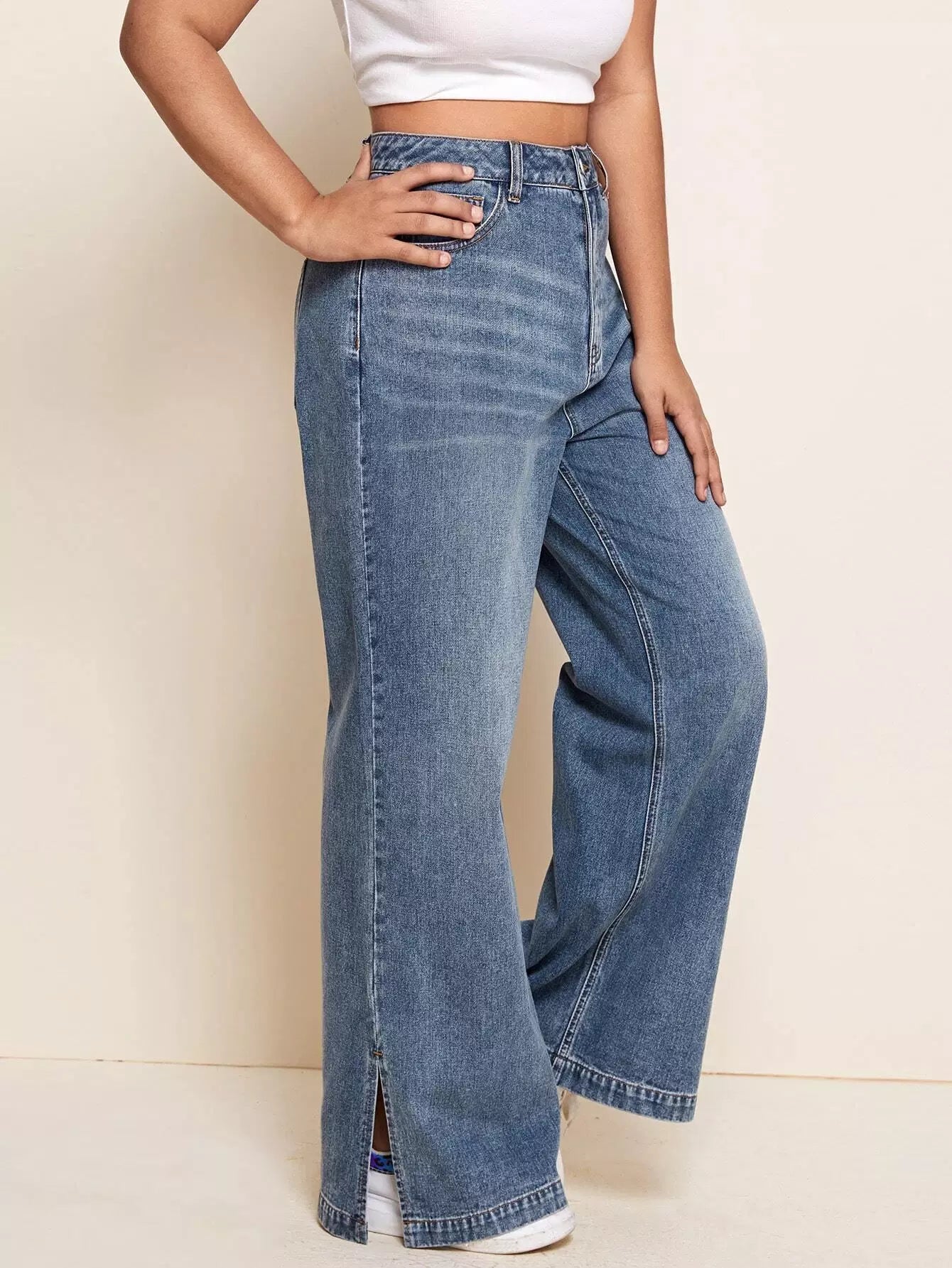 Plus Slant Pocket Split Hem Jeans Without Belt