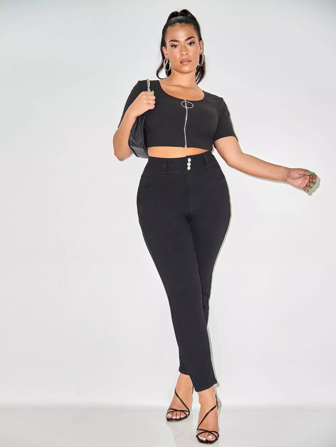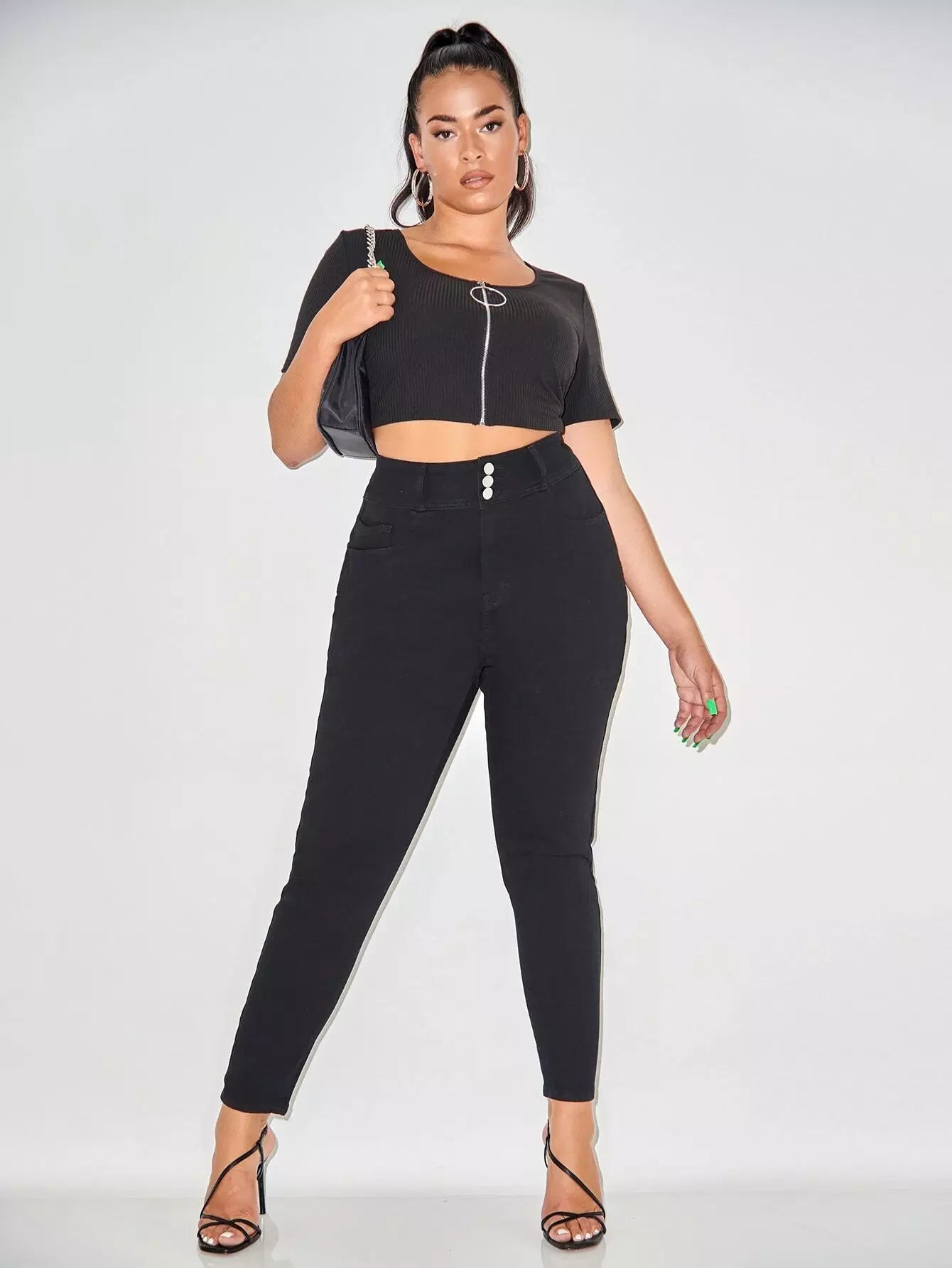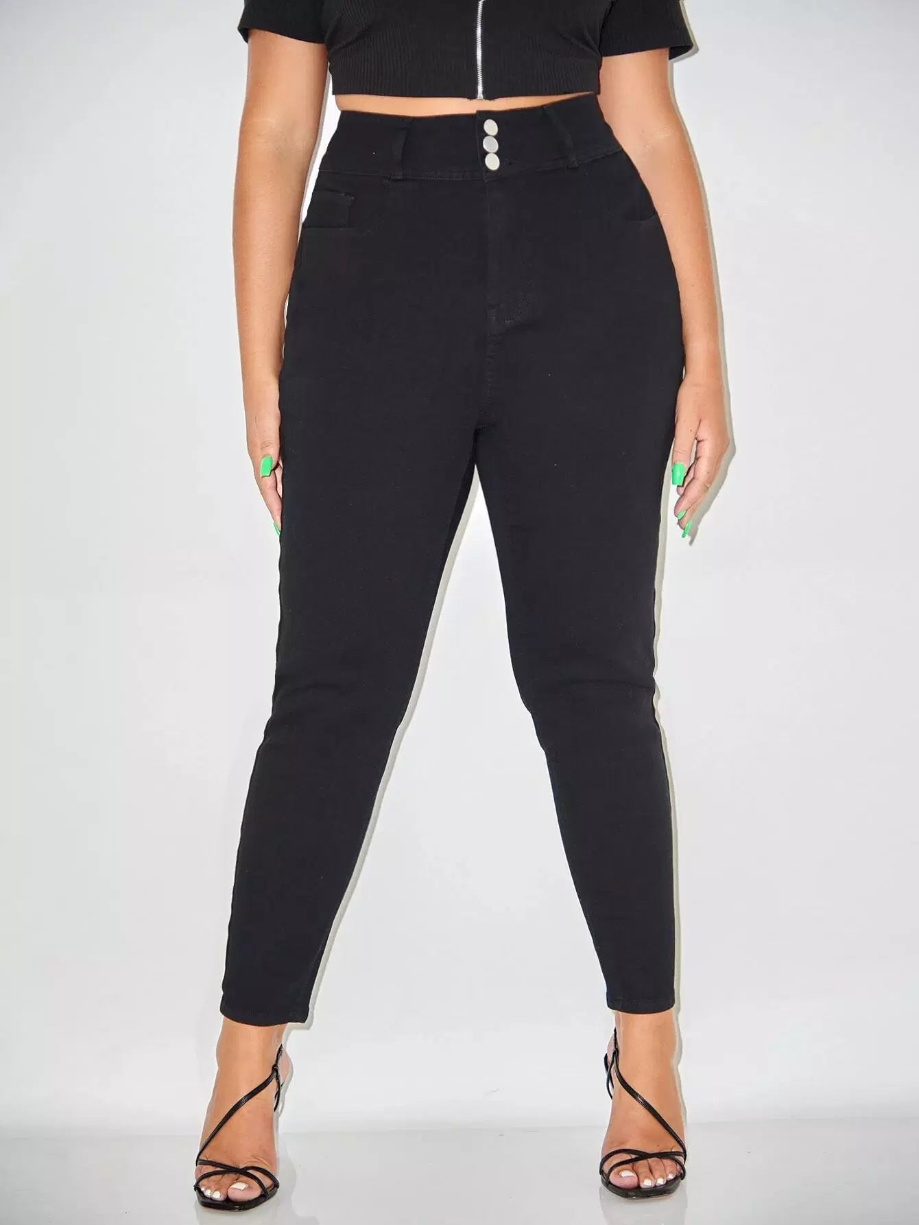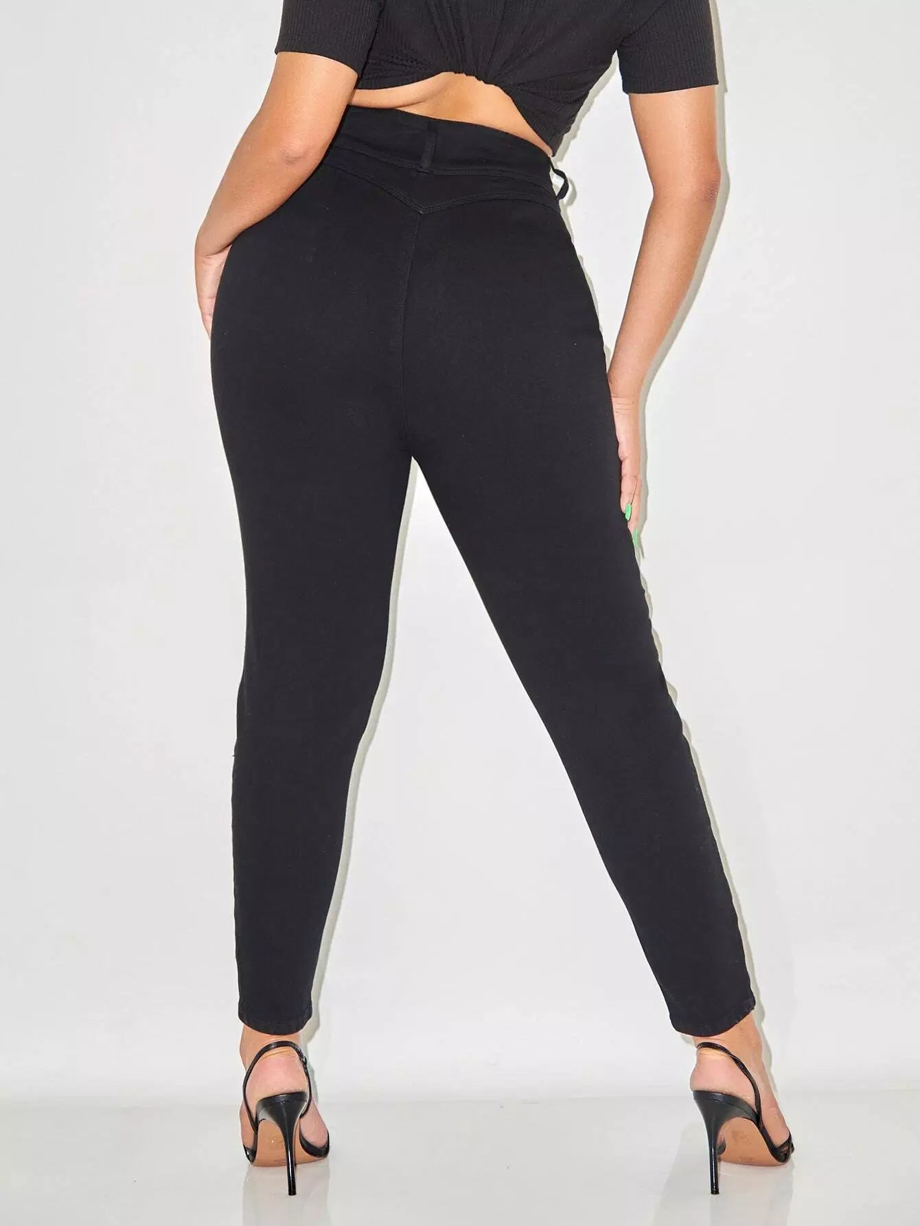 Plus Solid High Waist Skinny Jeans