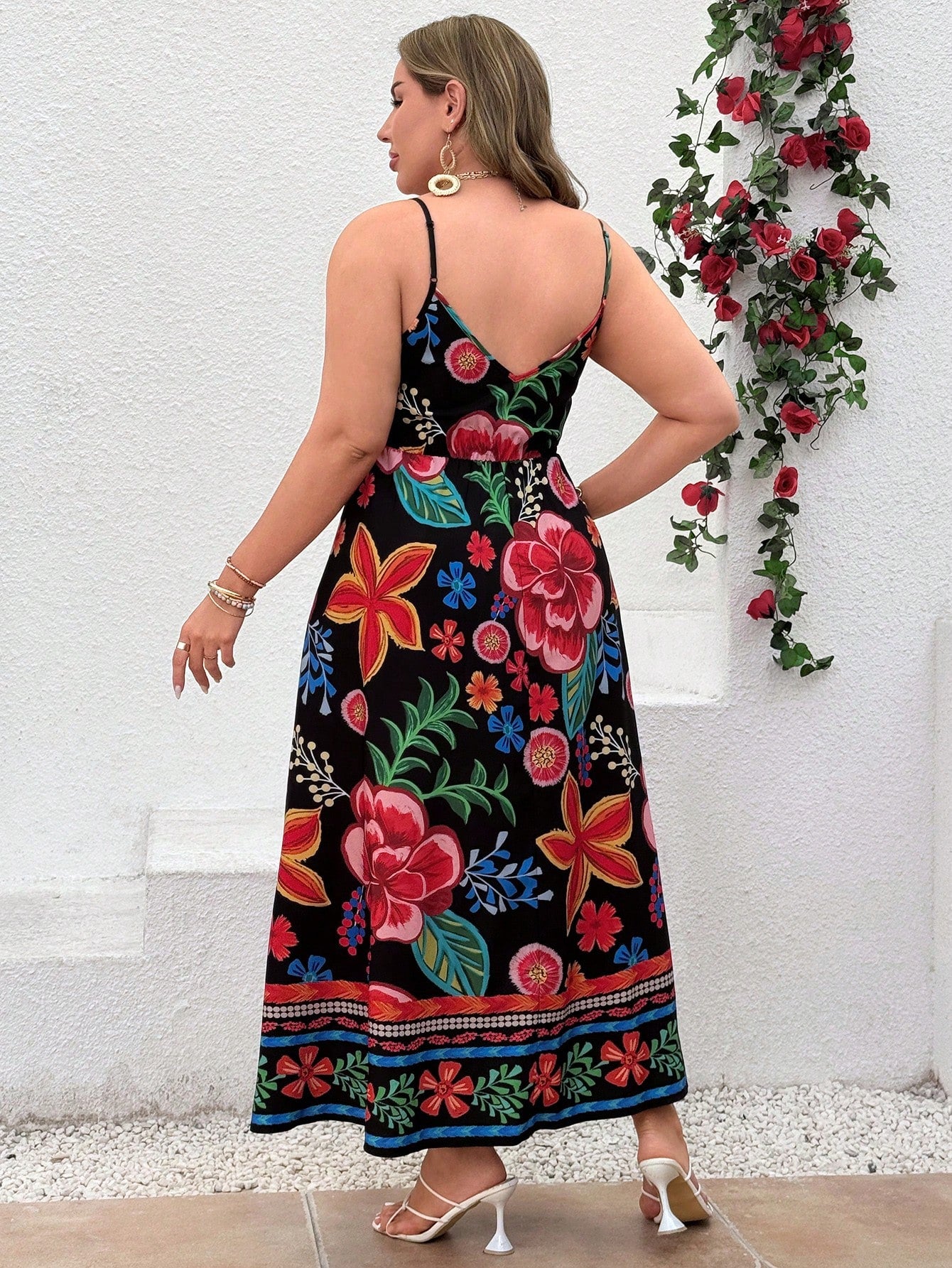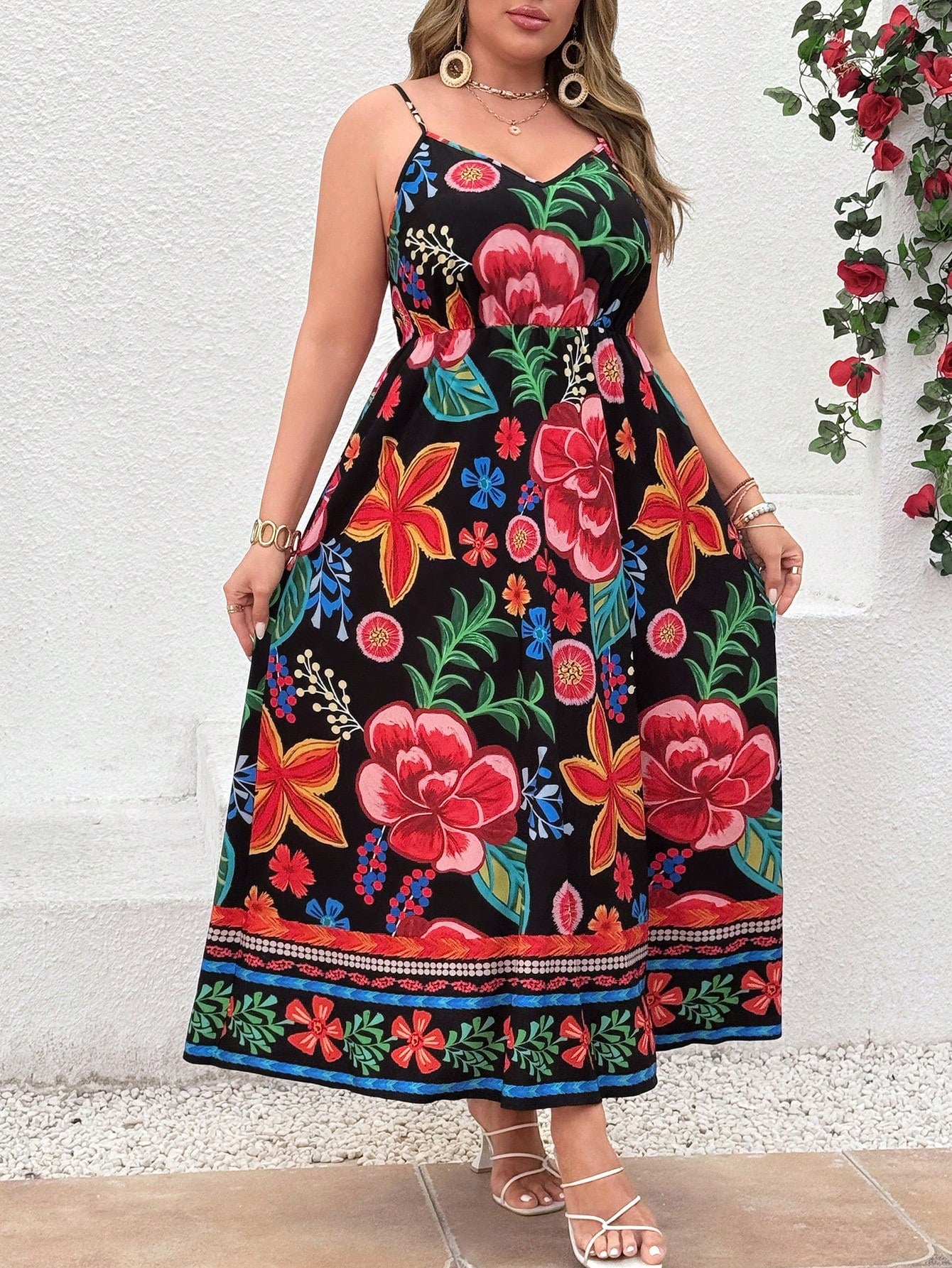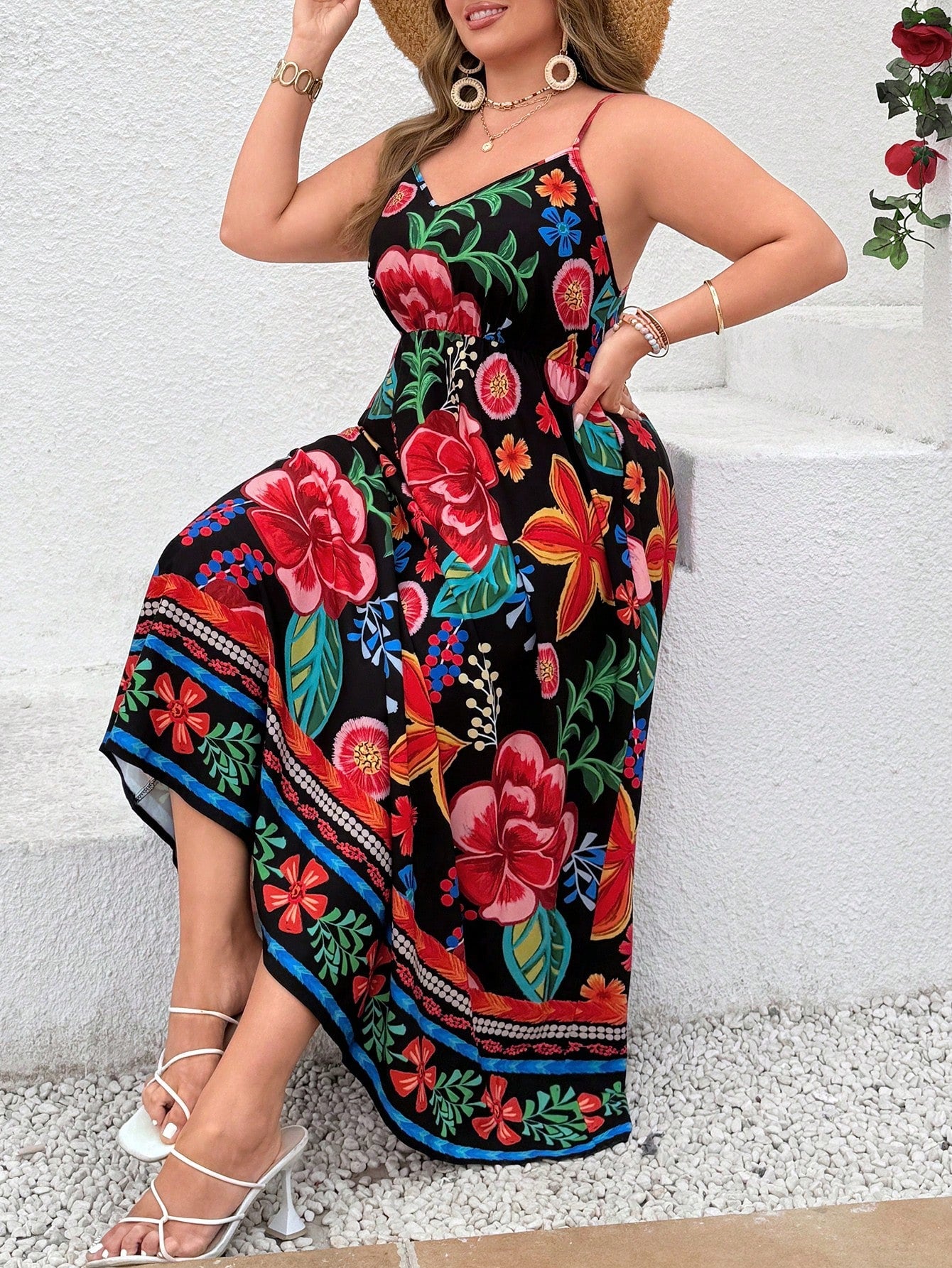 Breezaya Plus Size Floral Print Spaghetti Strap Casual Vacation Dress