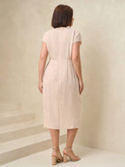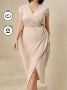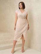 Clasi Women Plus Size White Elastic Knit Ruched Waist Dress, Elegant Daily Casual Business Commute Outfit,