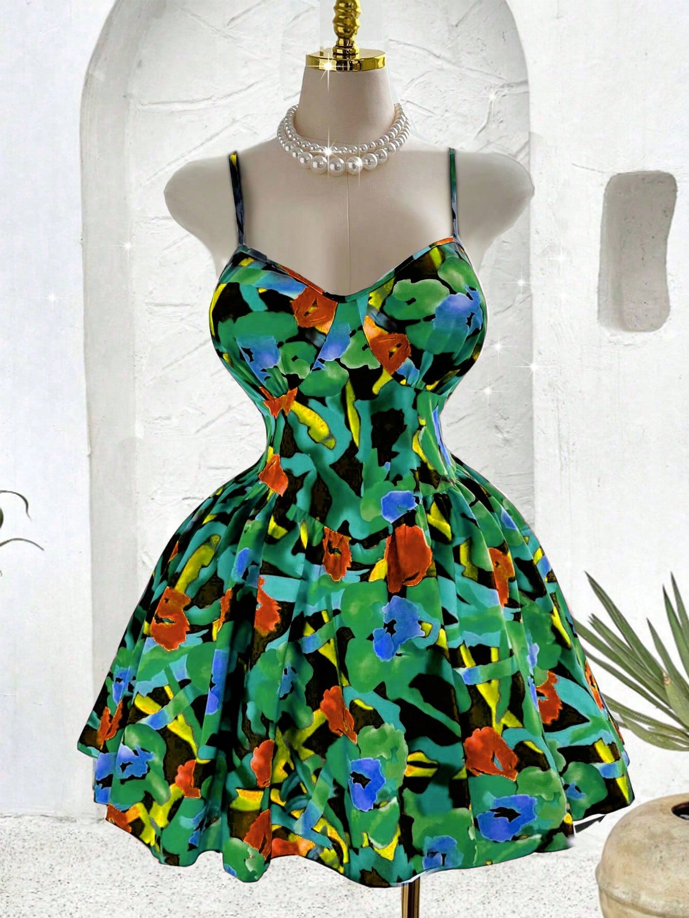 Flirla Casual Plus Size Women Digital Print Elastic Cinched Waist Strap Dress, Fashion Design, Versatile,
