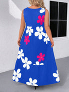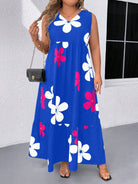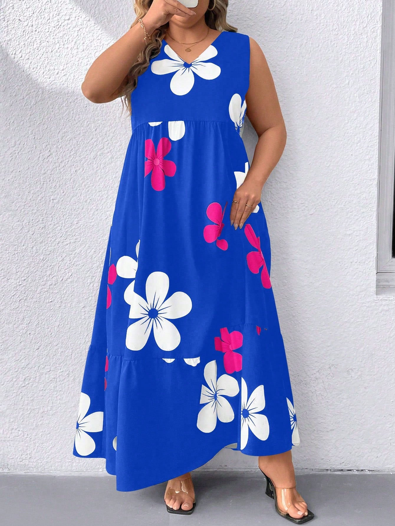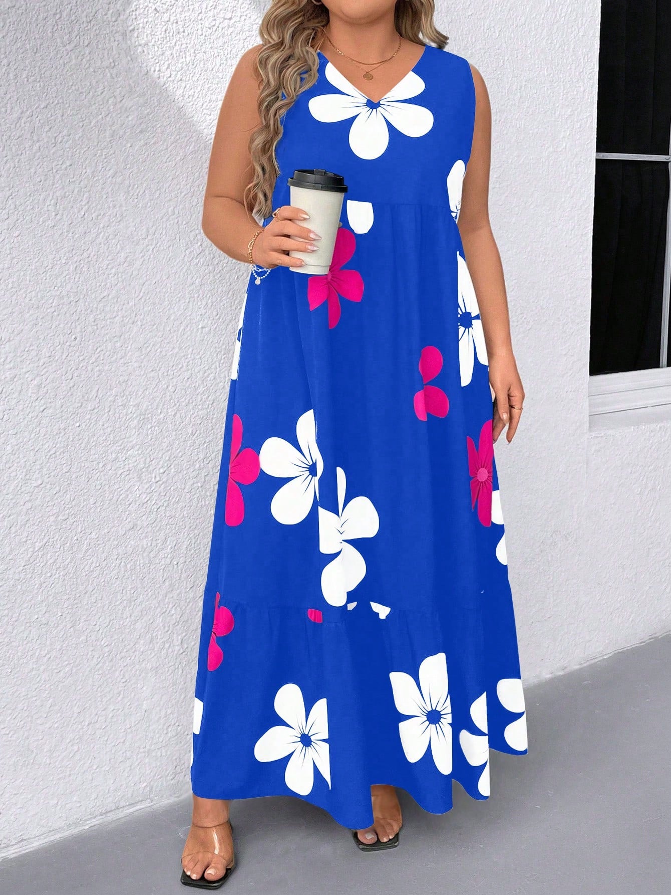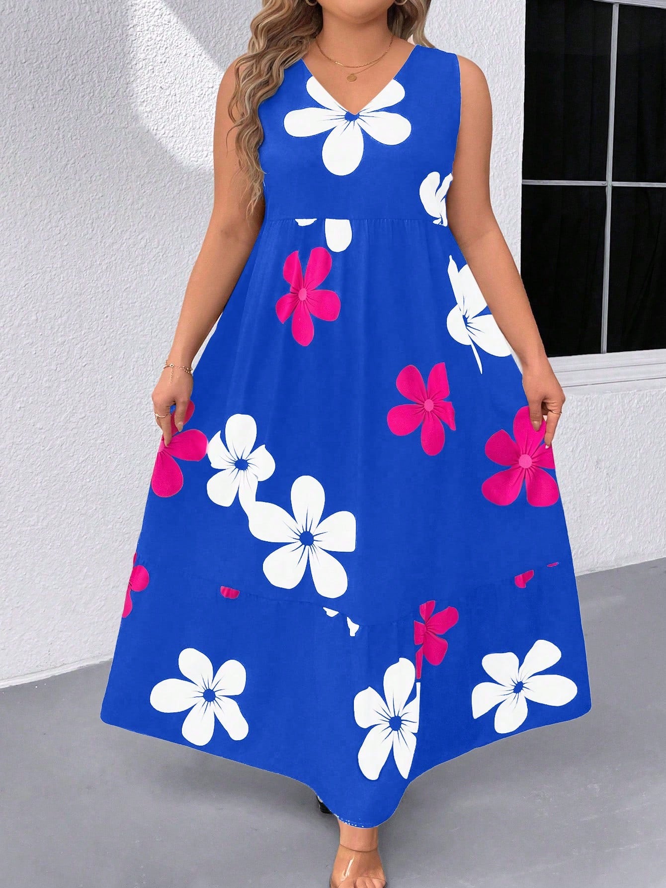 LUNE Elegant Floral Print V-Neck Sleeveless Dress, Comfortable Casual Commuting & Vacation Style, Fashion