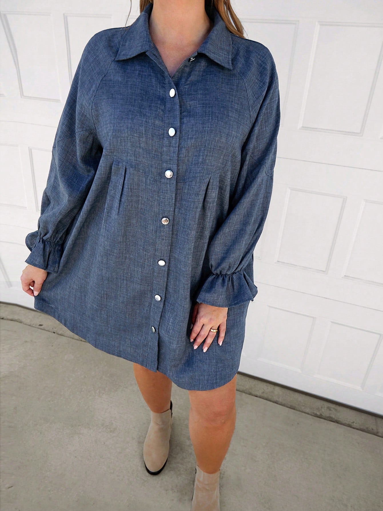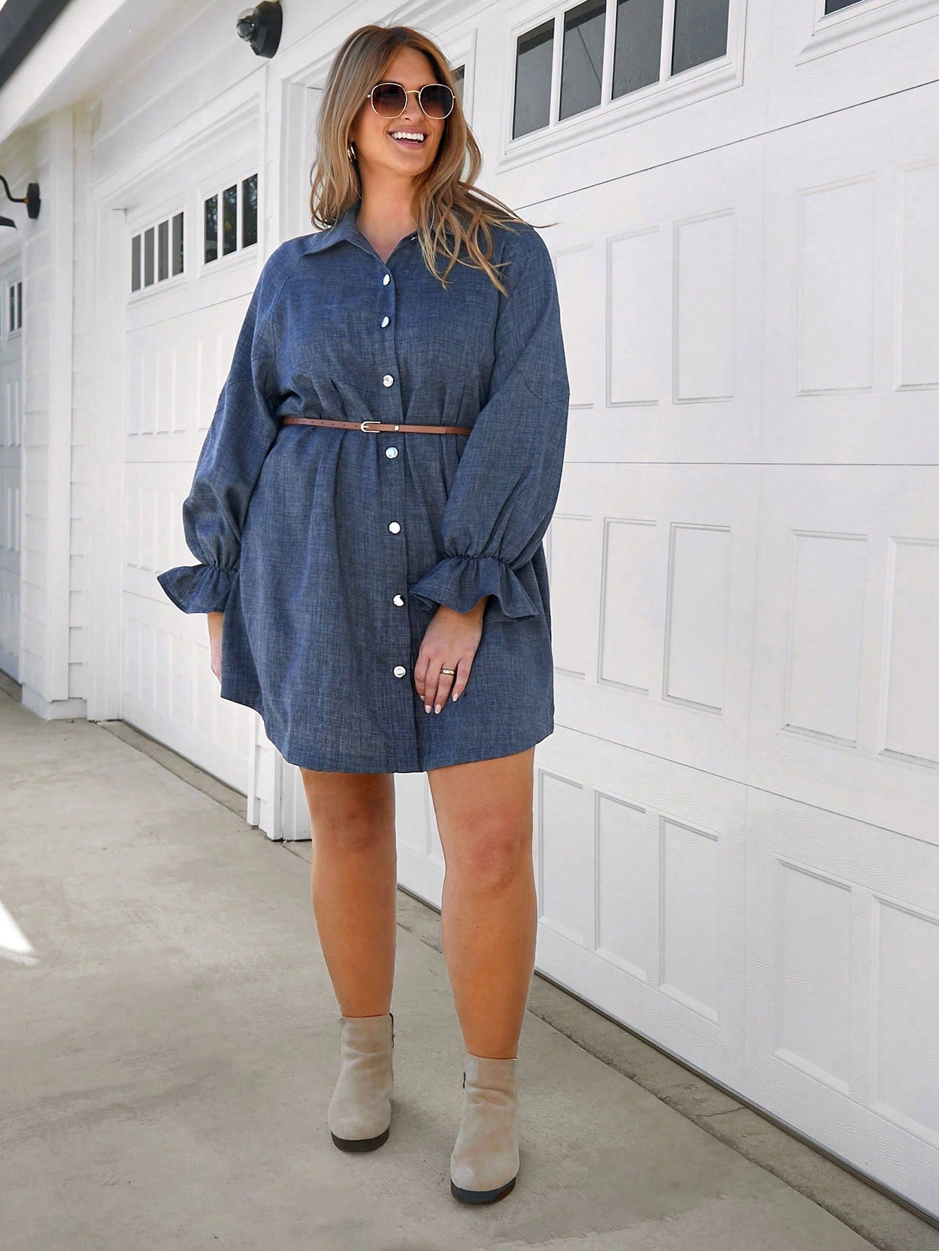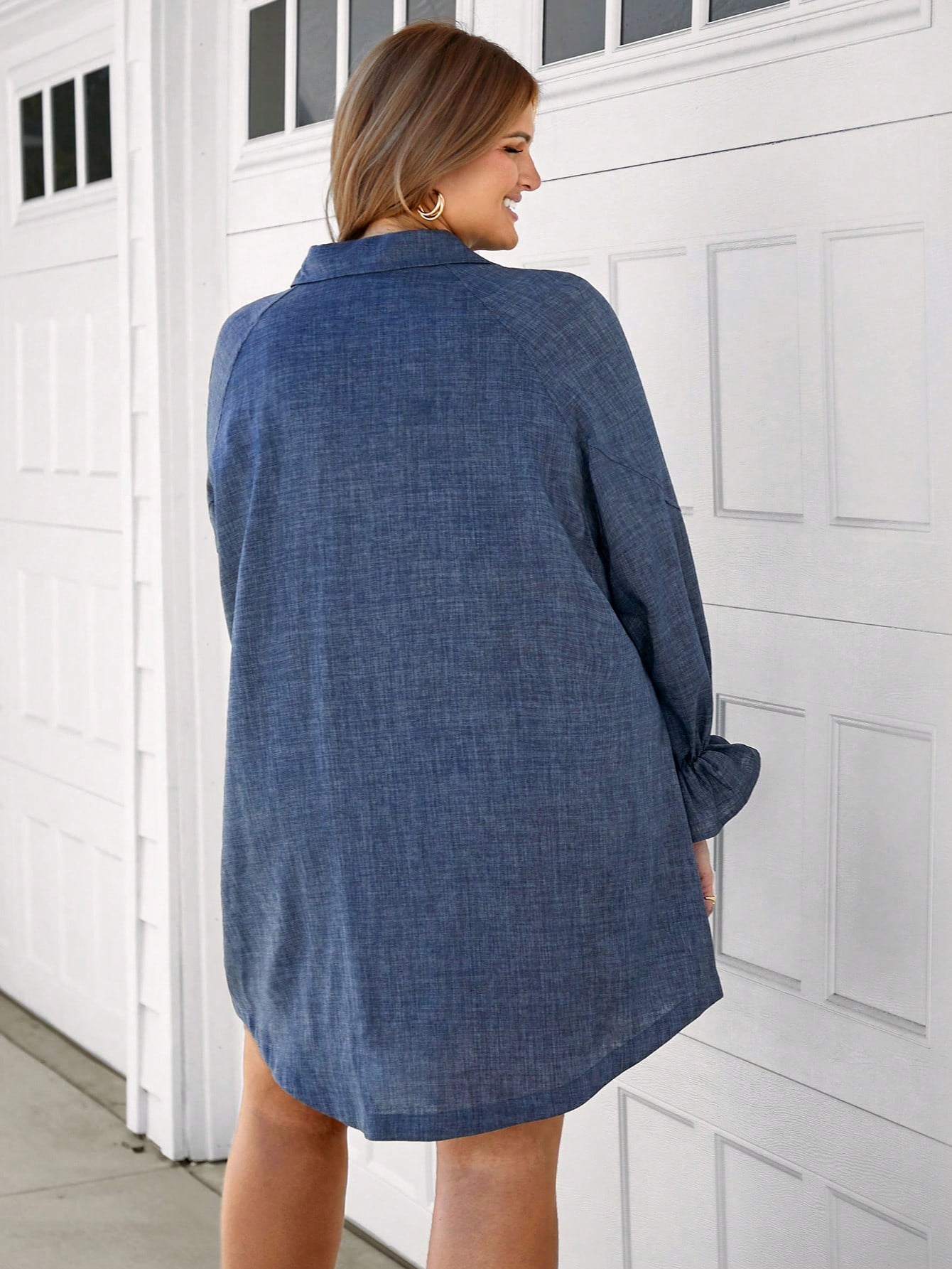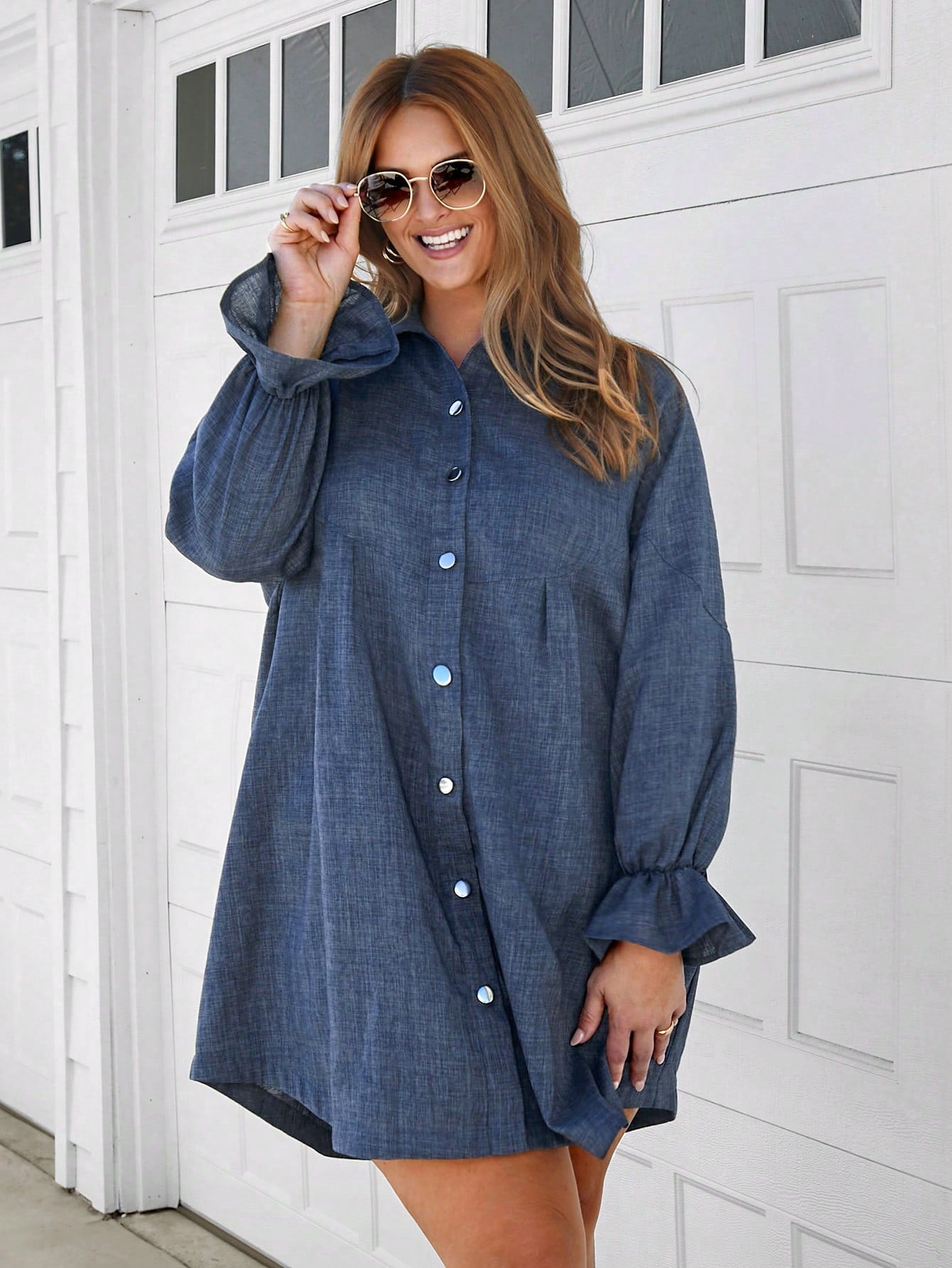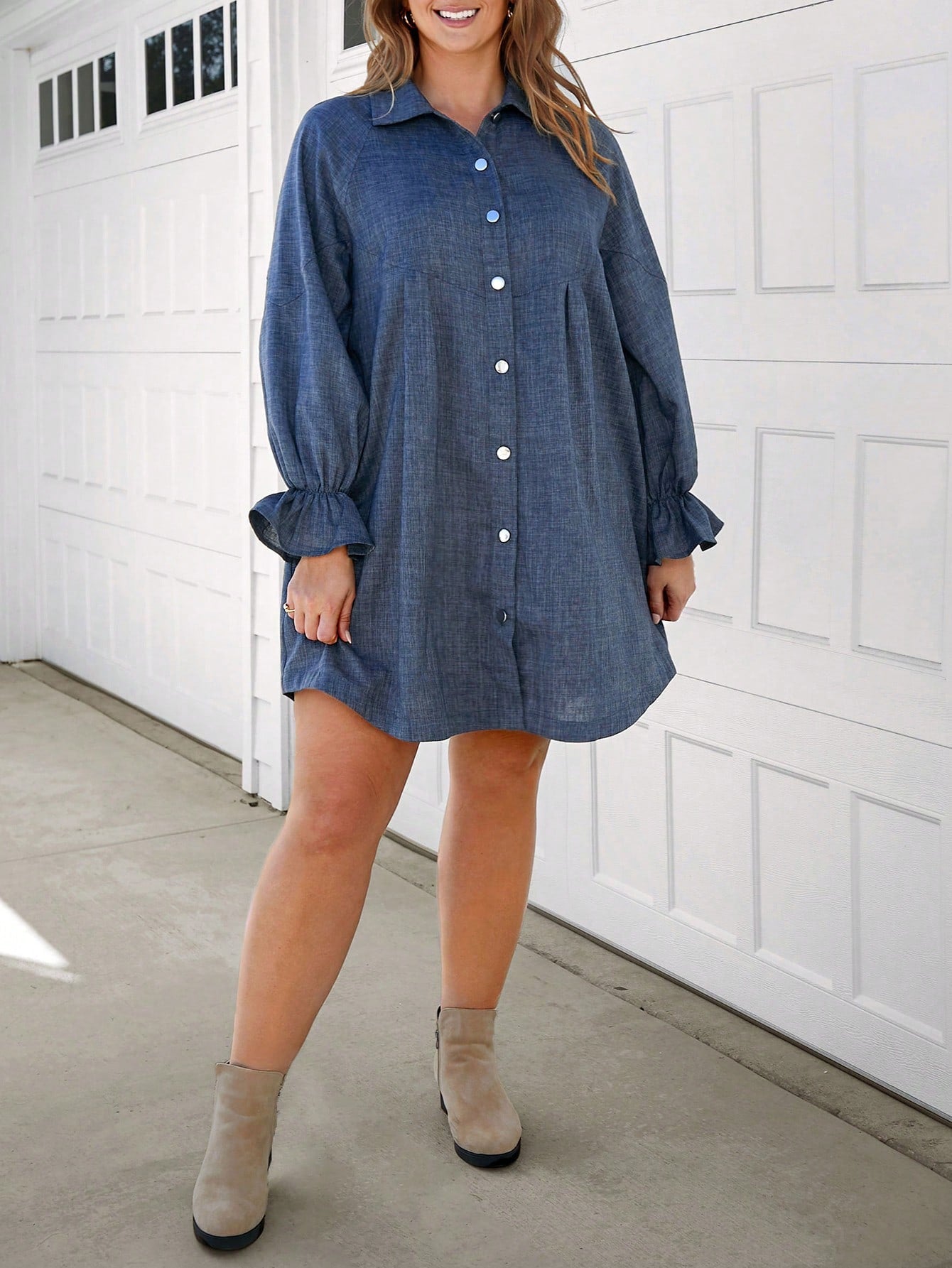 LUNE Fabric Split Topstitch Collared Plus Size Midi Dress Thanksgiving Outfit Women New Years Women Outfit