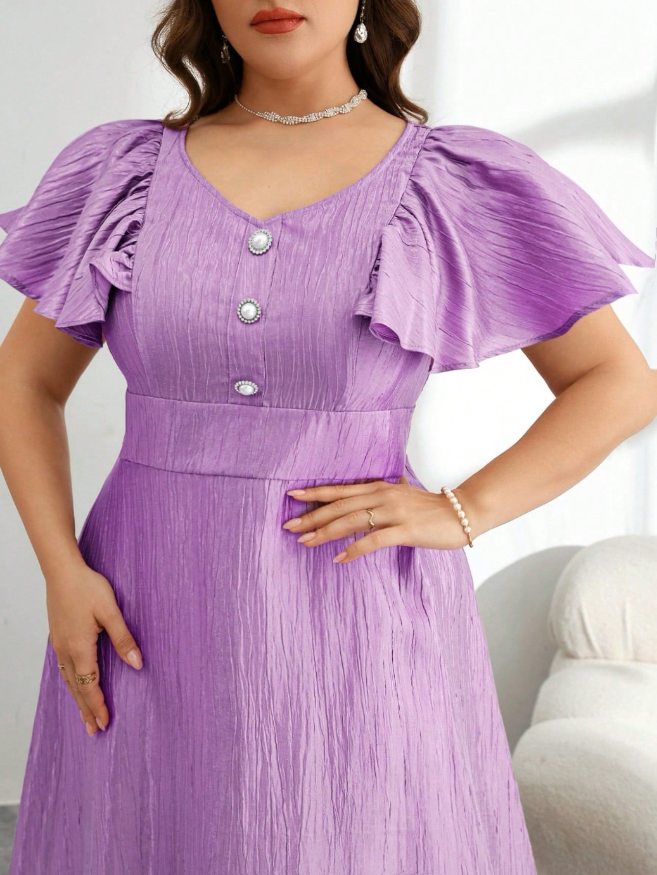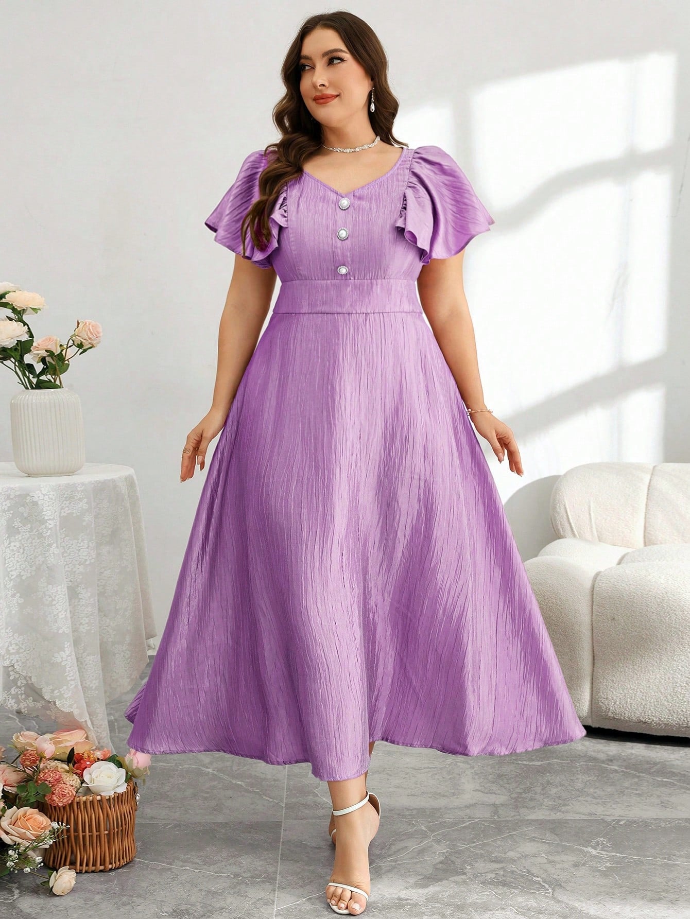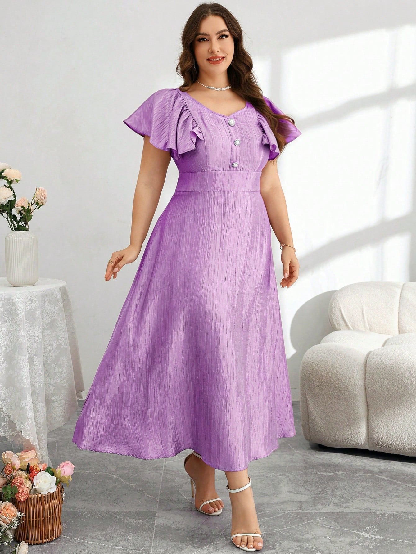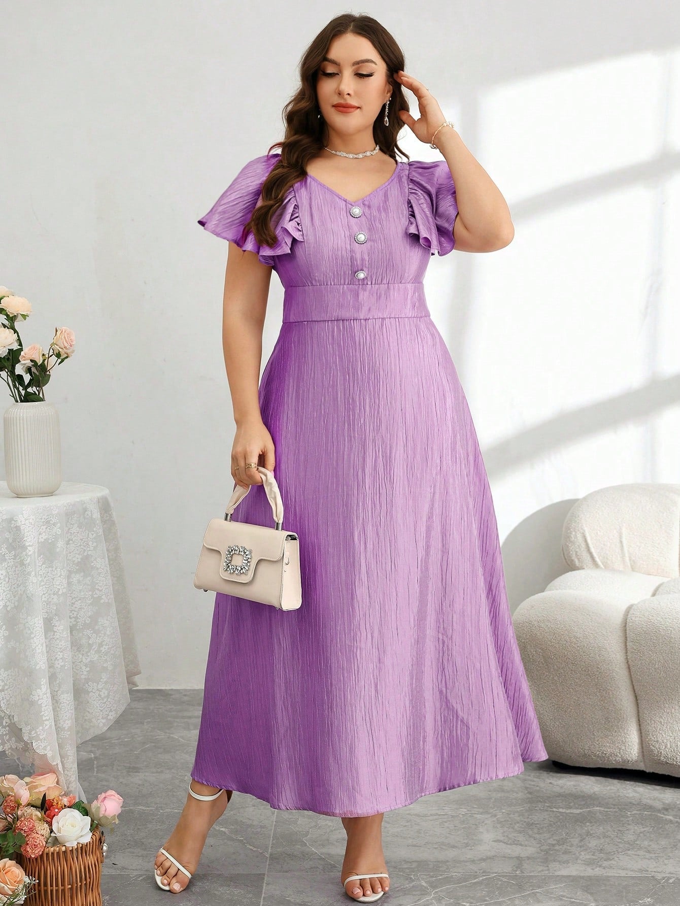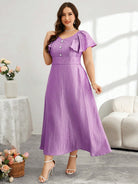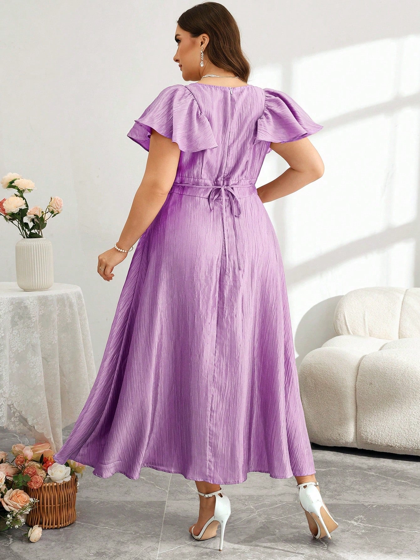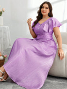 Modelyn Plus Size Elegant Women Waist Cinched Chiffon Textured Summer Long Dress
