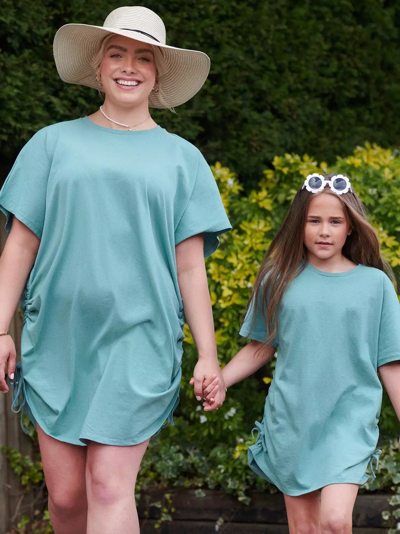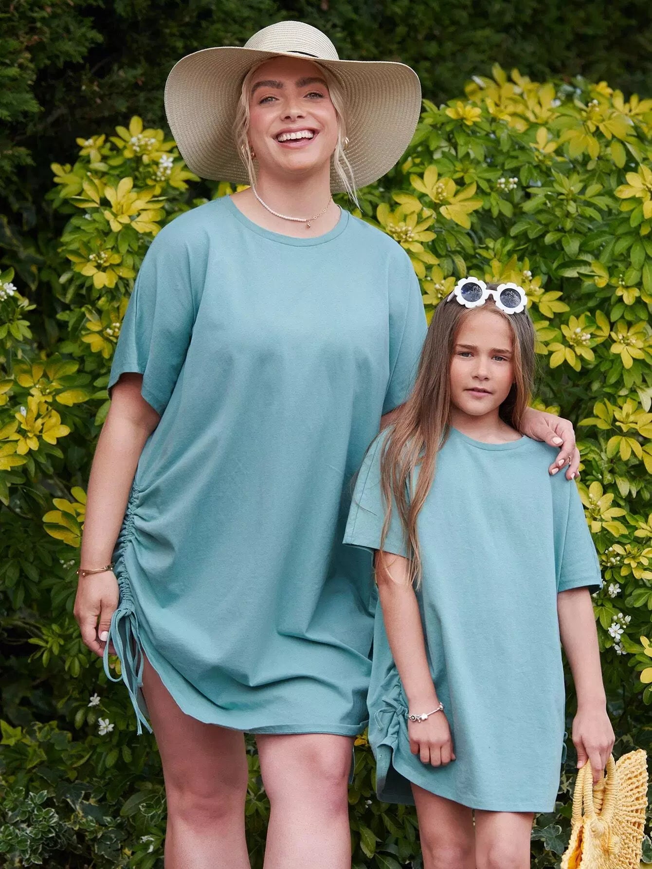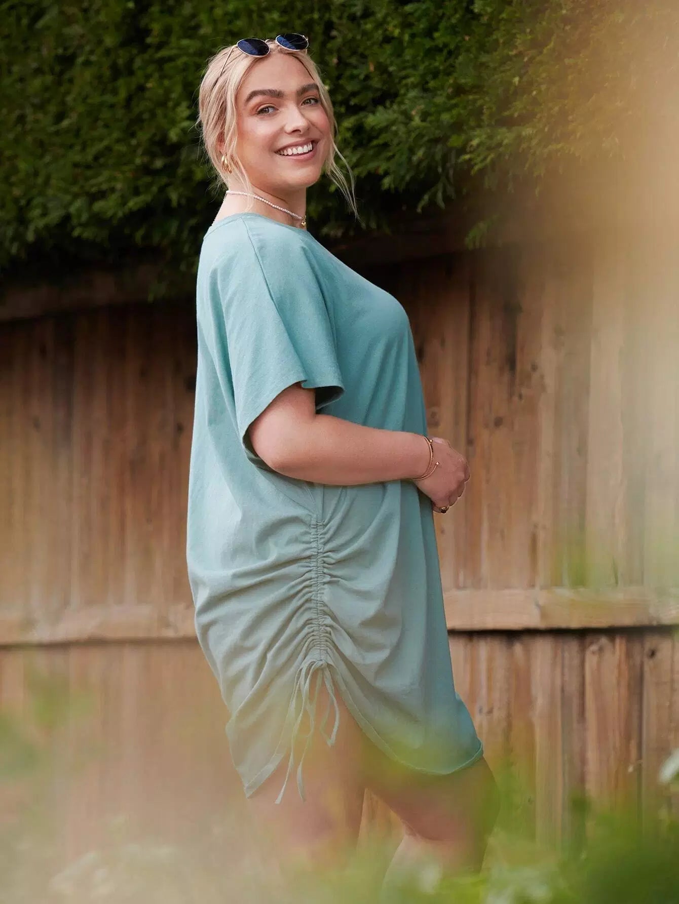 Plus 1PC Batwing Sleeve Drawstring Ruched Side Dress