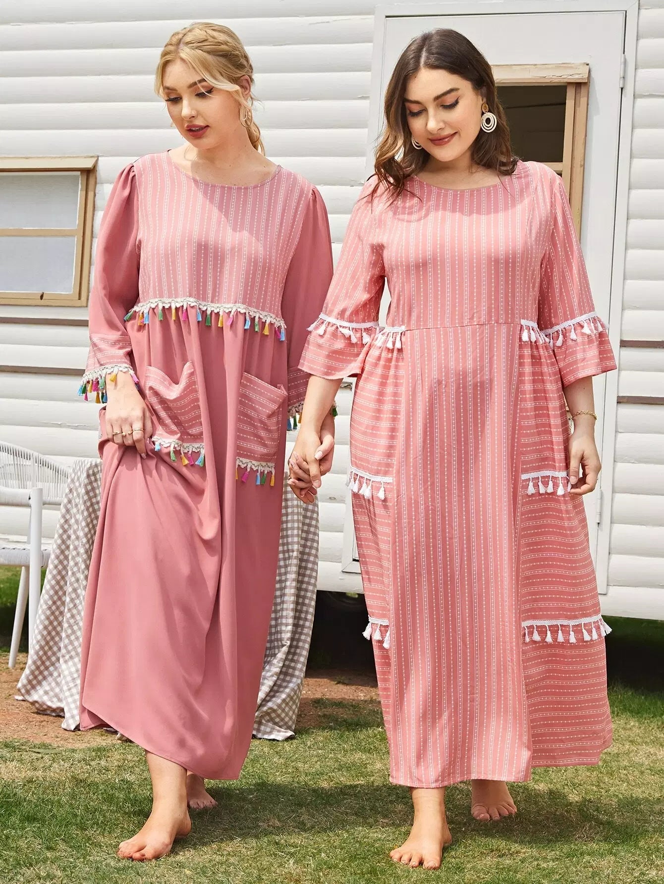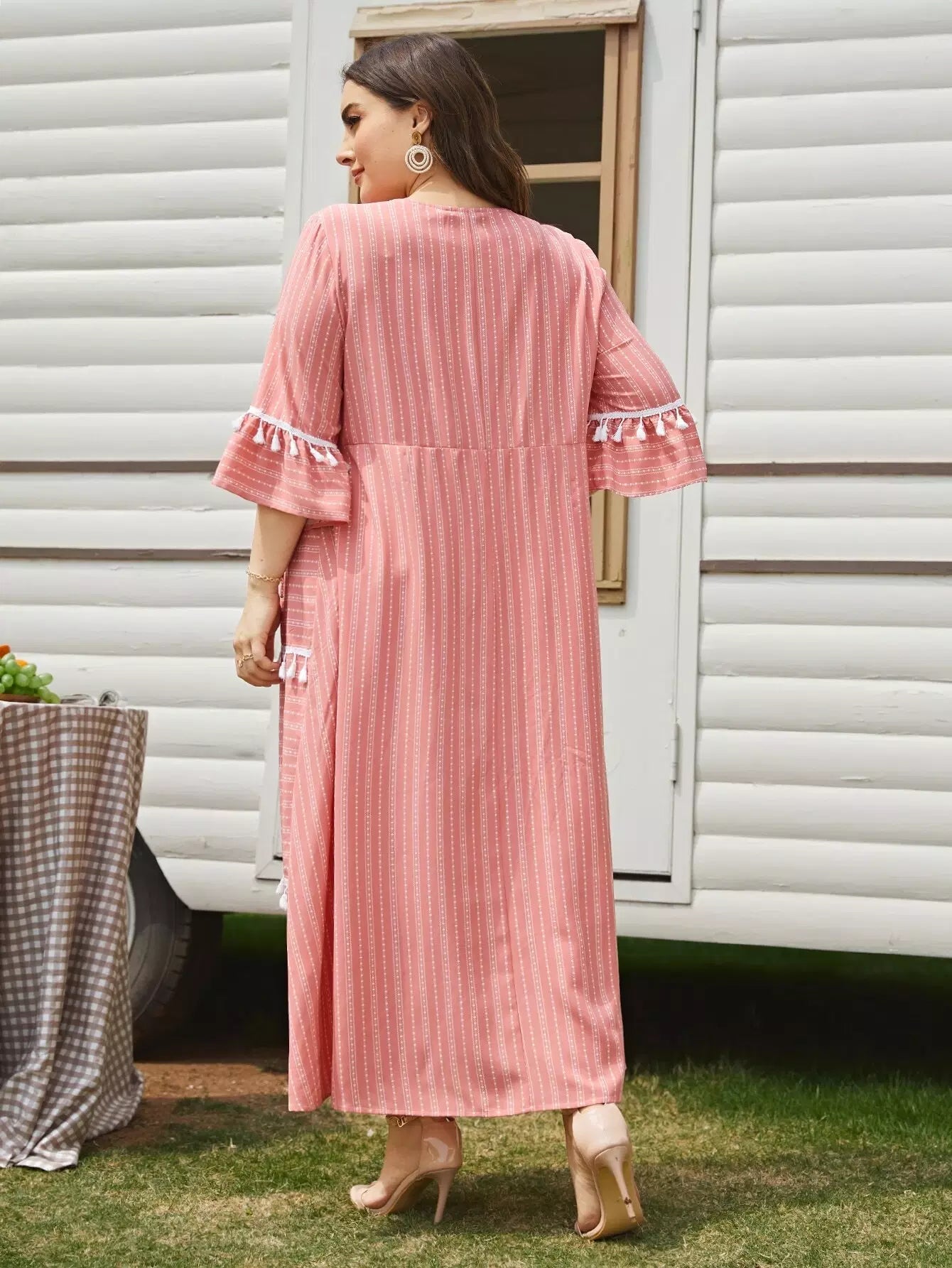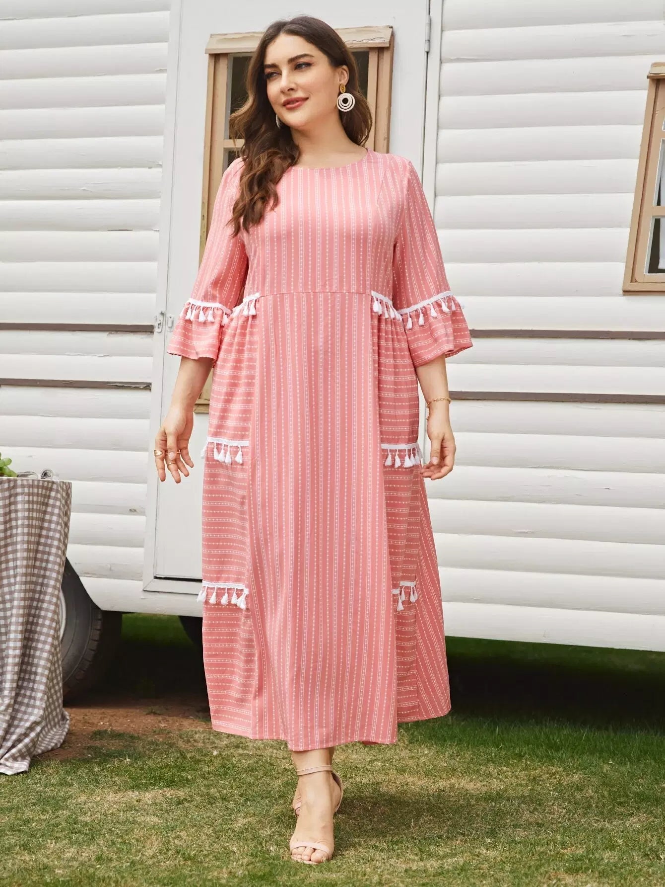 Plus 1PC Flounce Sleeve Contrast Tassel Detail Dress