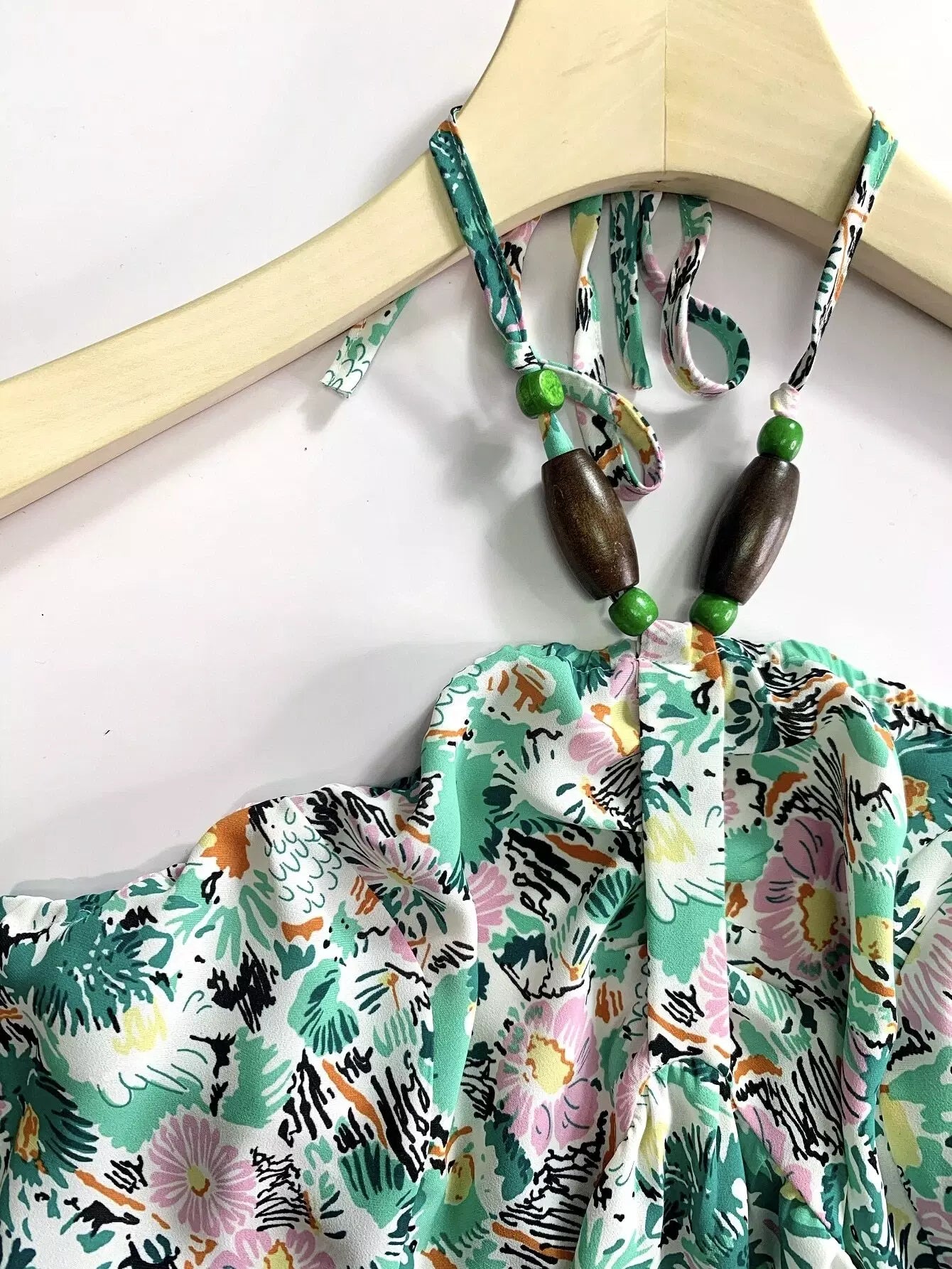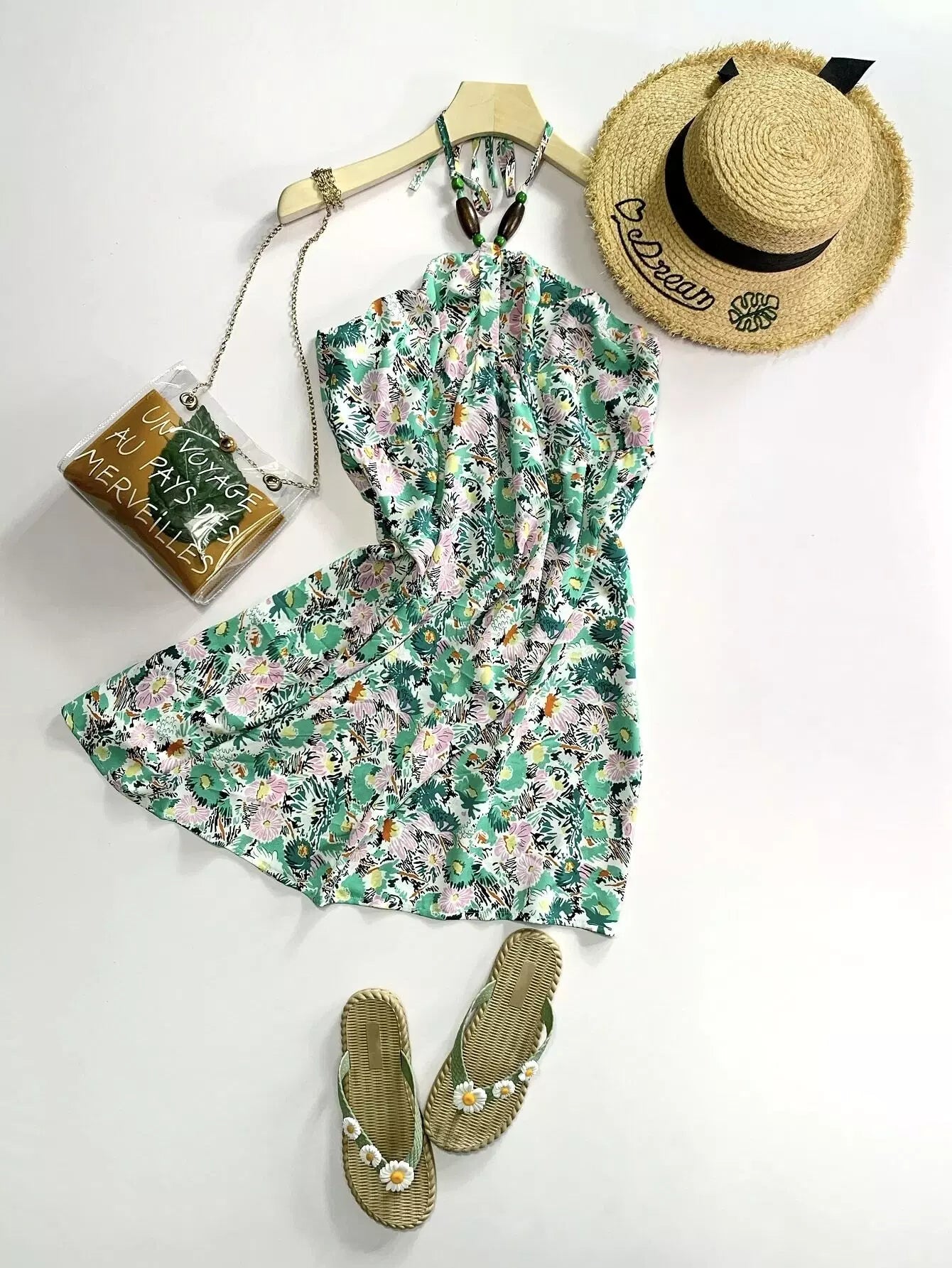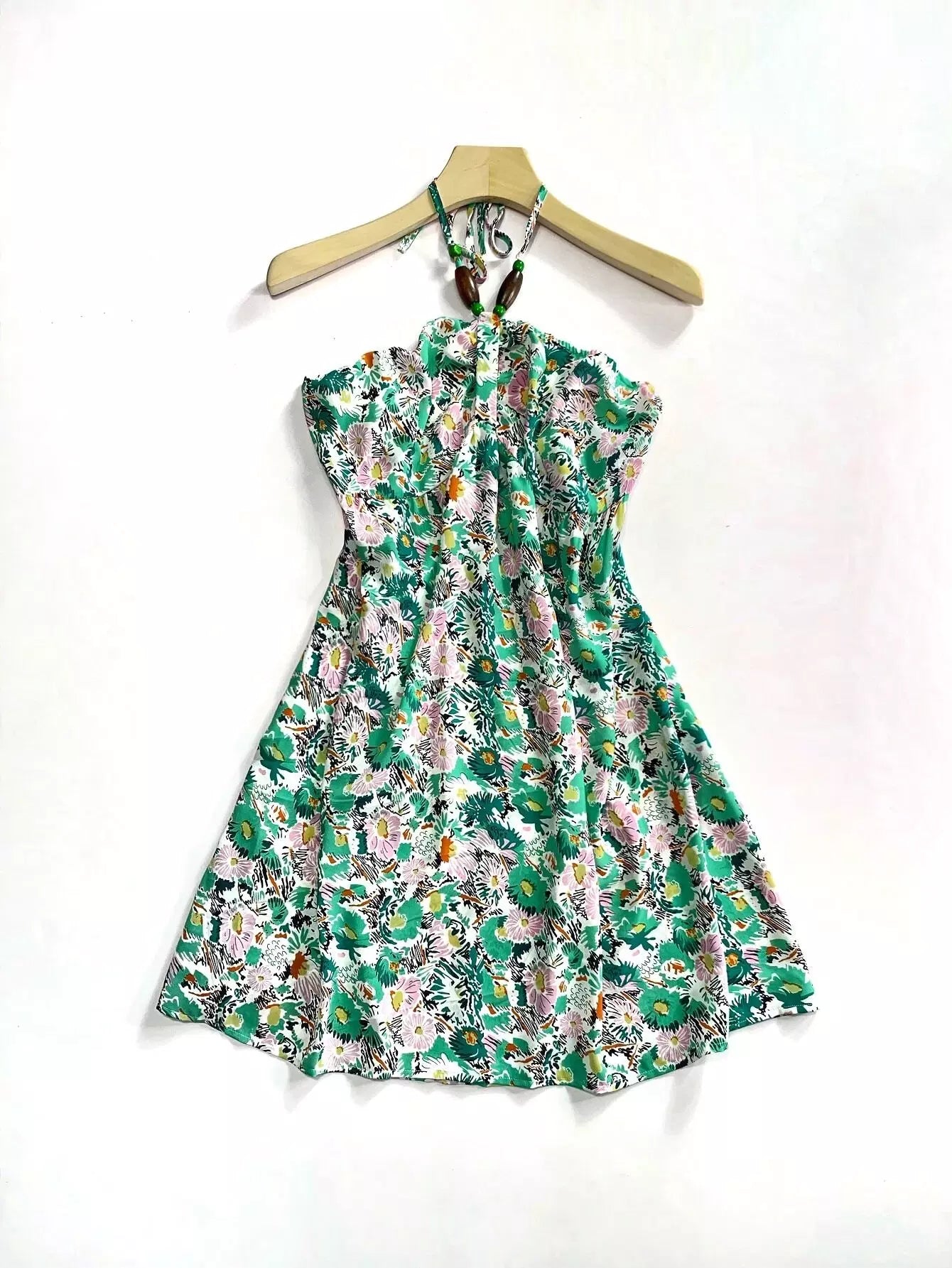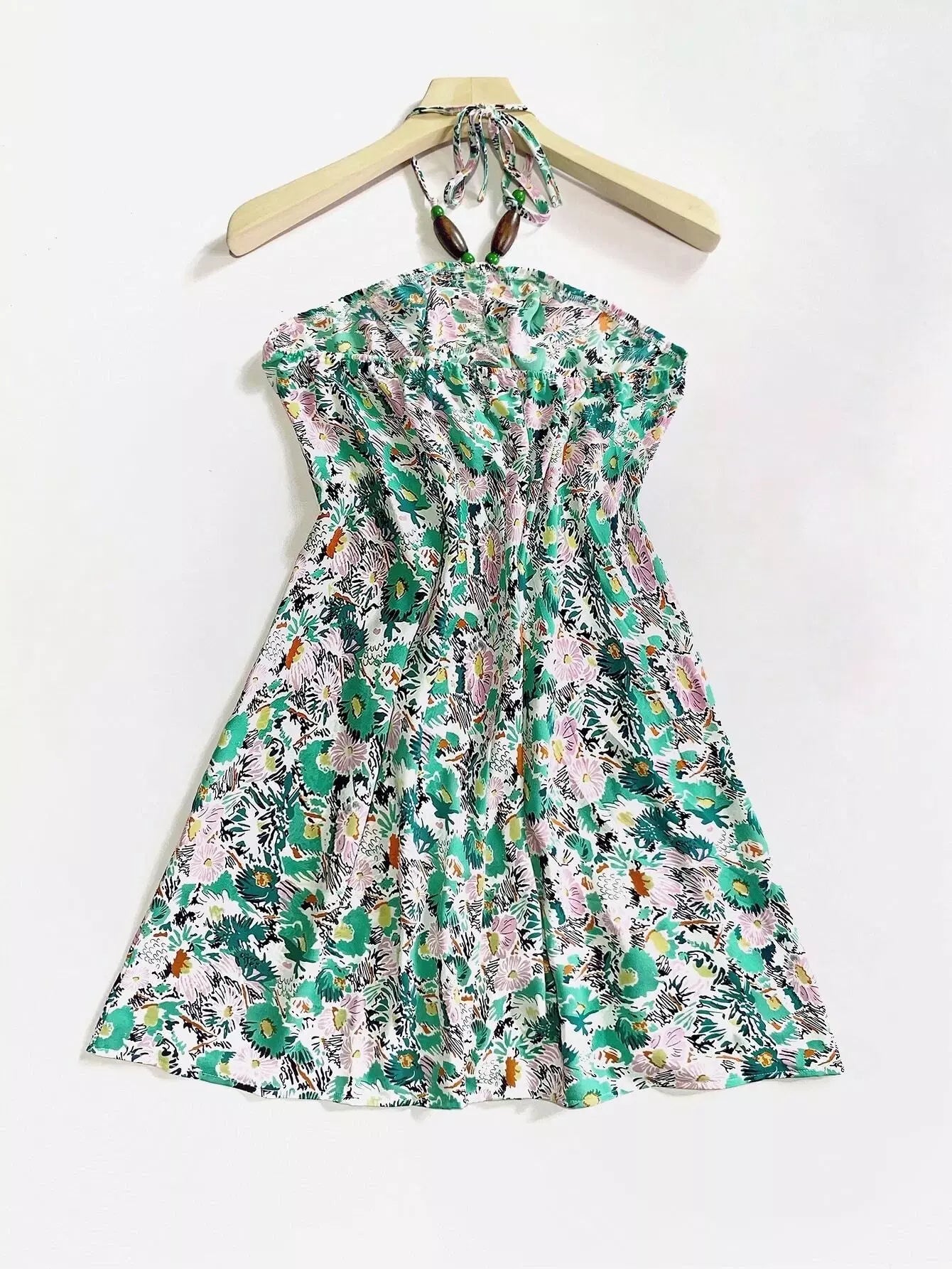 Plus Allover Floral Backless Halter Dress