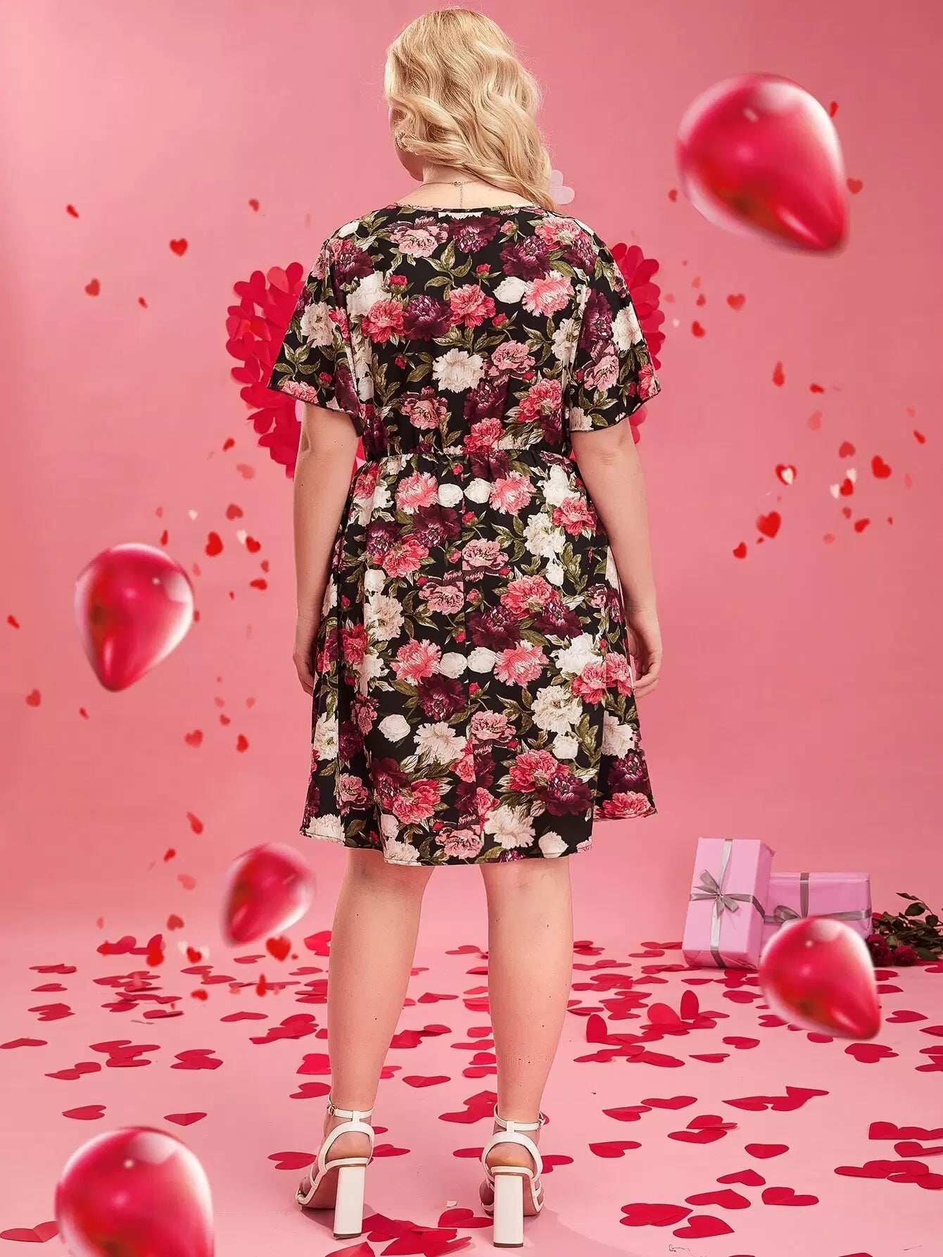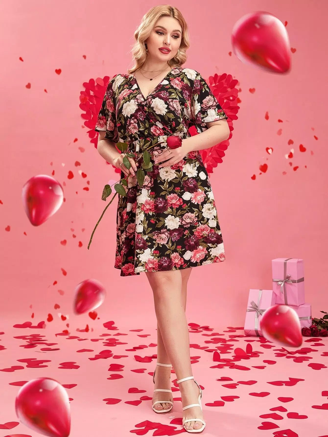 Plus Allover Floral Print Butterfly Sleeve Dress