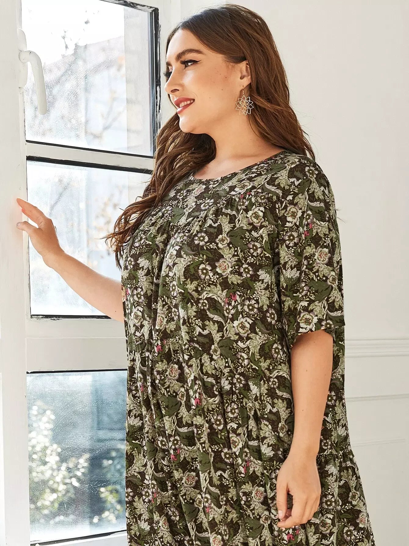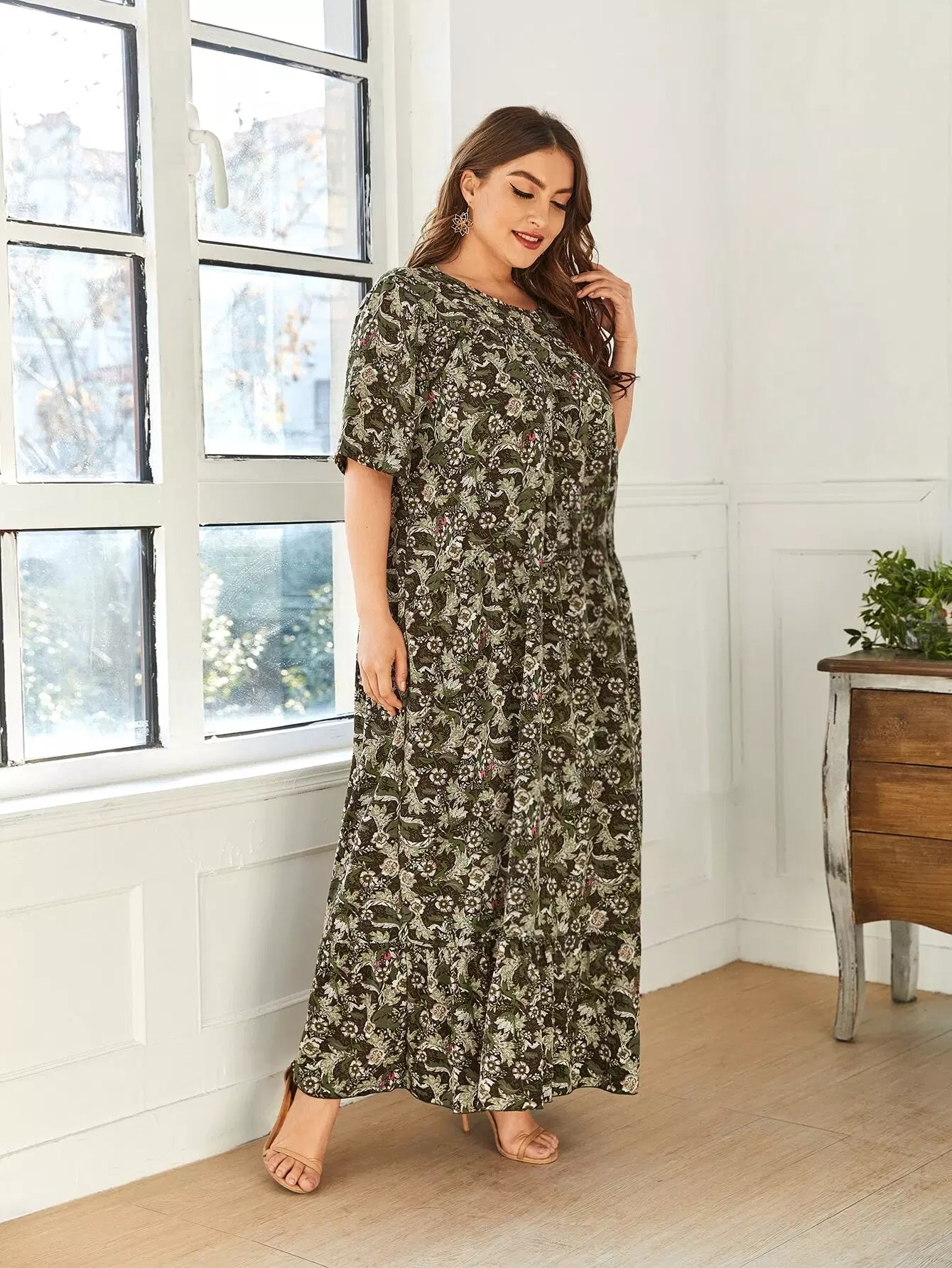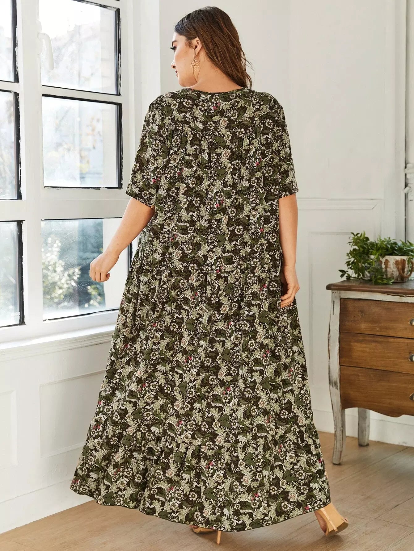 Women - Plus Allover Floral Print Ruffle Hem Dress
