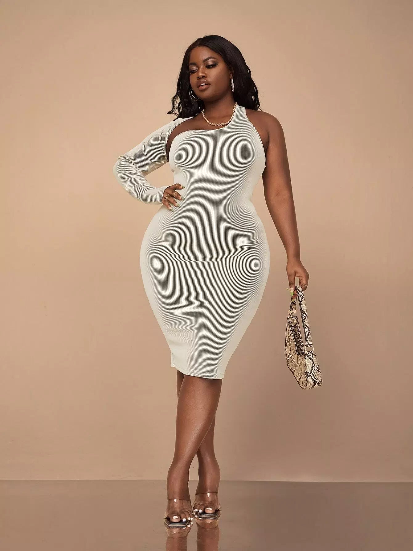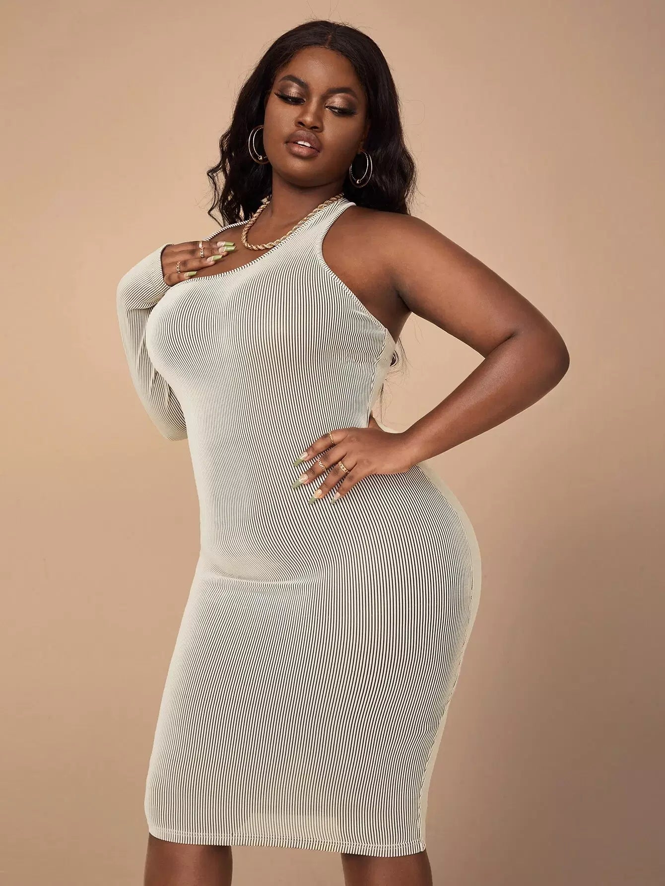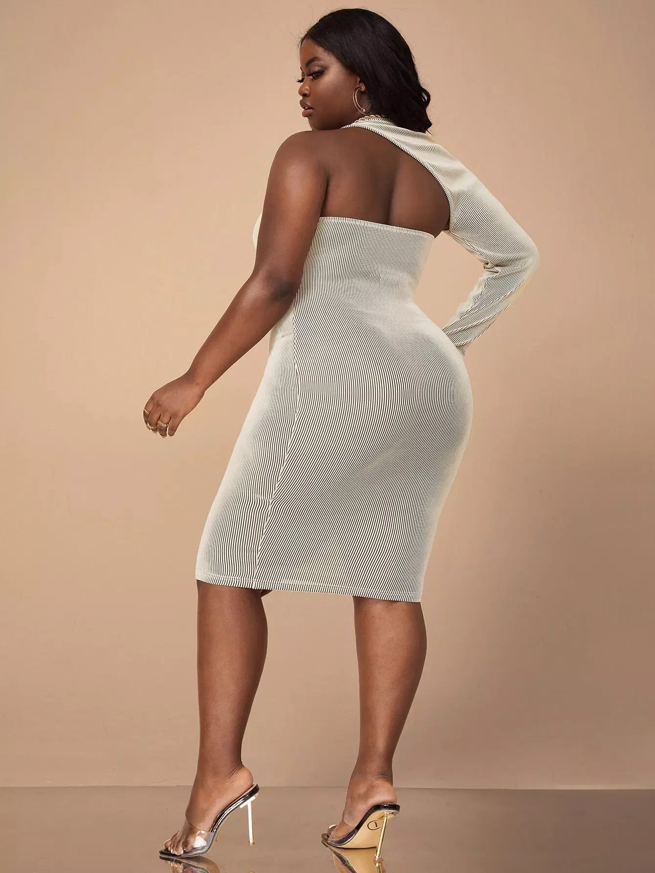 Plus Asymmetrical Neck Bodycon Dress