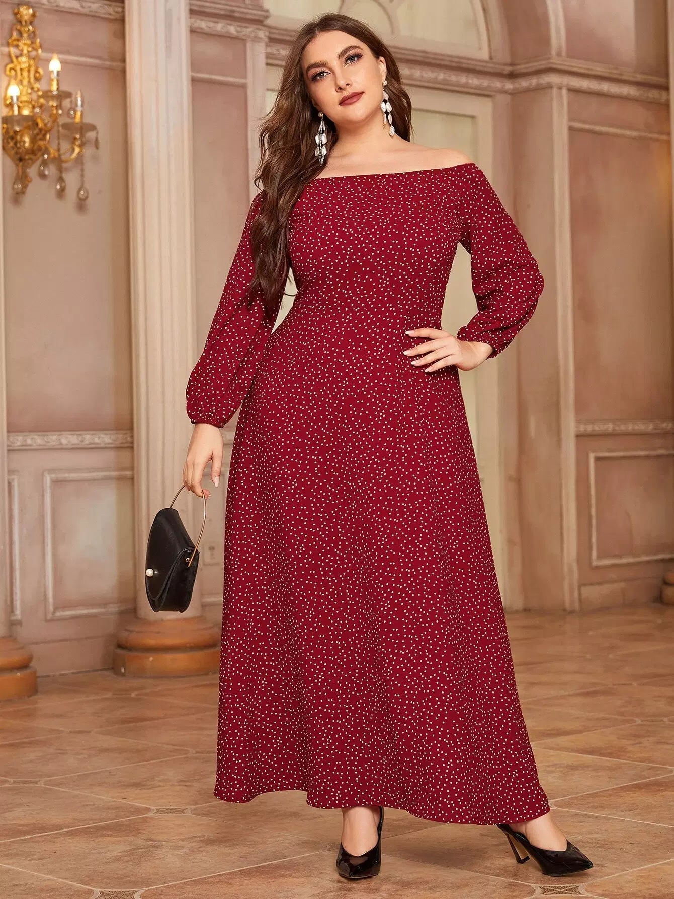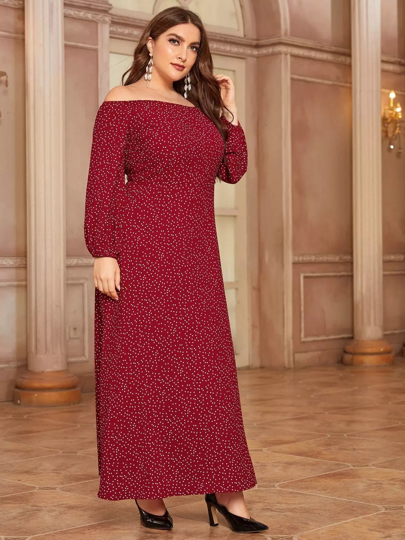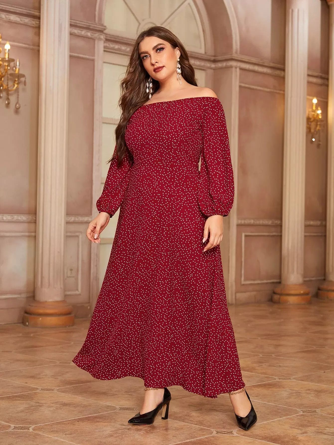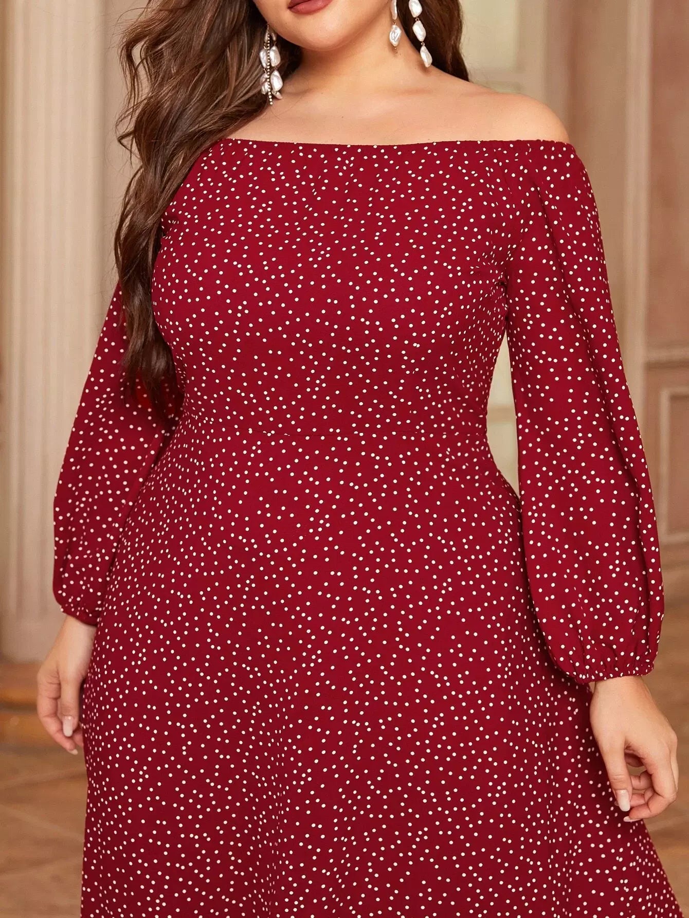 Women - Plus Bardot Polka Dot A-line Dress