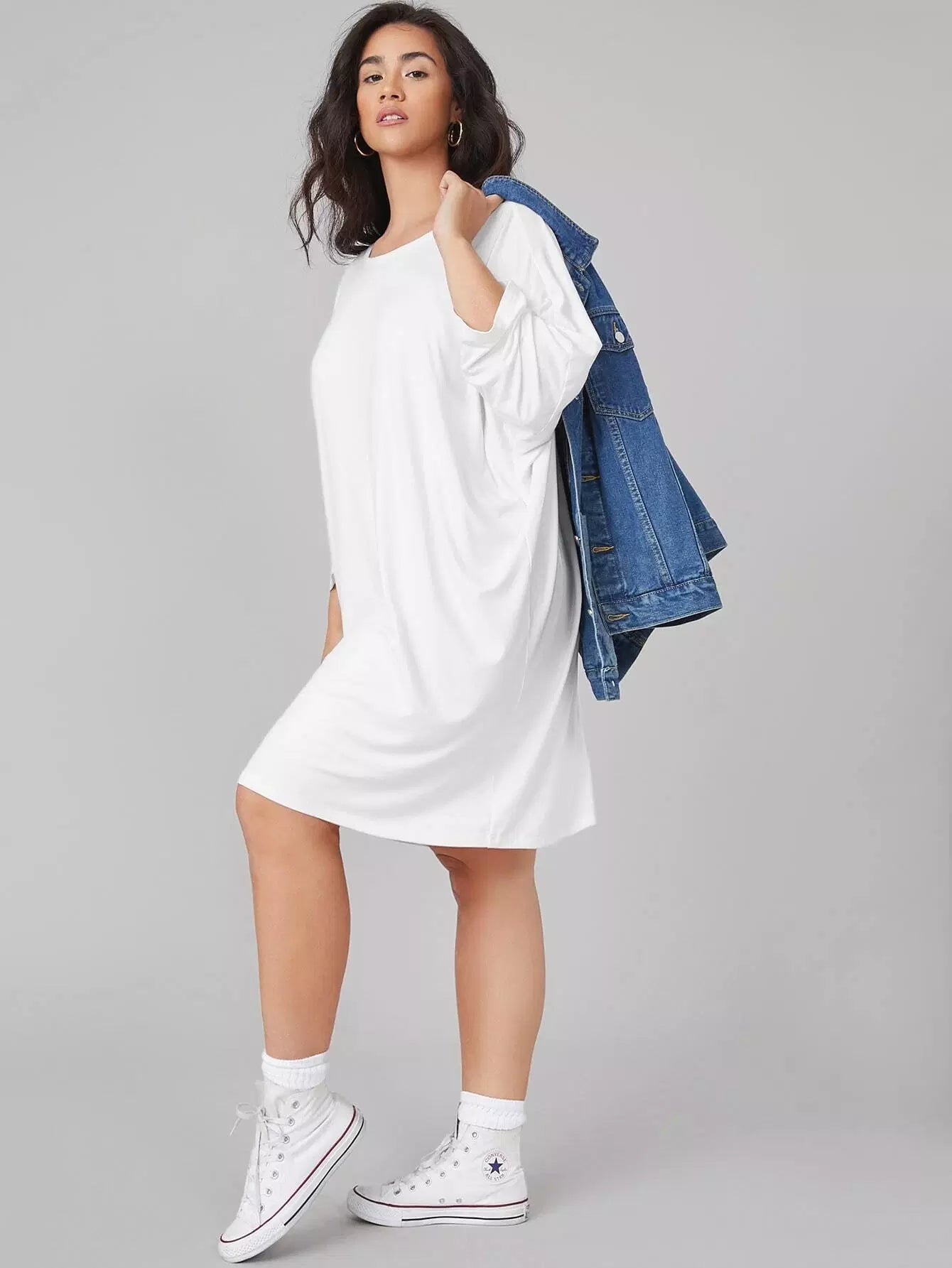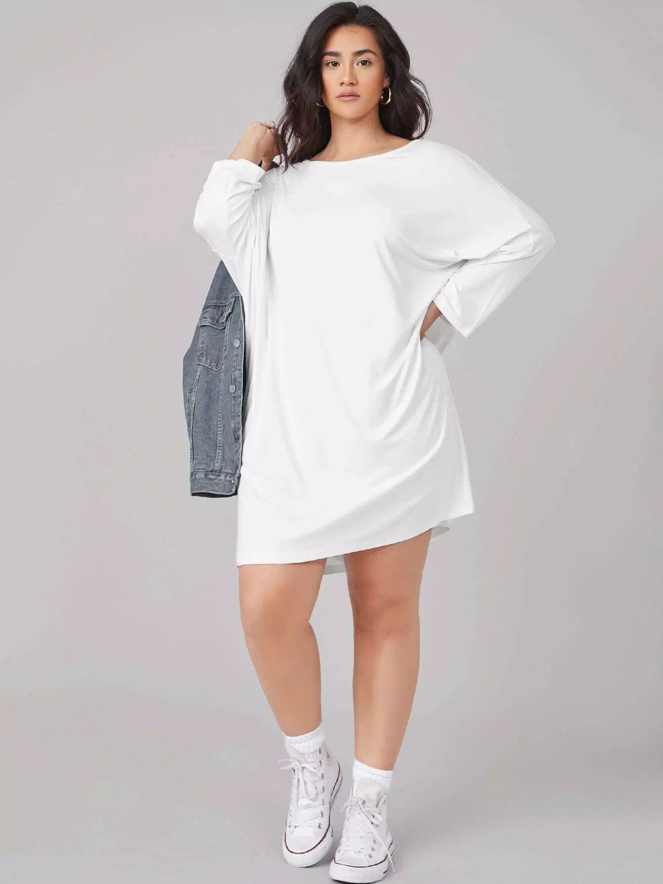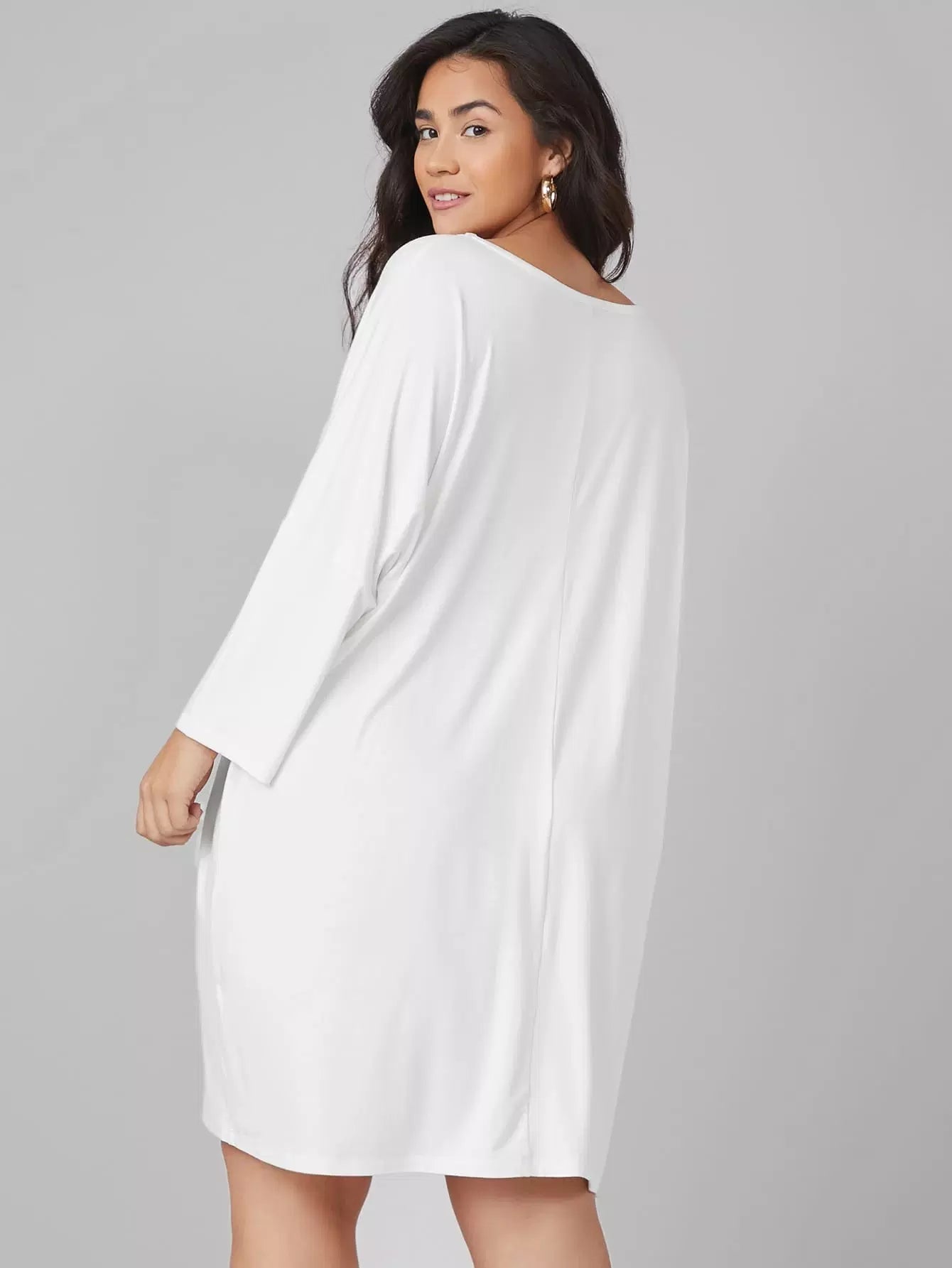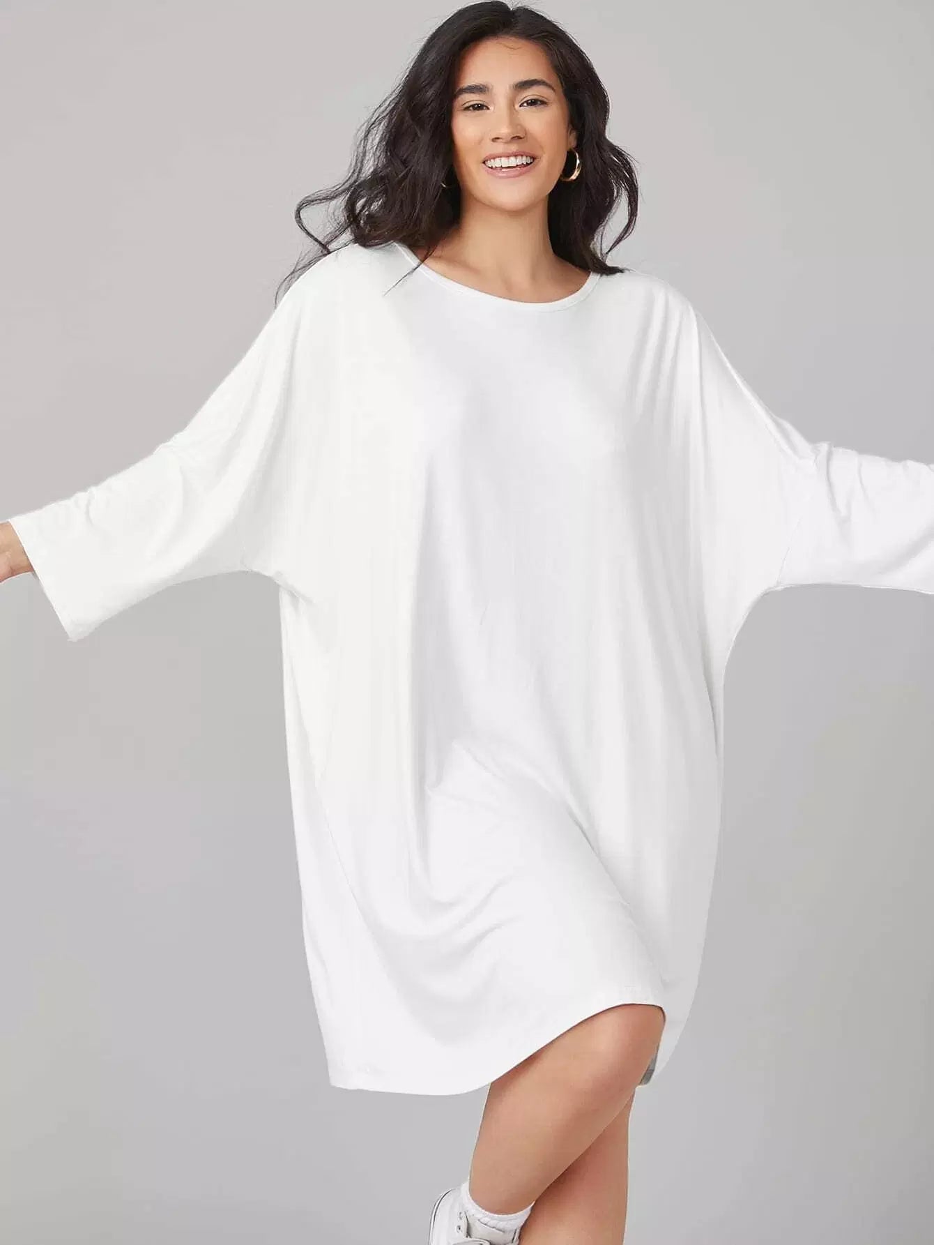 Plus Batwing Sleeve Solid Tee Dress