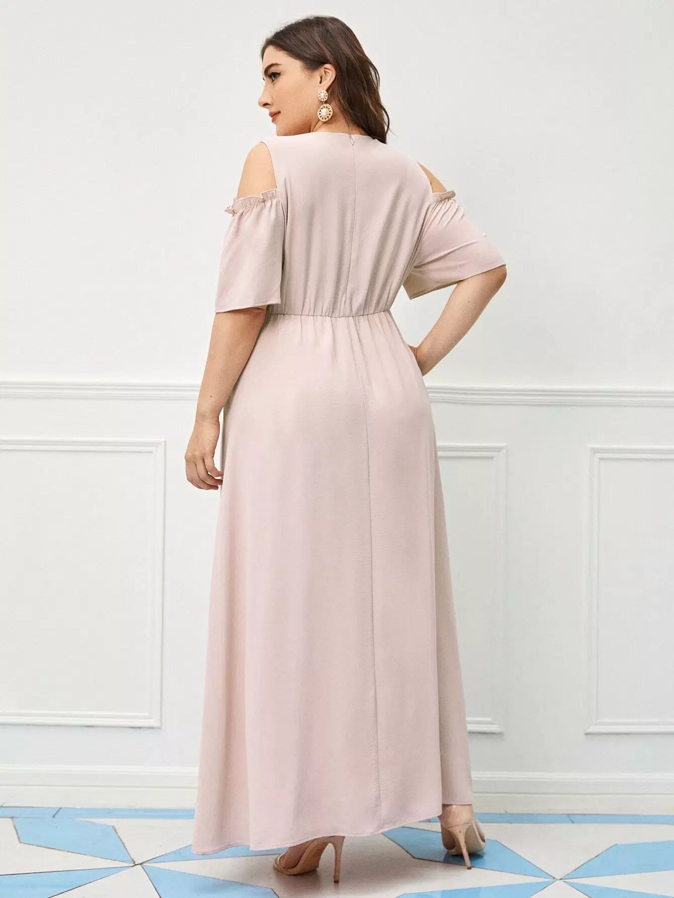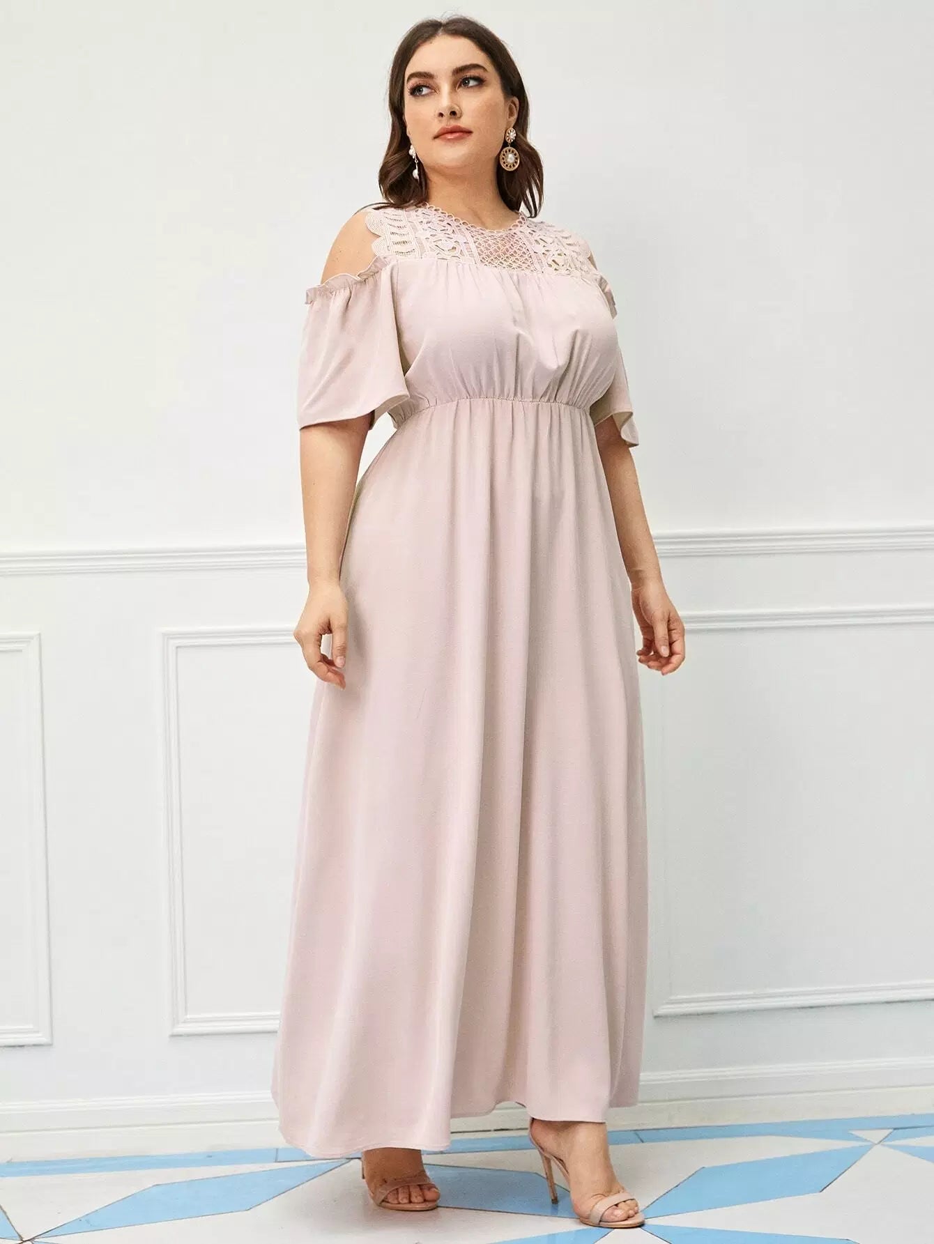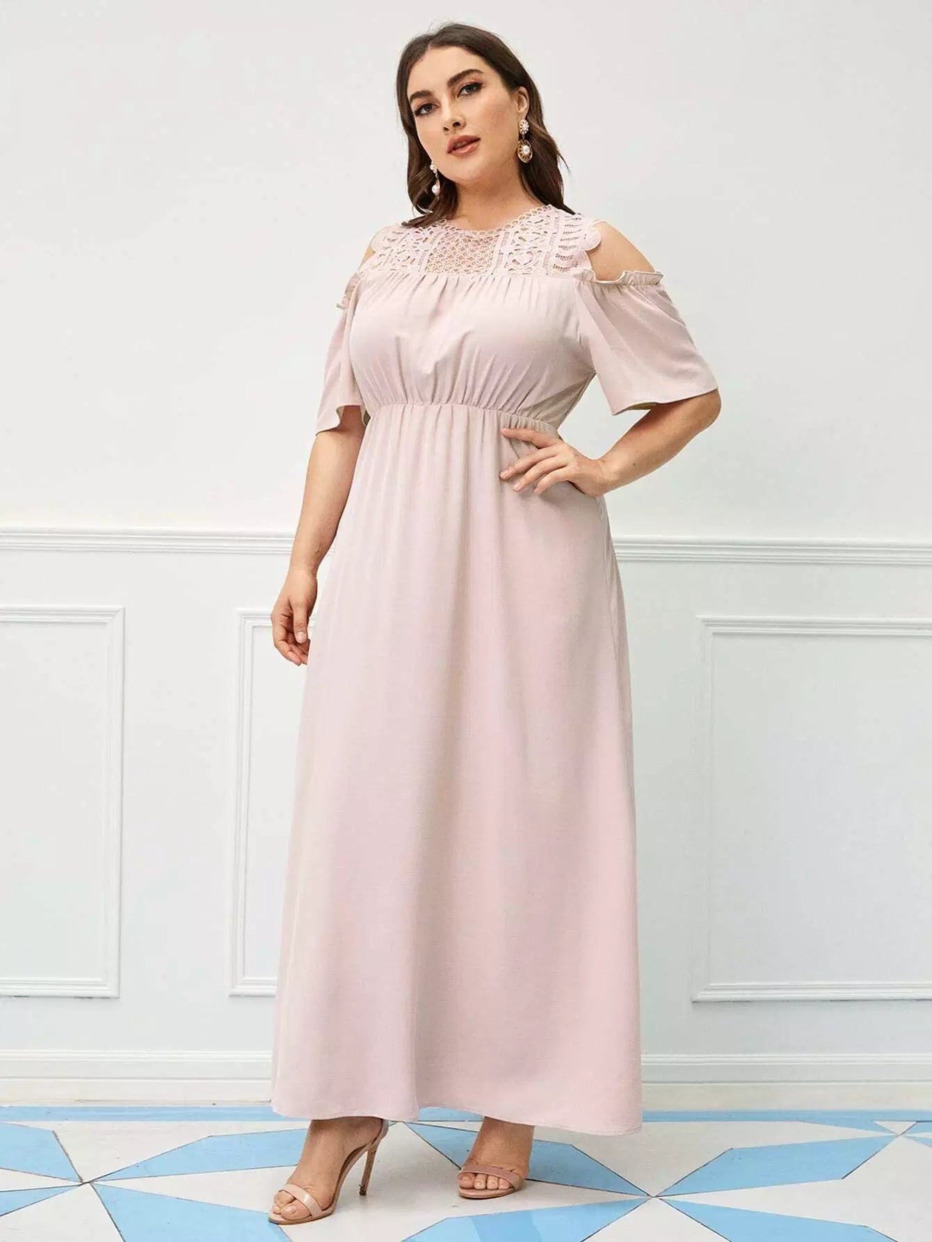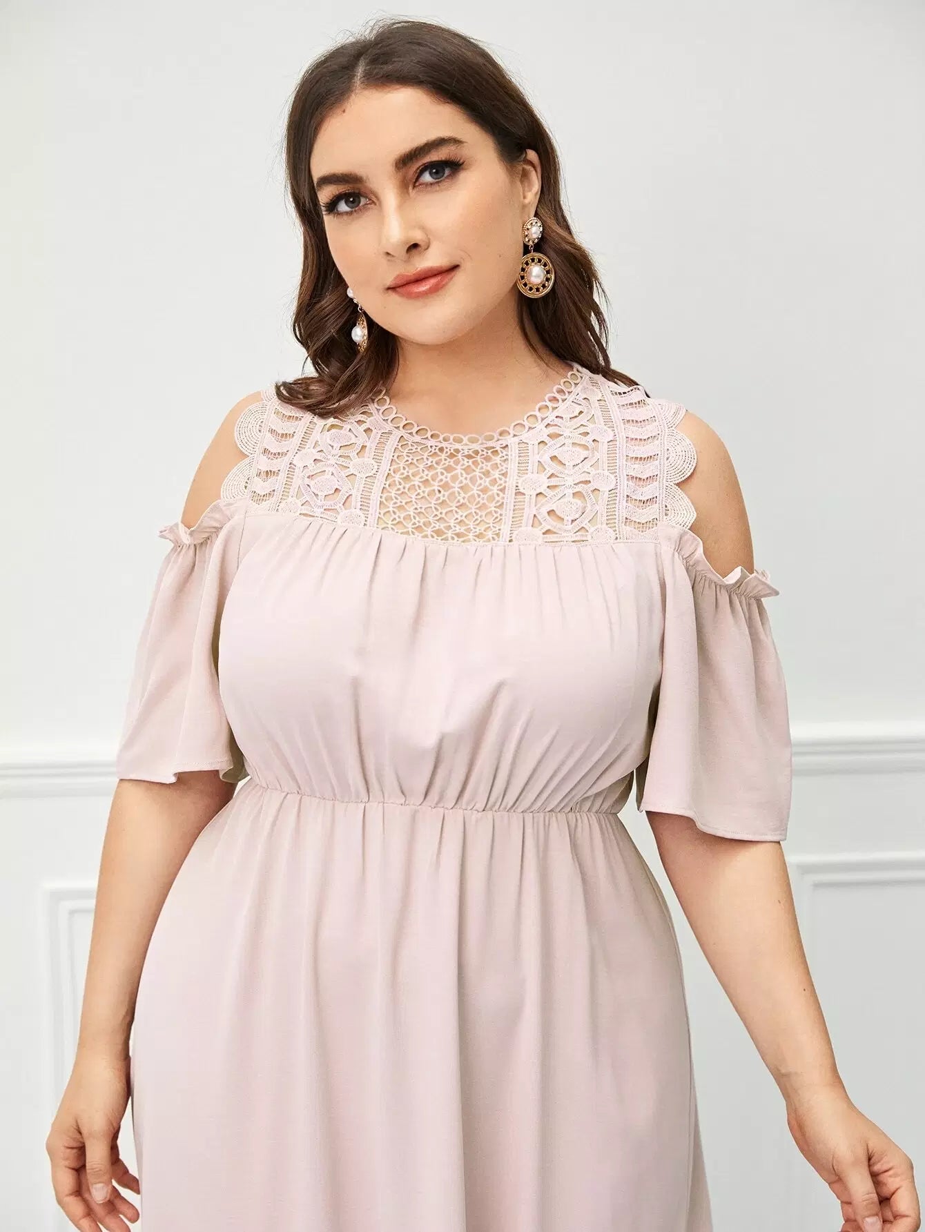 Plus Cold Shoulder Guipure Lace Yoke Dress