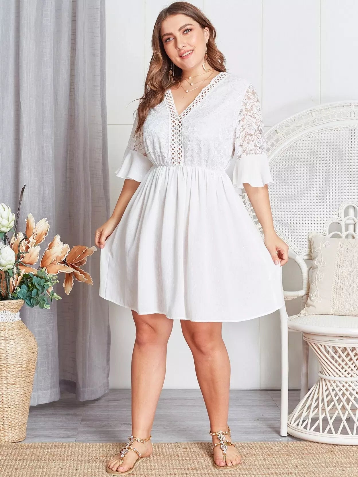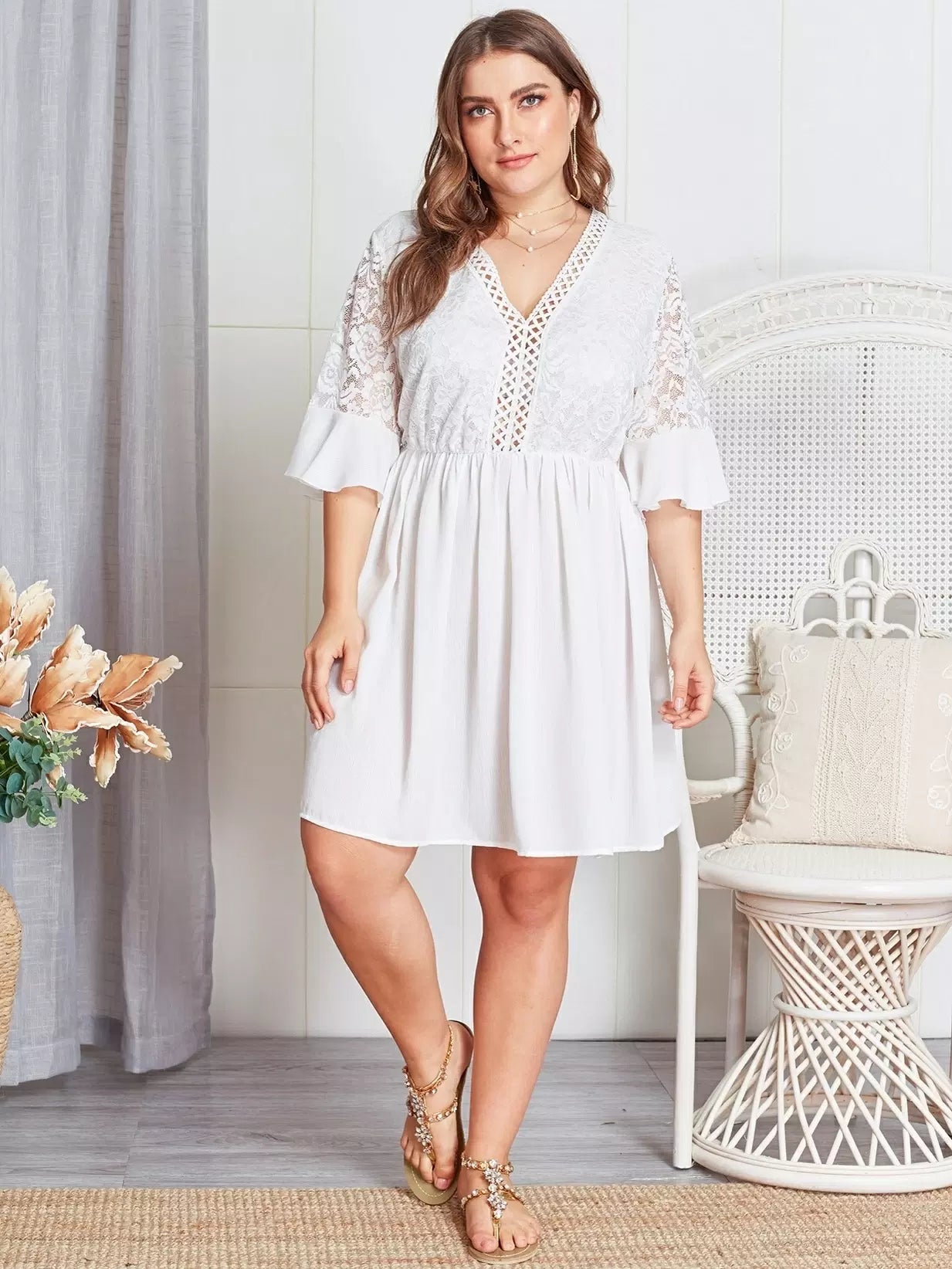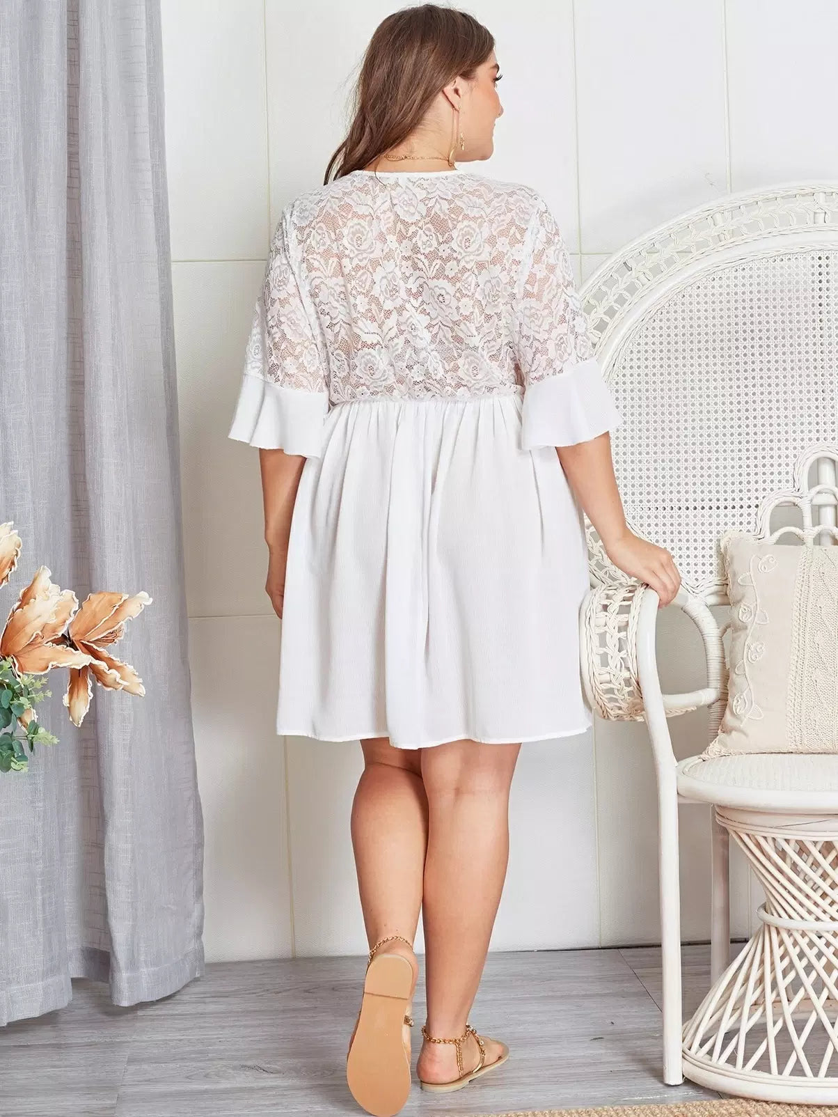 Plus Contrast Lace Sheer Dress