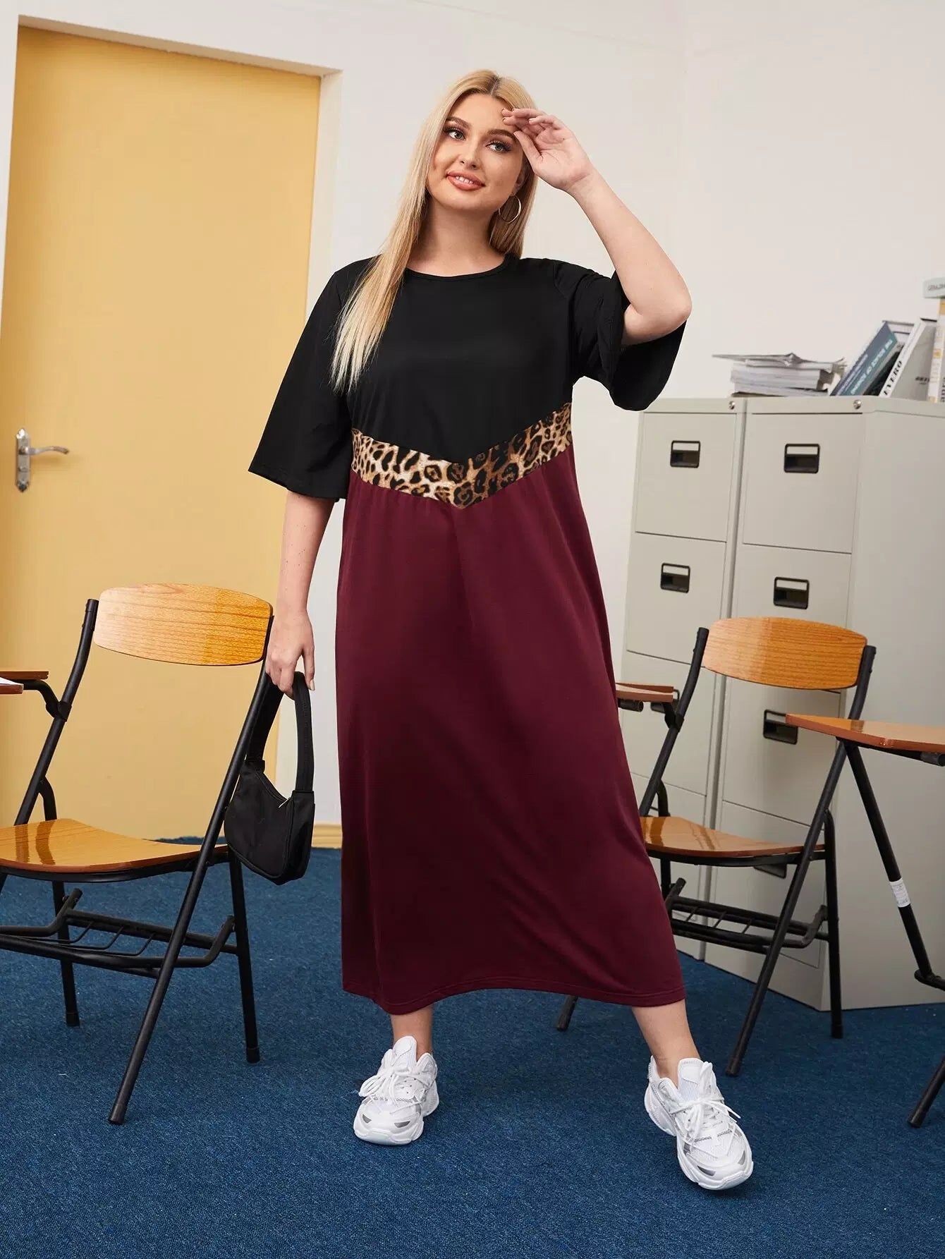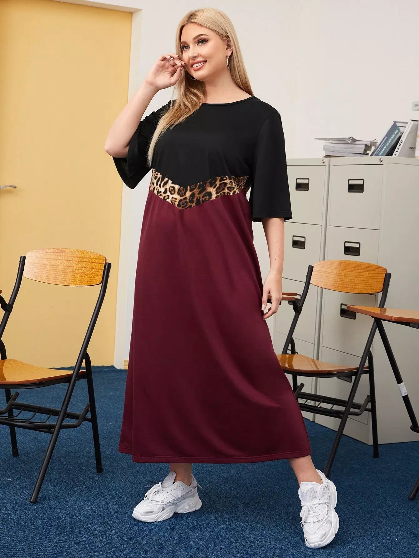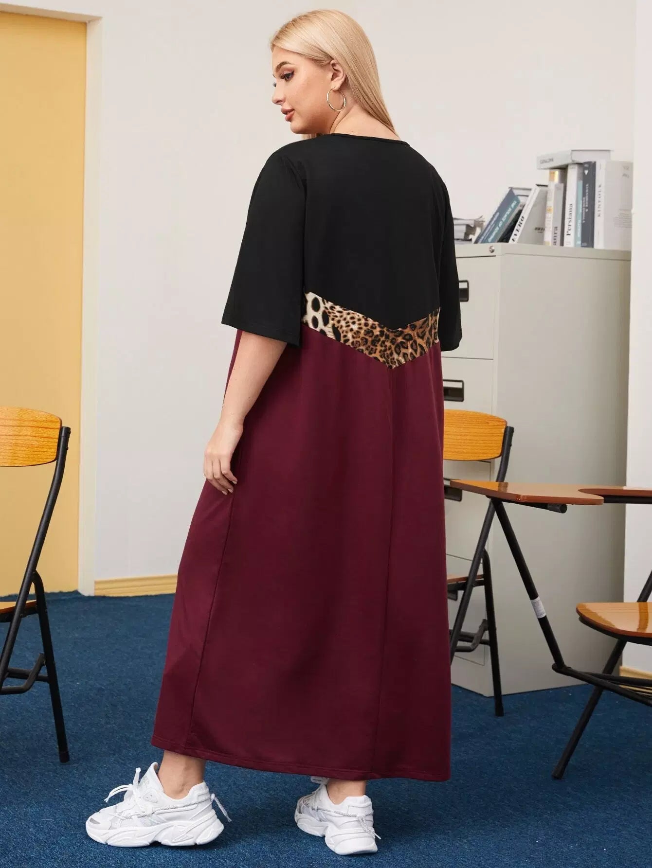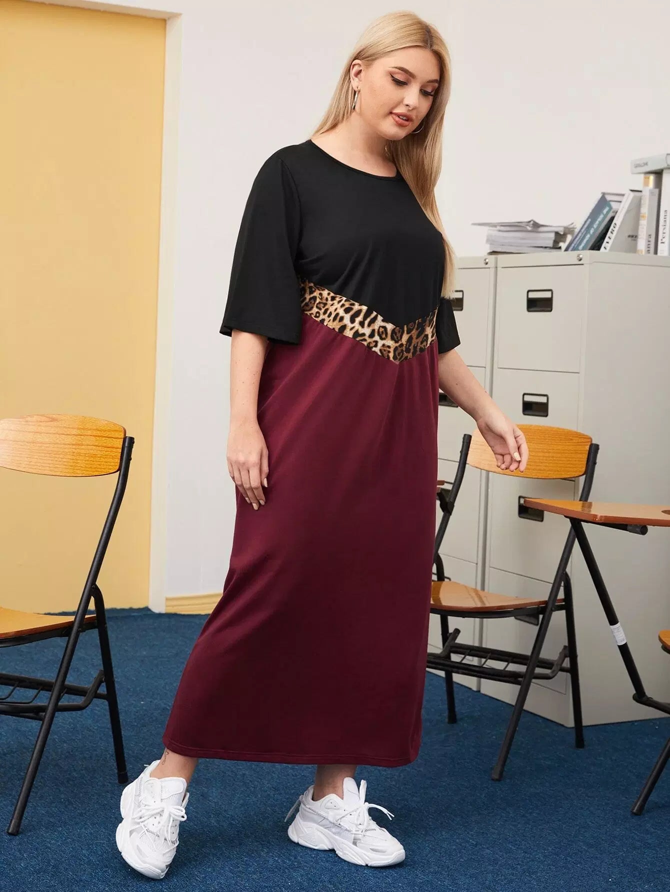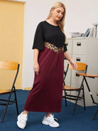 Plus Contrast Leopard Panel Tee Dress