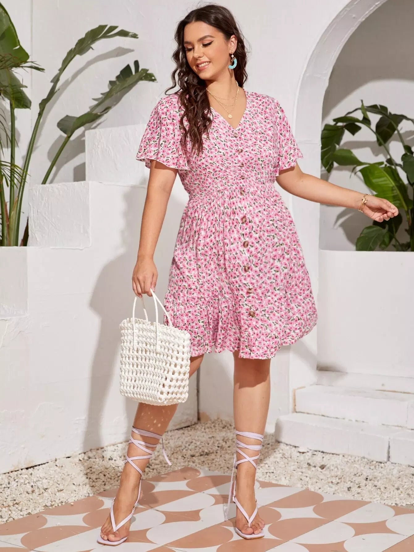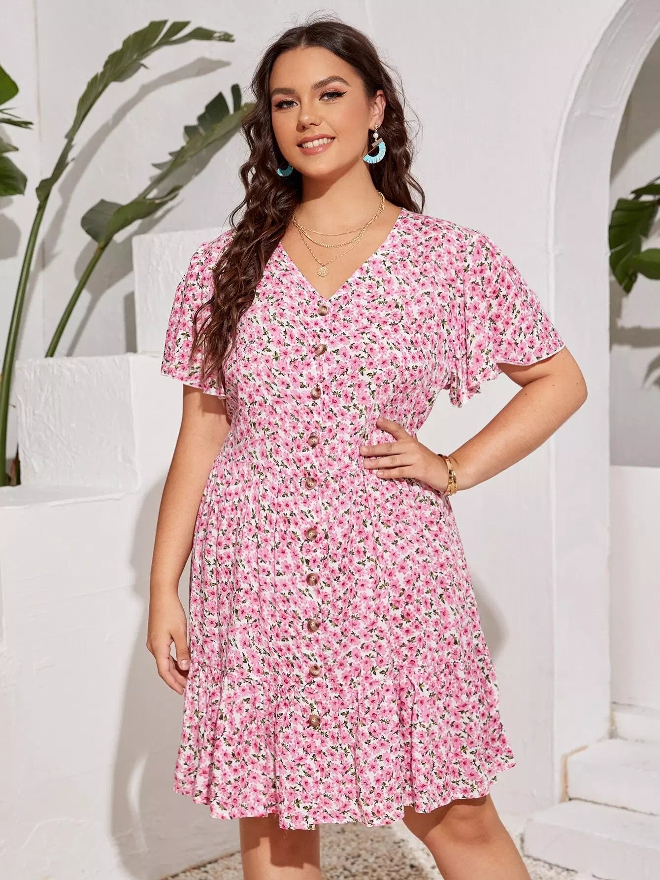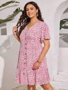 Plus Ditsy Floral Button A-line Dress