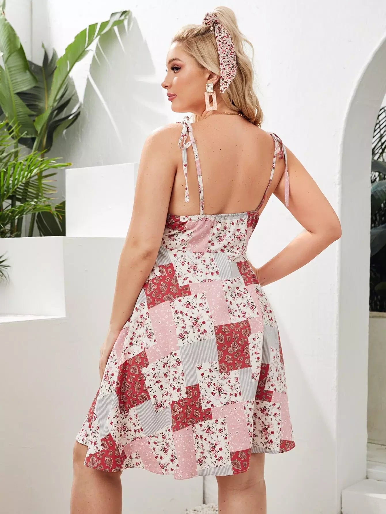 Plus Ditsy Floral & Patchwork Print Cami Dress