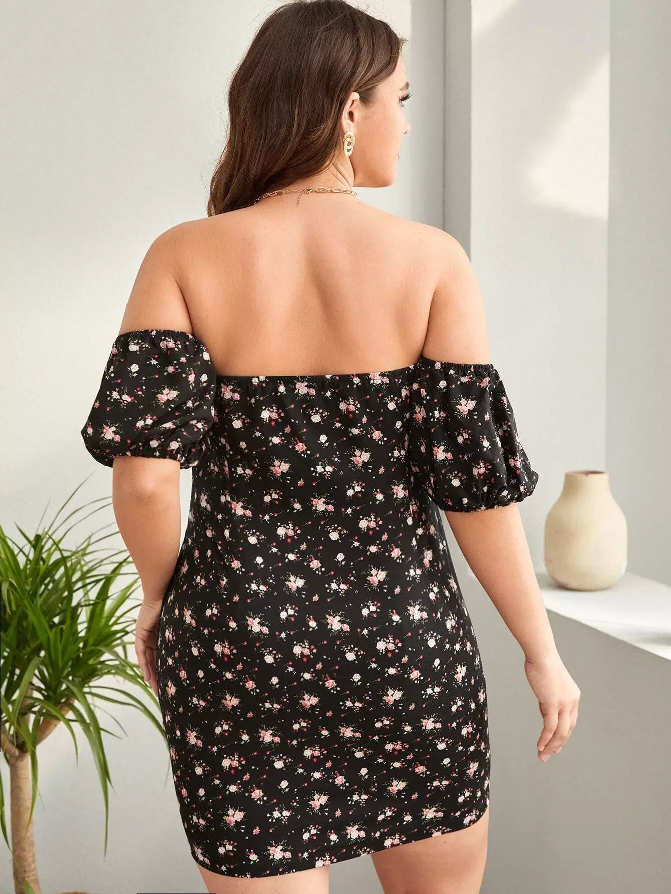 Women - Plus Ditsy Floral Print Off Shoulder Dress