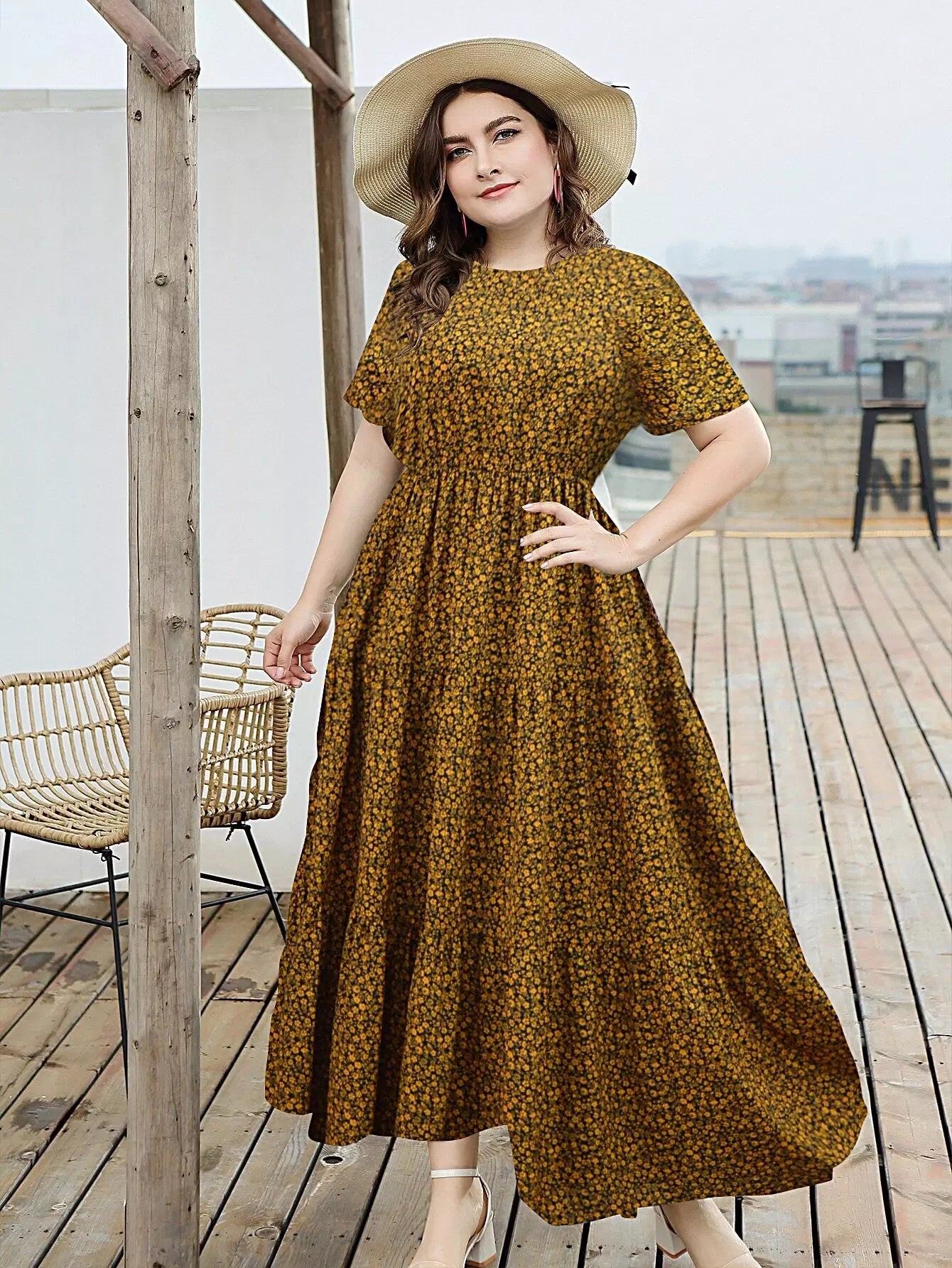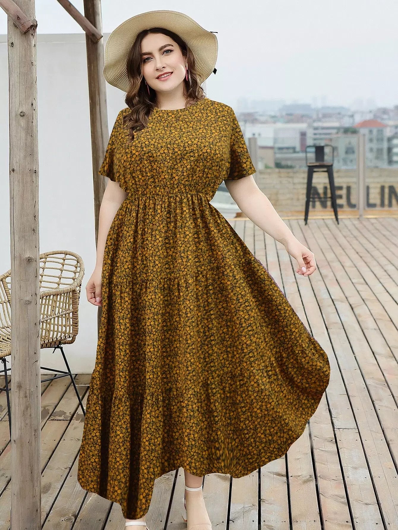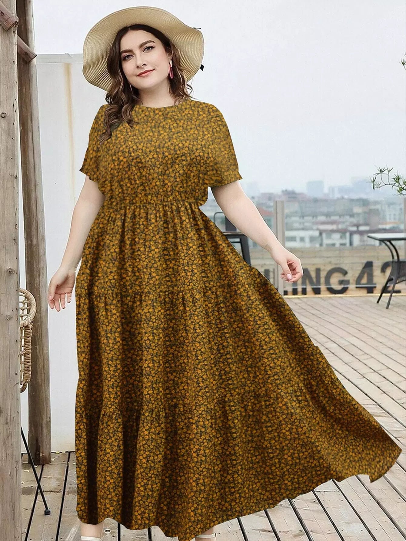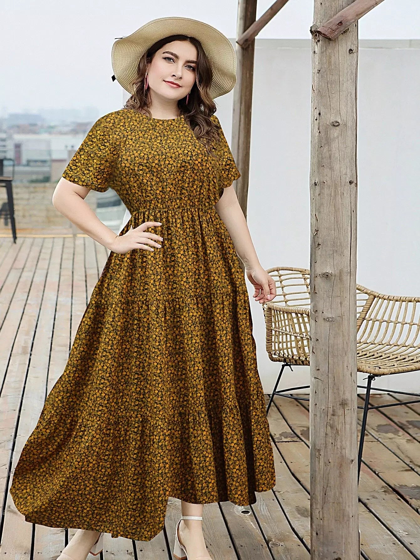 Plus Ditsy Floral Ruffle Hem Swing Maxi Dress