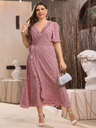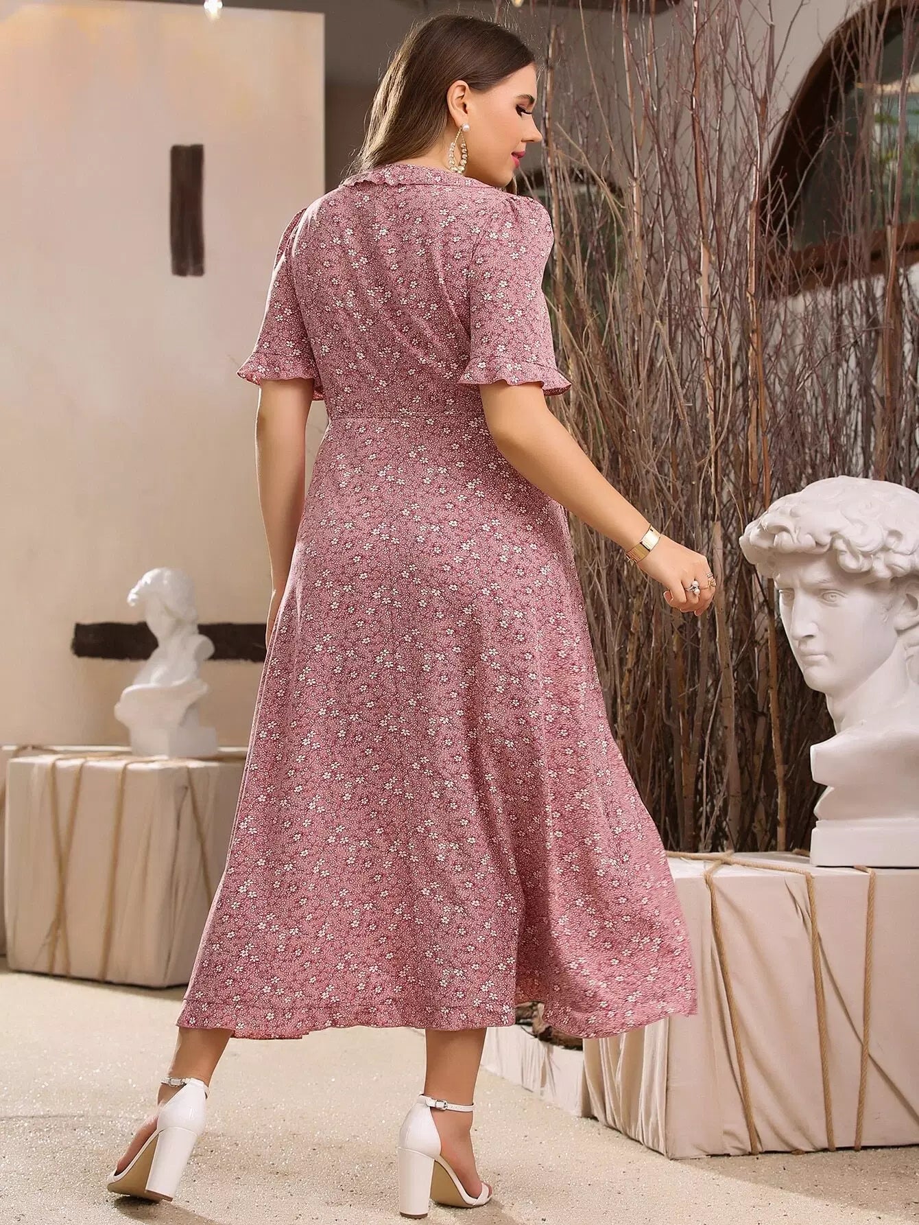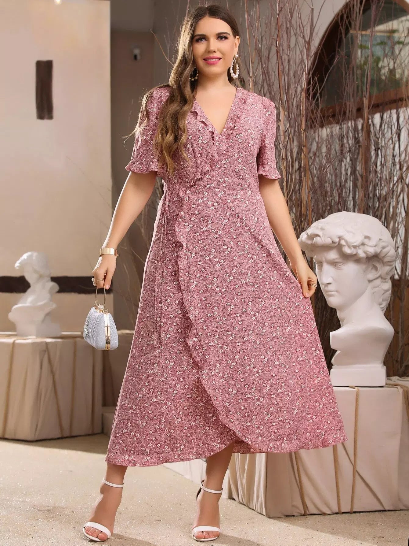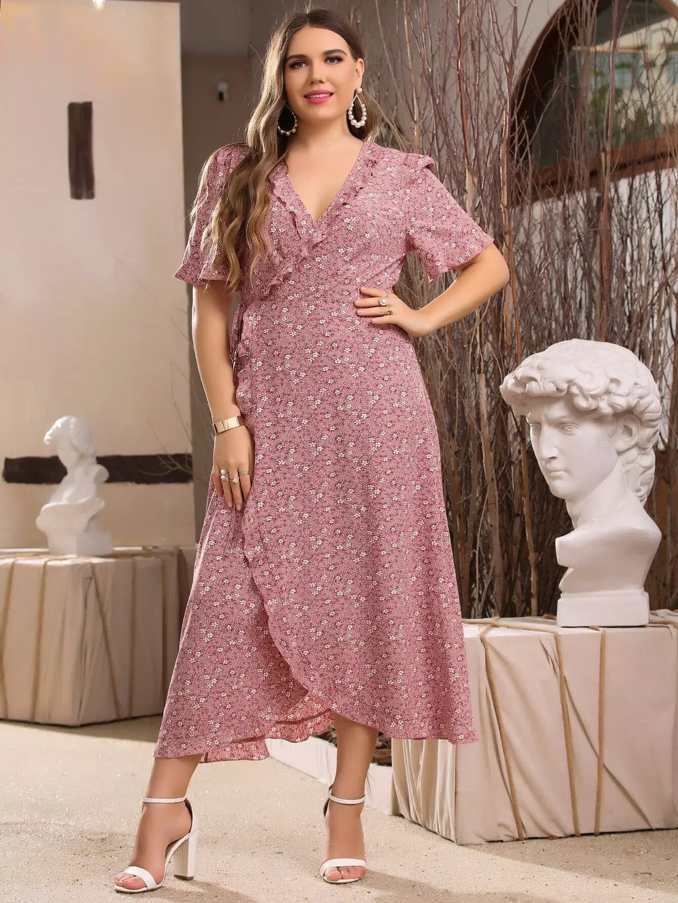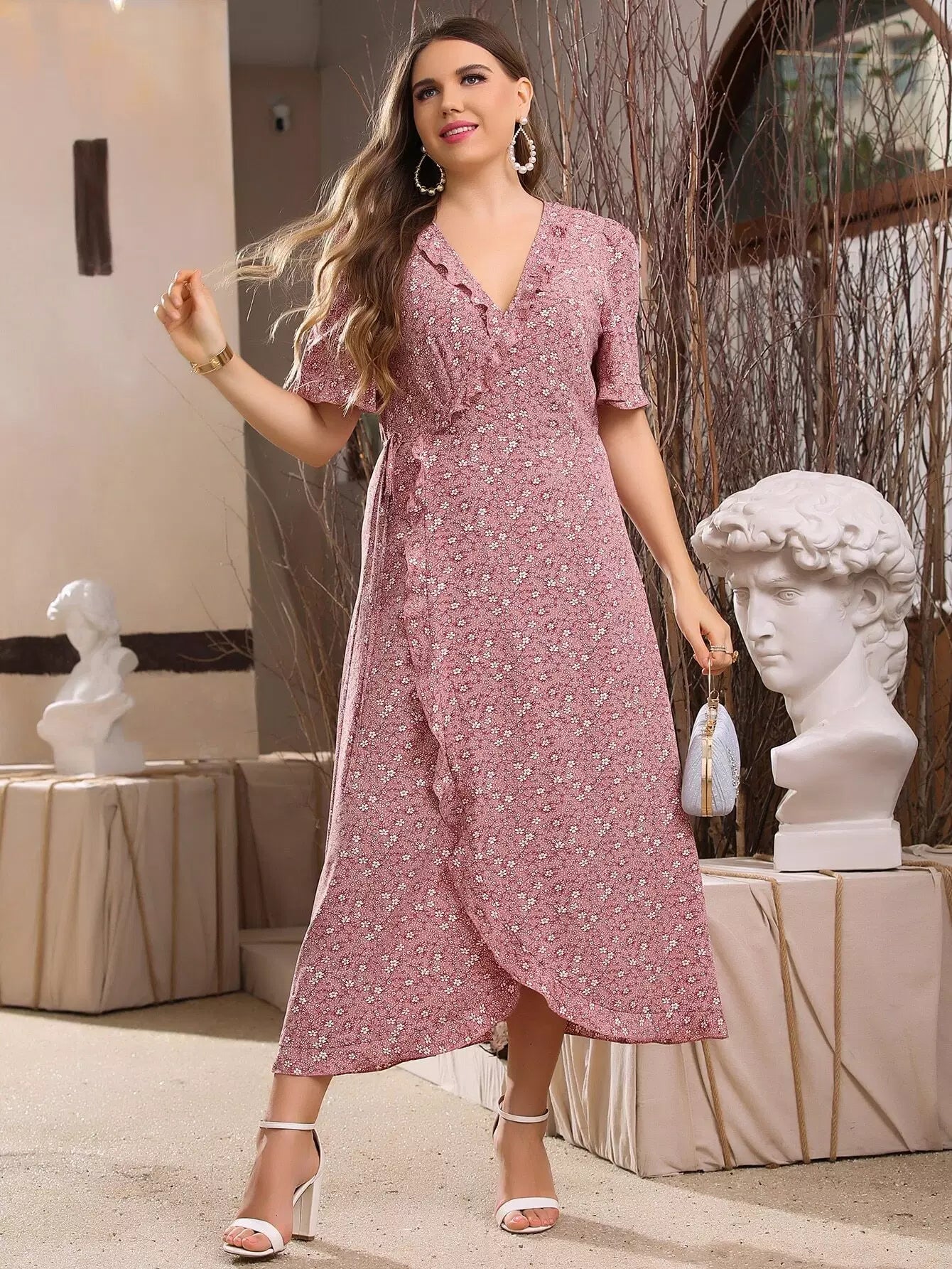 Plus Ditsy Floral Ruffle Trim Wrap Dress